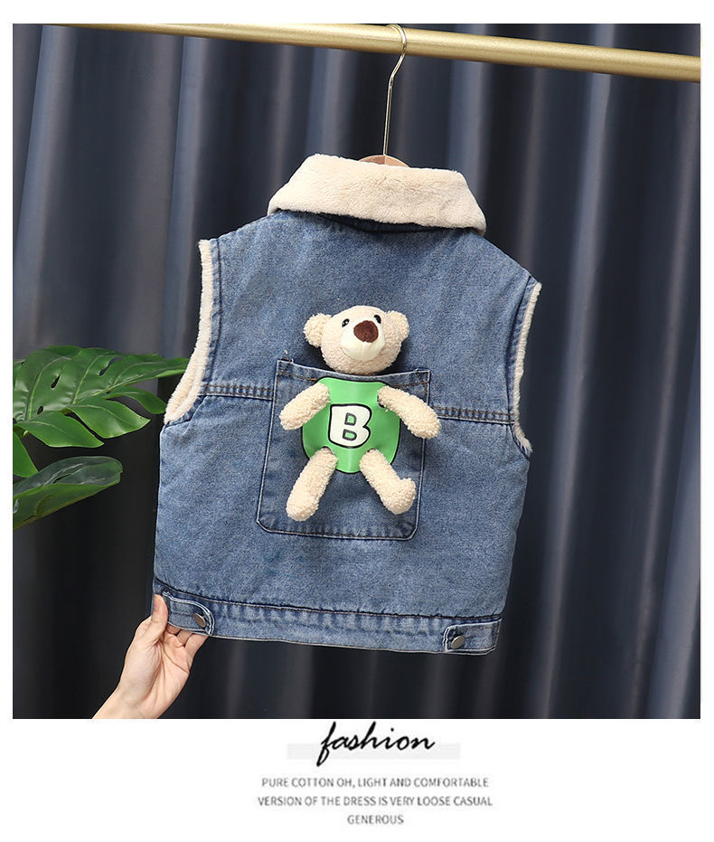 소년을위한 아기 벨벳 두꺼운 데님 조끼 2025 봄 새로운 한국어 버전 만화 유아 및 어린이 세련되고 귀여운