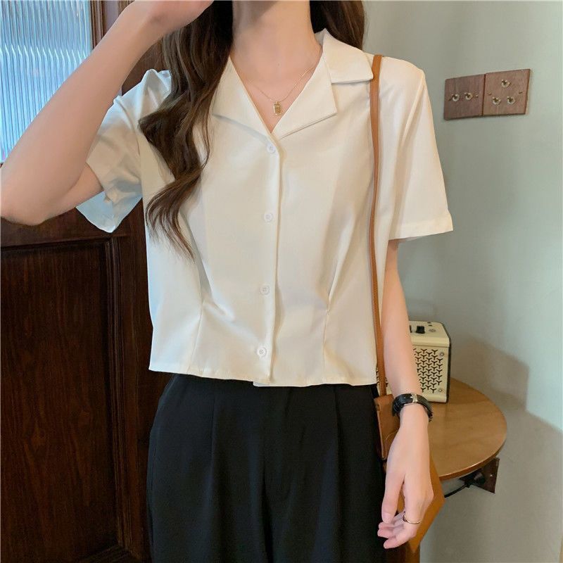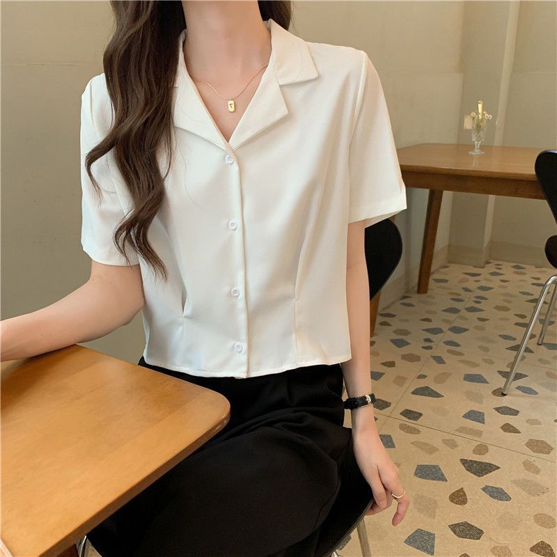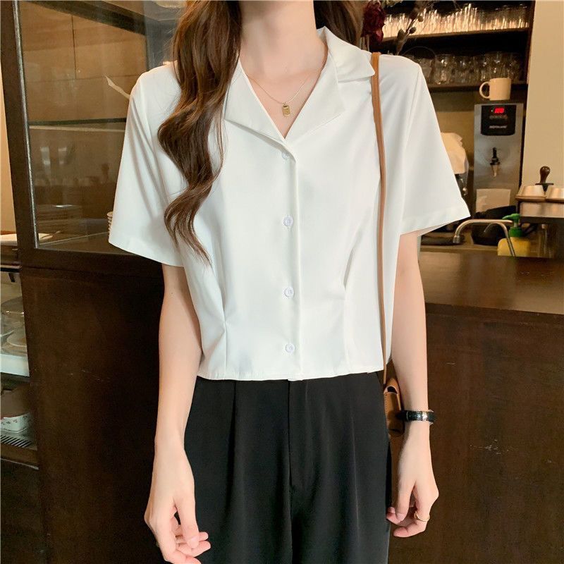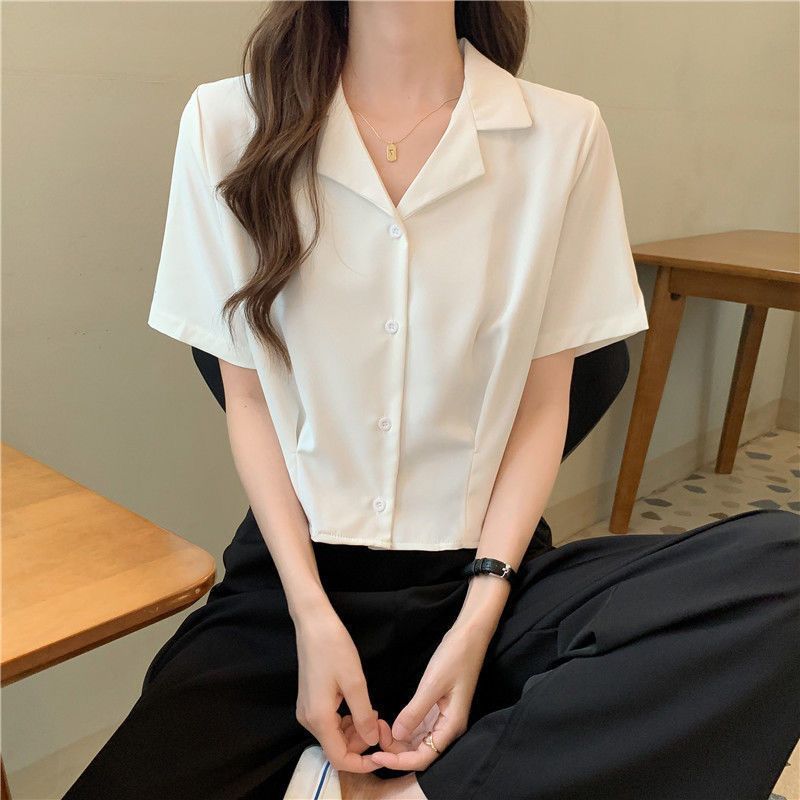화이트 쉬폰 셔츠 여성 반팔 여름 한국 스타일 플러스 사이즈 뚱뚱한 mm 100kg 디자인 전문 면접 셔츠 신규