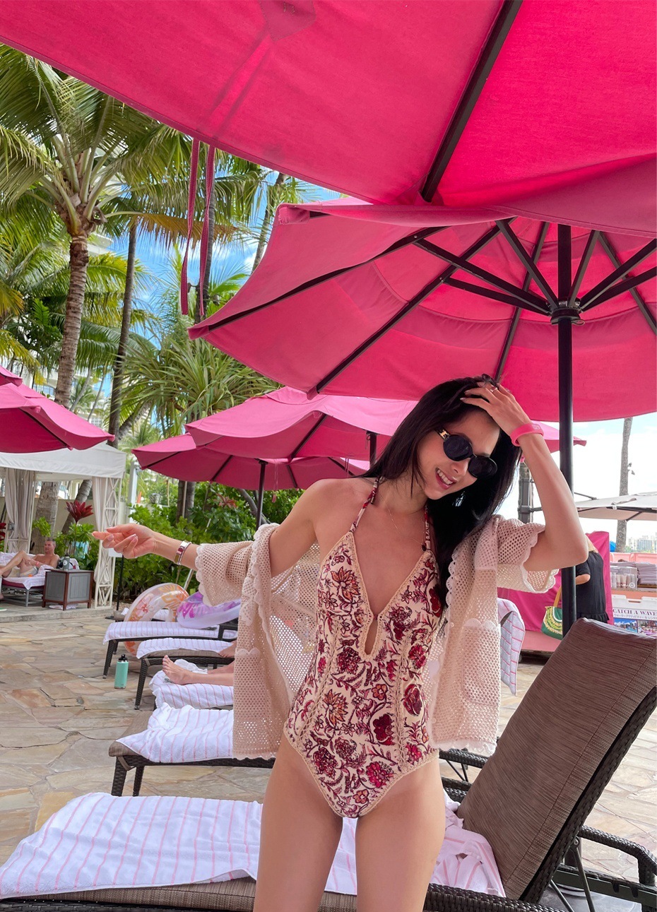 2025년 신상 여성 수영복, 고급스럽고 섹시한 홀터넥 프린트 원피스, 작은 가슴, 슬리밍, 온천욕, 아름다운 해변 휴가스토어 가기
