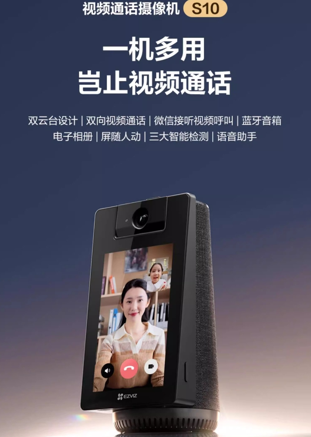 EZVIZ S10 PTZ 영상통화 카메라/블루투스 스피커/전자사진첩/음성지원