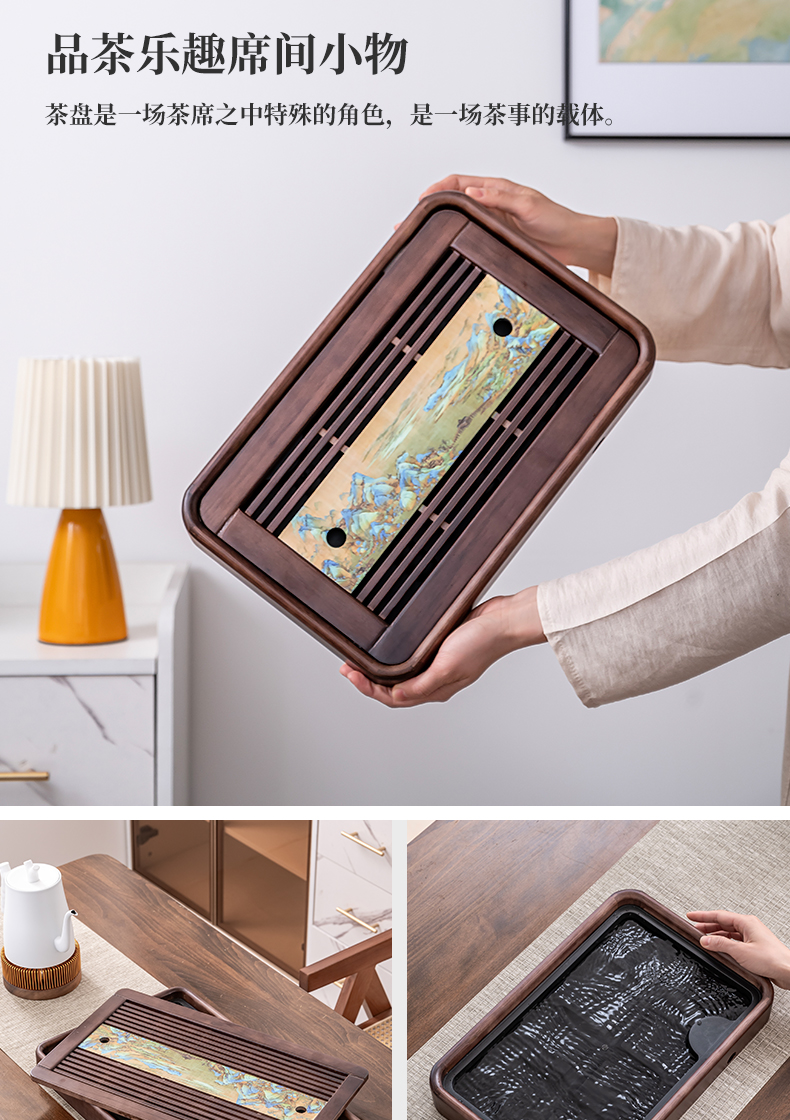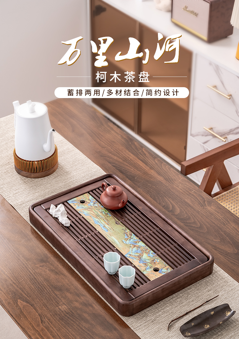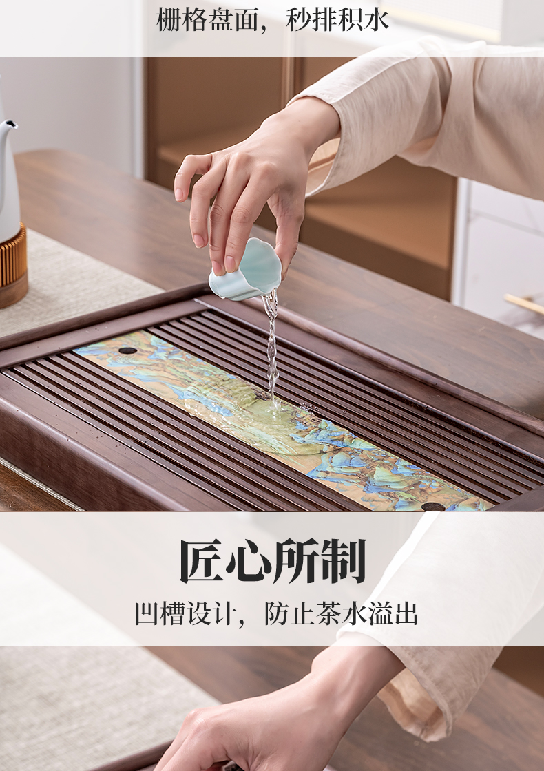 단단한 나무 차 트레이 가정용 2025 새로운 쿵푸 차 세트 트레이 배수 및 배수 건조 버블 테이블 작은 차 바다스토어 가기