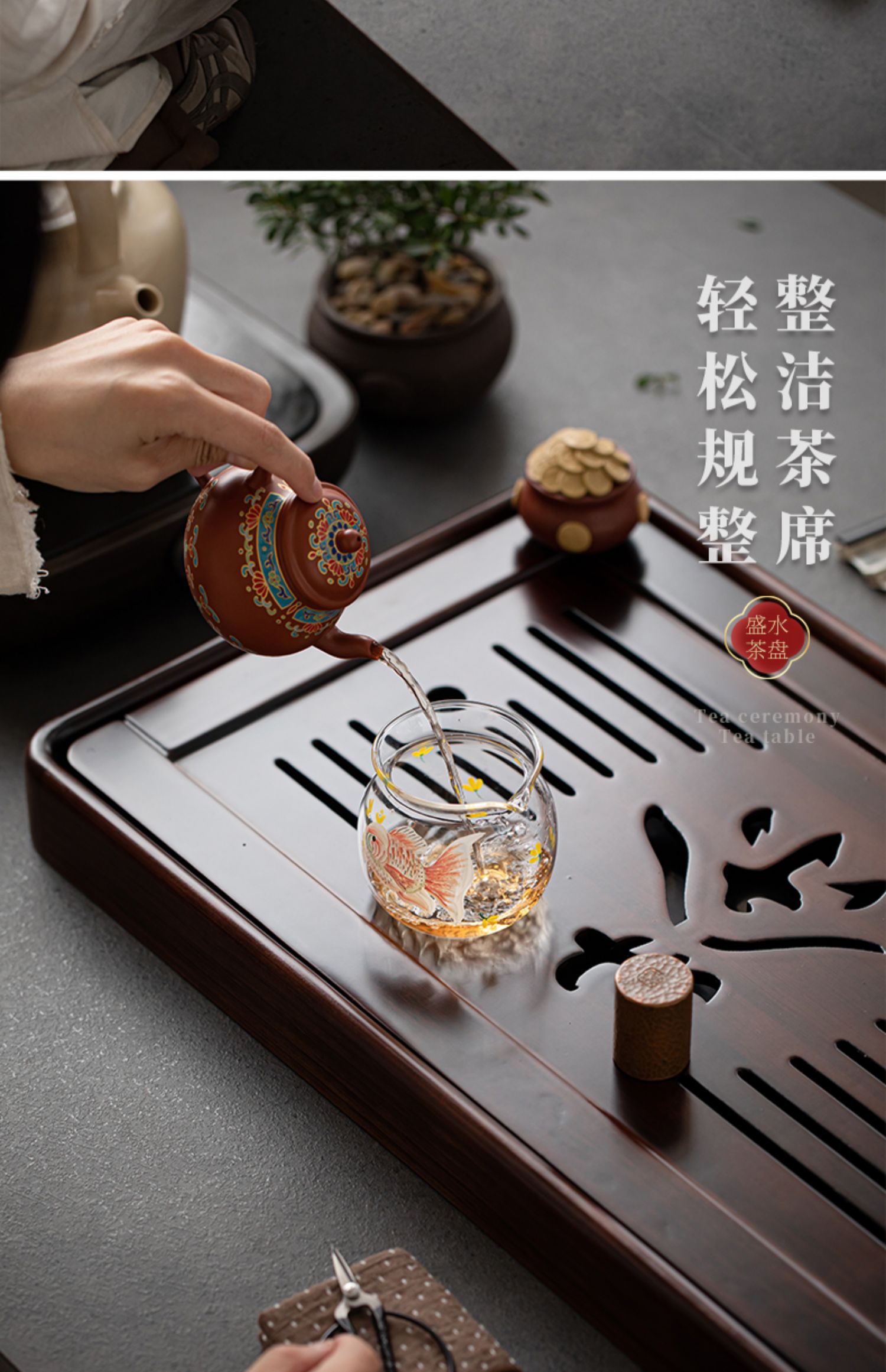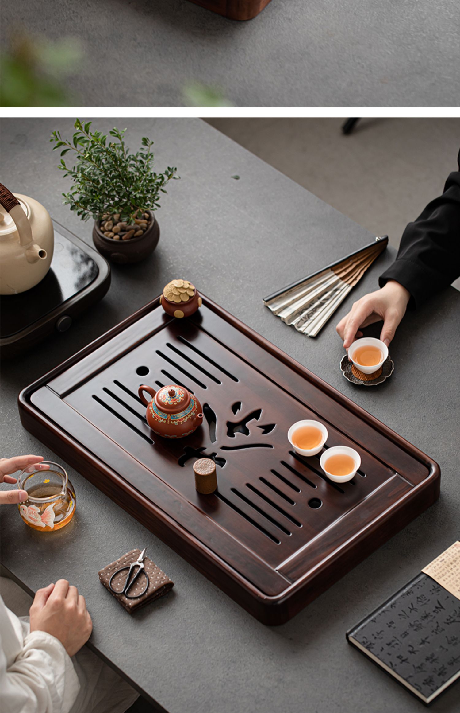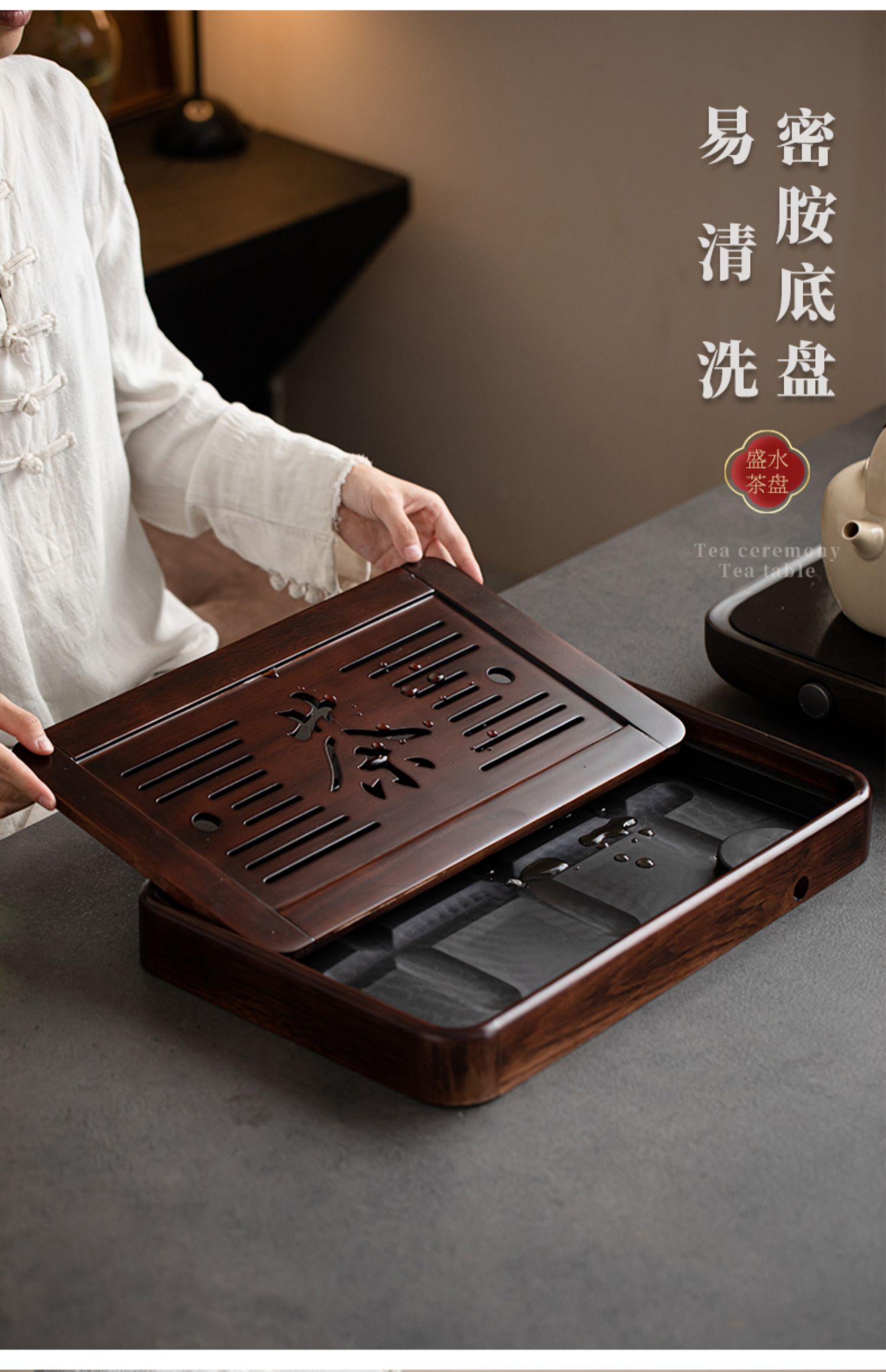 단단한 나무 차 트레이 가정용 2025 새로운 쿵푸 차 세트 트레이 배수 및 배수 건조 버블 테이블 작은 차 바다스토어 가기