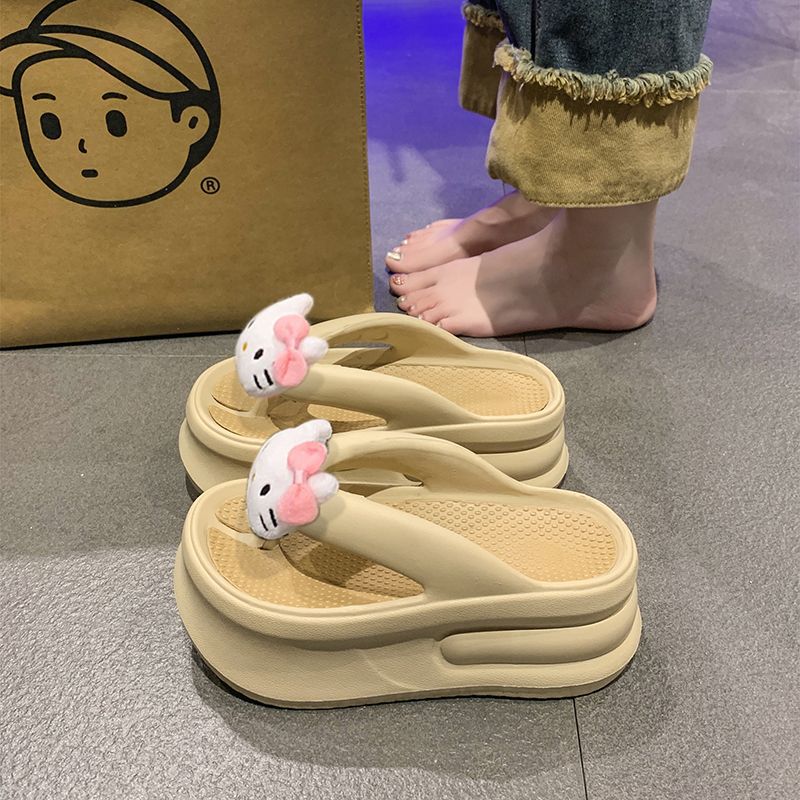 2025 여름 아우터웨어 여성을 위한 새로운 두꺼운 밑창 EVA 플립플롭, 소녀들을 위한 해변 휴가 샌들