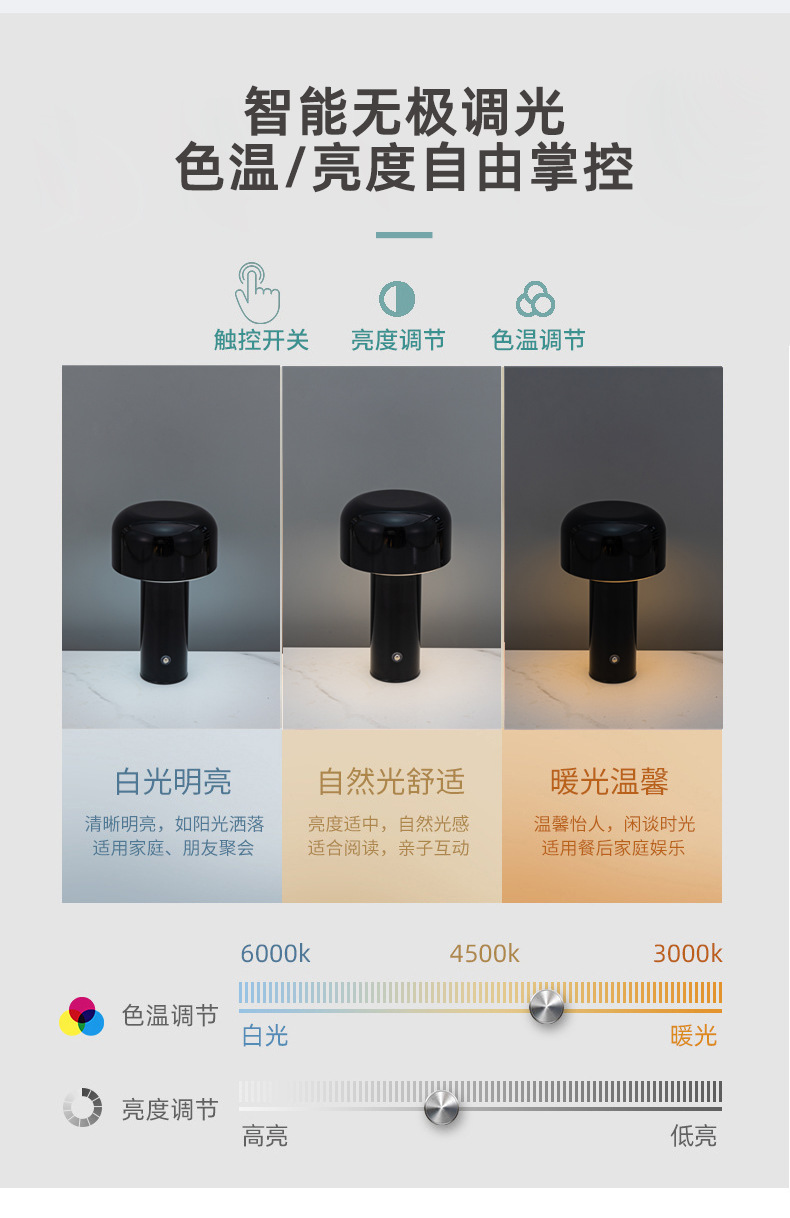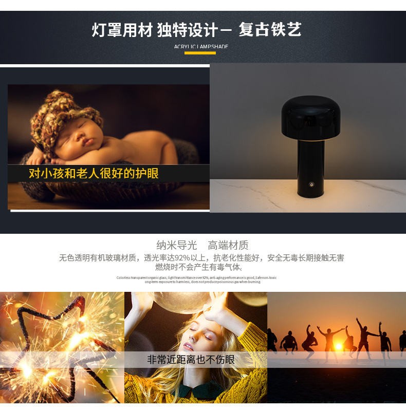 철제 버섯 LED 침대 옆 센서 램프 장식품 선물 눈 보호 테이블 램프 LED 램프 야간 3색 변광 가정용스토어 가기