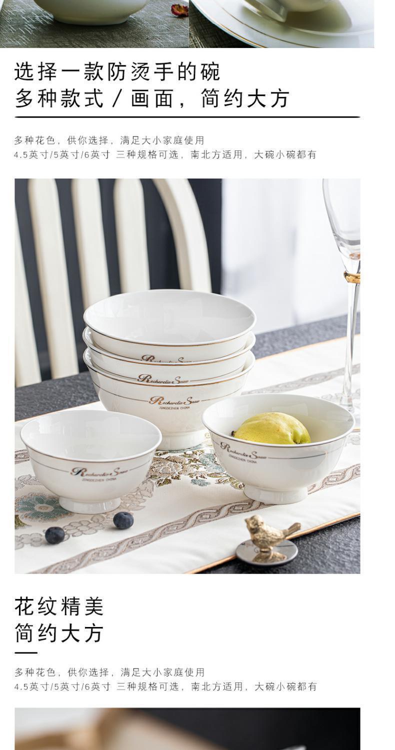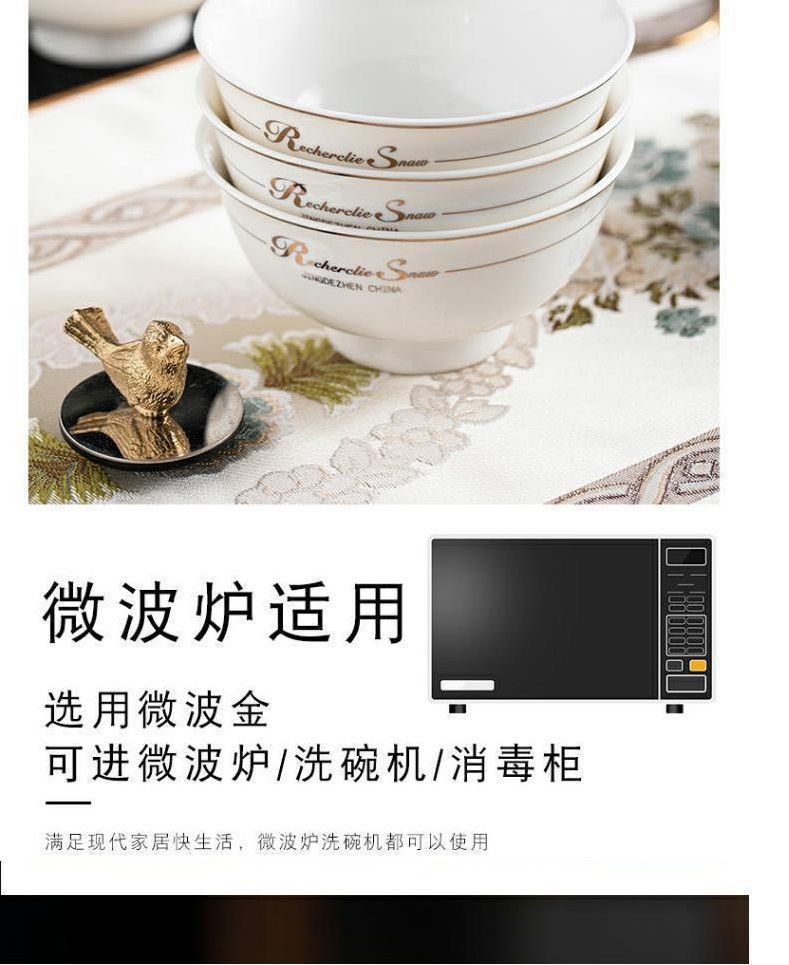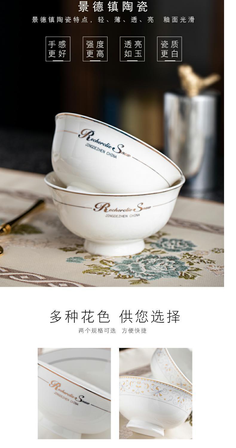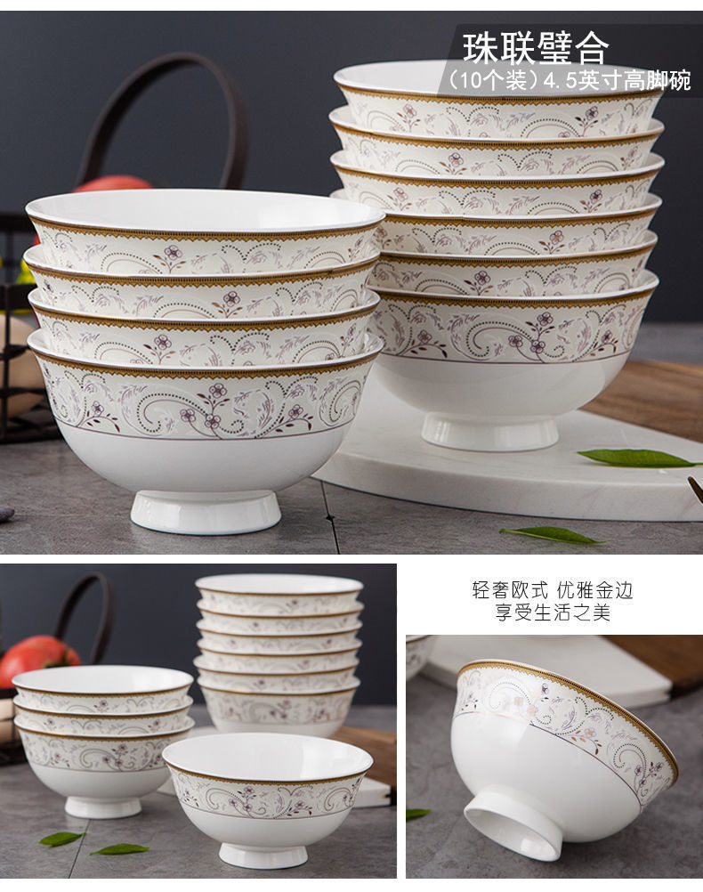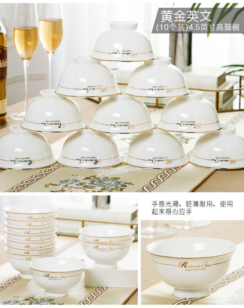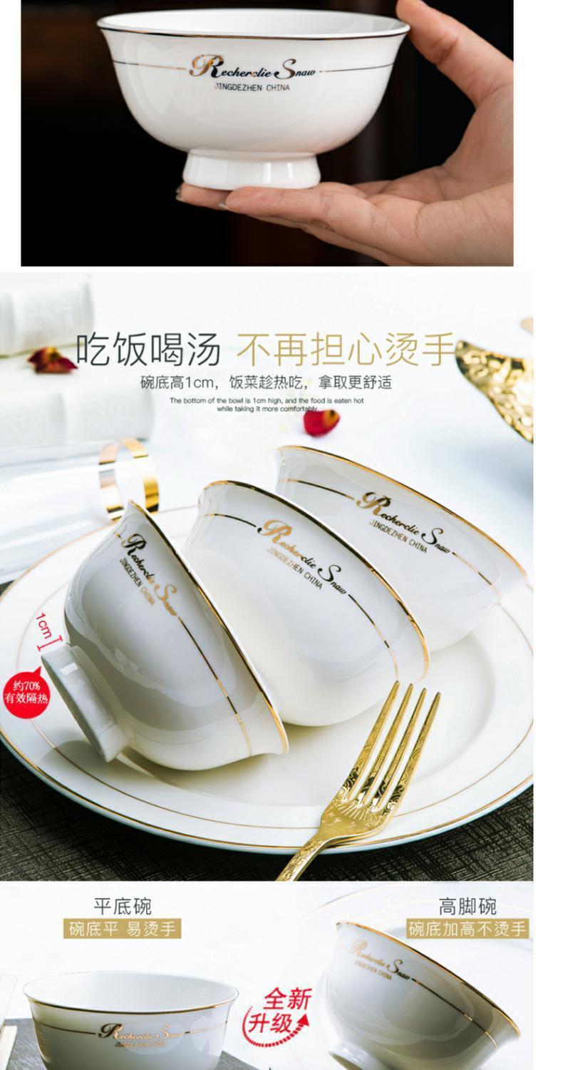 [상점] Jingdezhen 세라믹 키 큰 그릇 식기 및 접시 세트 본차이나 그릇 가정용 밥 그릇 도매 조합