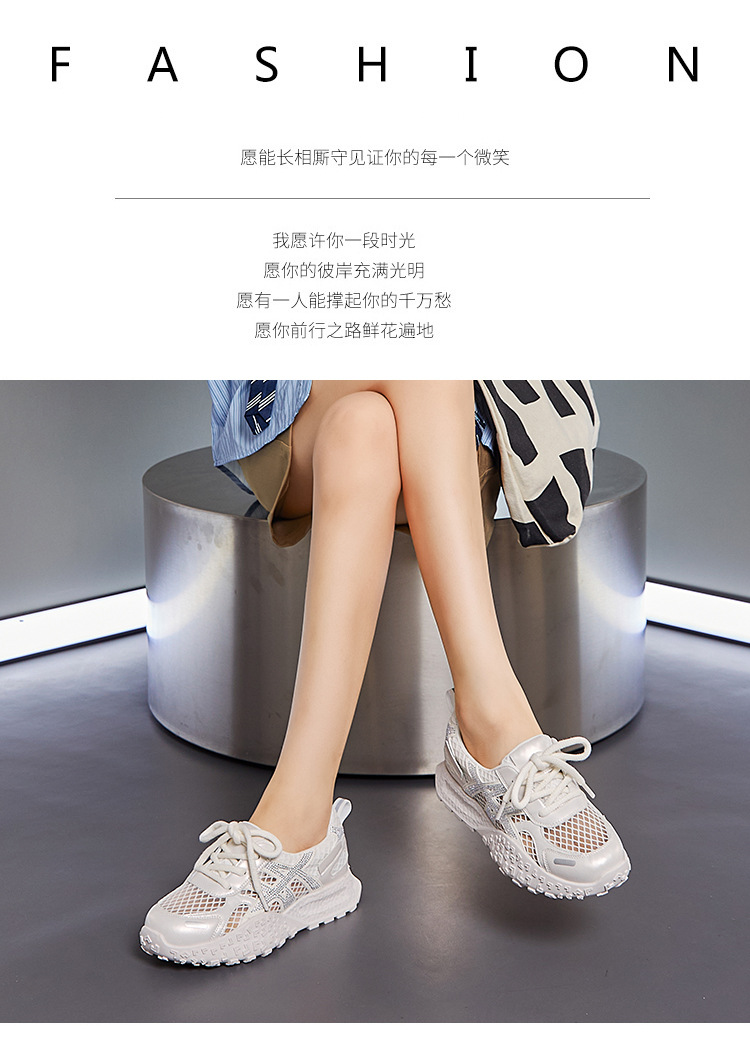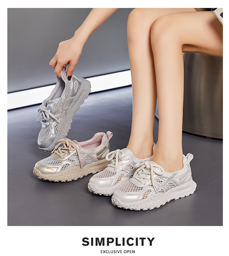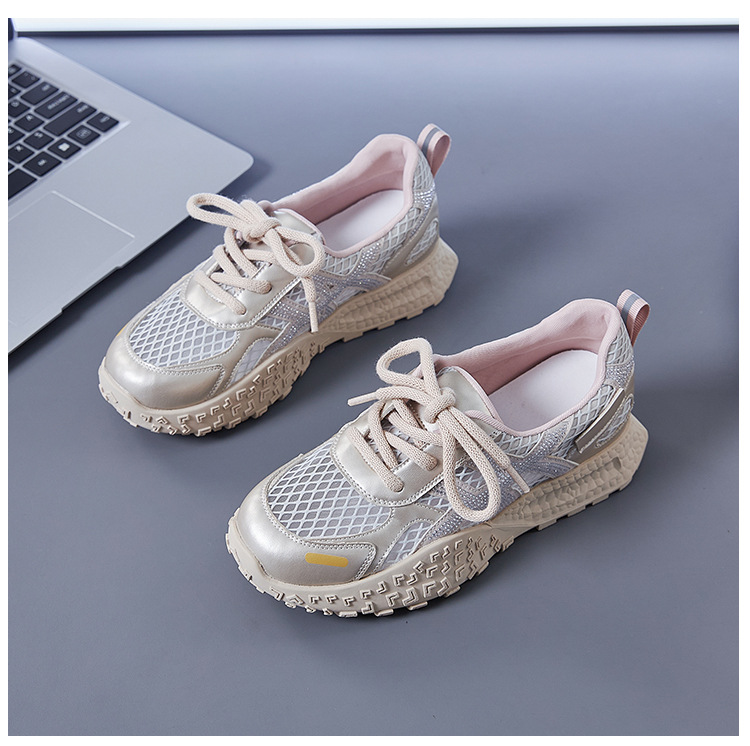 여름 여성을 위한 맞춤형 메쉬 통기성 아빠 신발, 새로운 두꺼운 밑창, 높이 증가 포레스트 검프 신발, 라인스톤 여성 신발, 여성용 다용도 신발스토어 가기