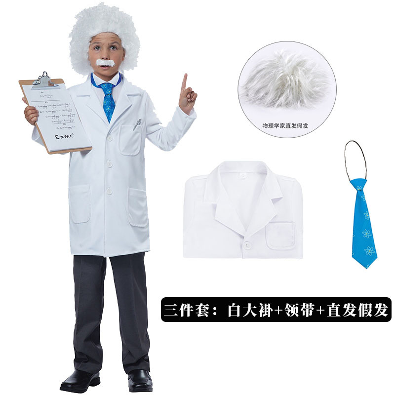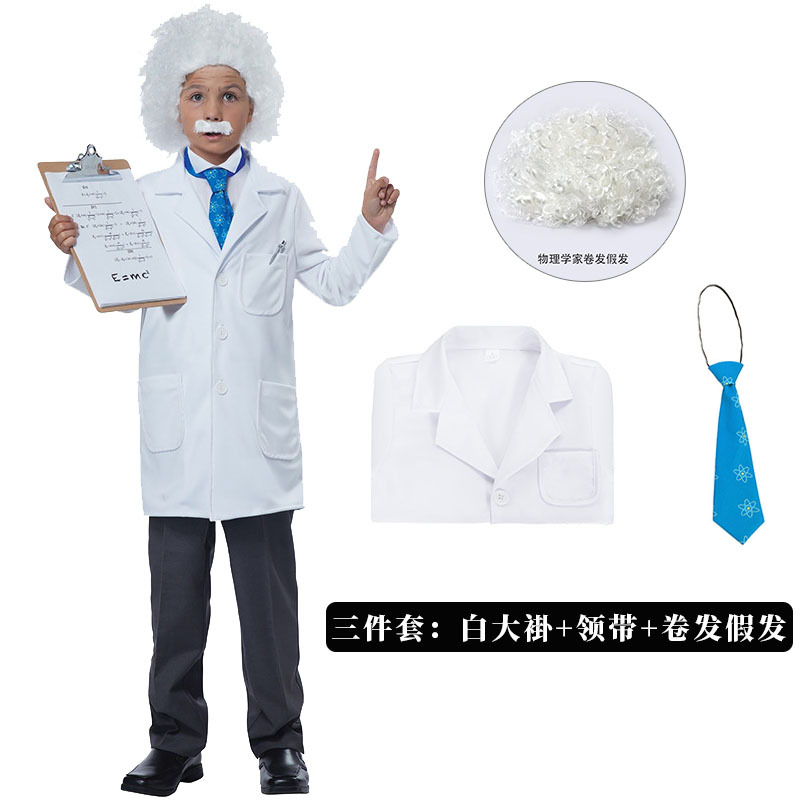 할로윈 코스프레 의상 과학자 아인슈타인 물리학자 흰 가운 어린이 무대 공연 의상