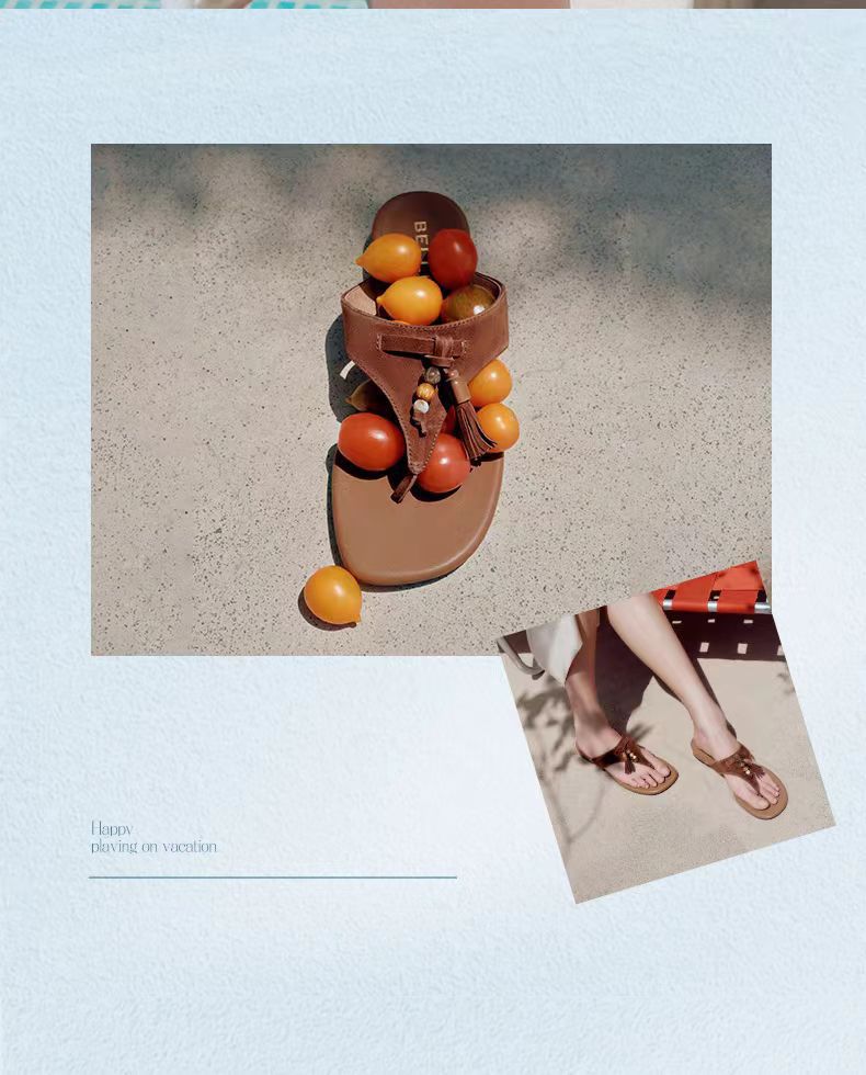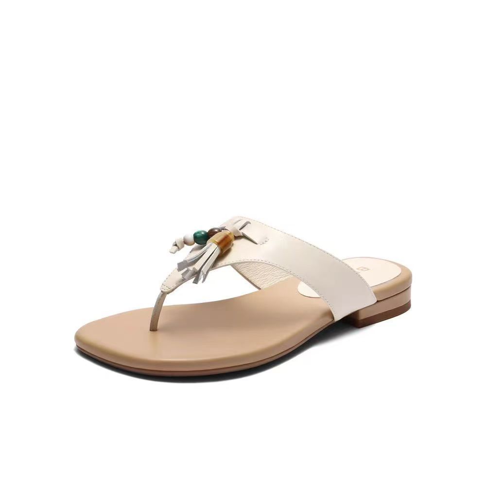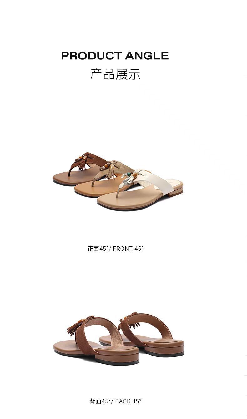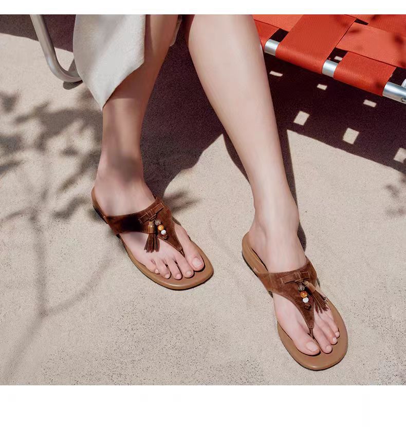 재고 있음 ~ 양가죽 버전 레트로 태슬 펜던트 사슴가죽 플립업 오픈토 헤링본 샌들 여성 캐주얼 플랫스토어 가기