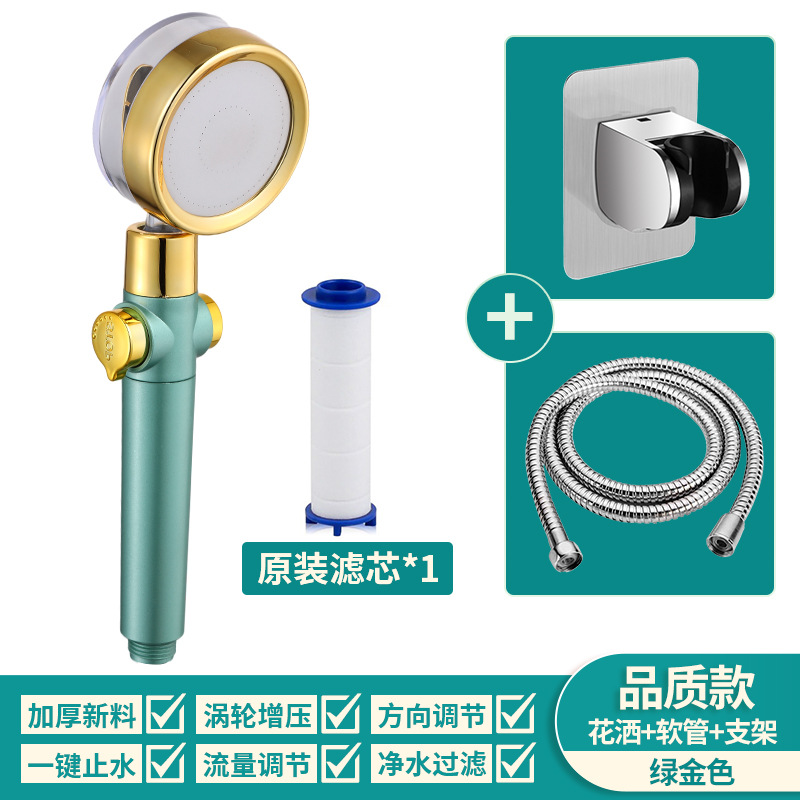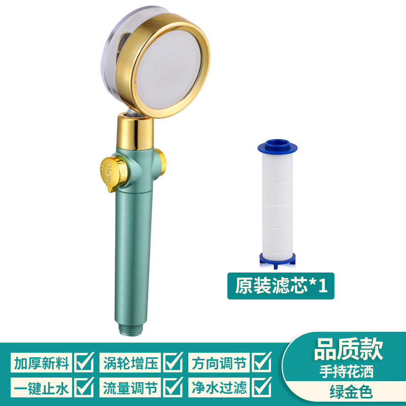 • 두꺼운 신소재 터빈 소형 허리 샤워 헤드 - 그린 및 골드 3종 세트(무료 필터 요소*1)