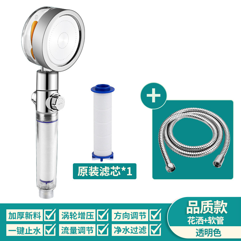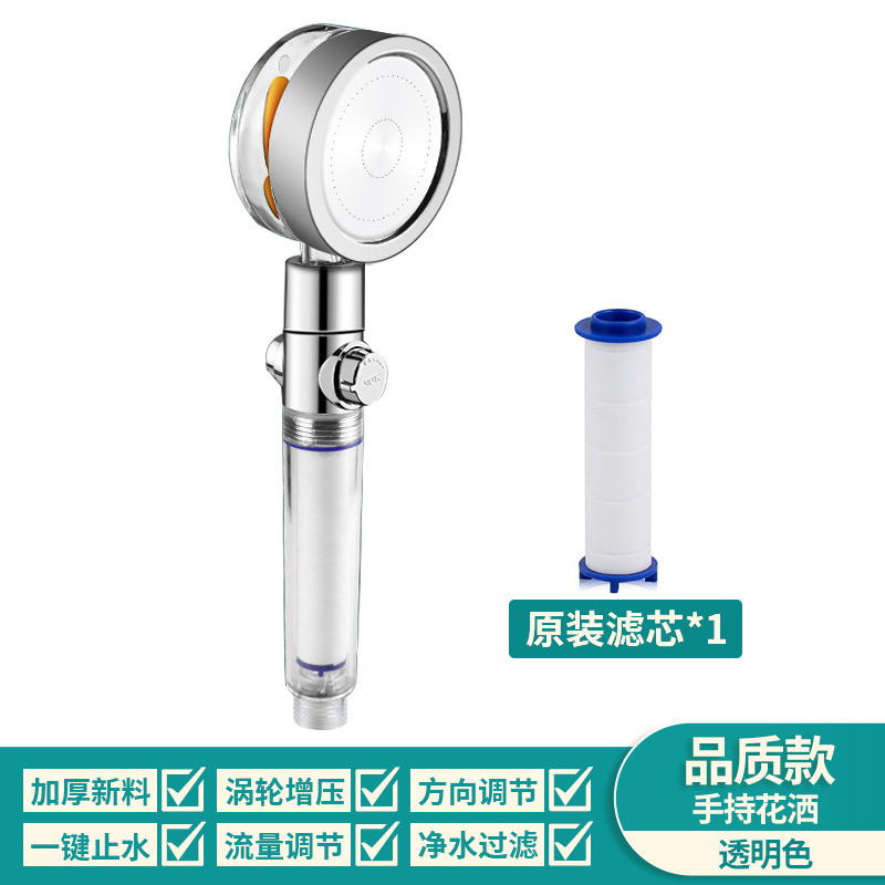 • 두꺼운 신소재 터빈 소형 허리 샤워 헤드 - 투명 색상(무료 필터 요소*1)