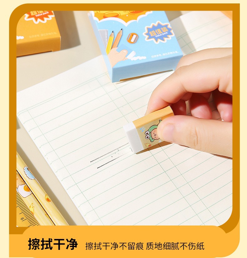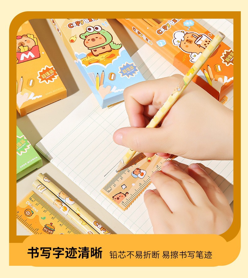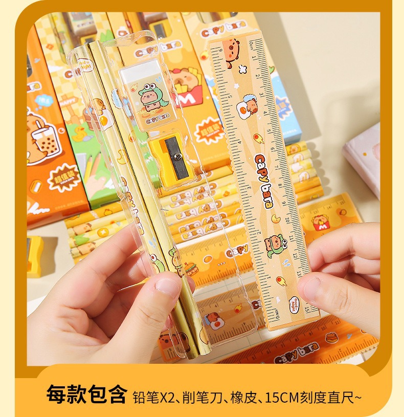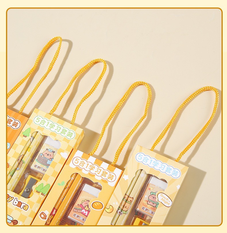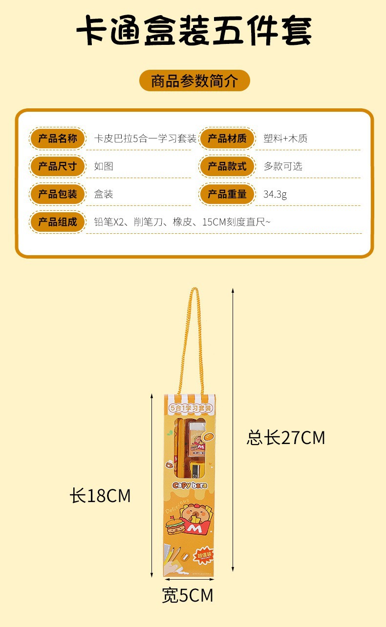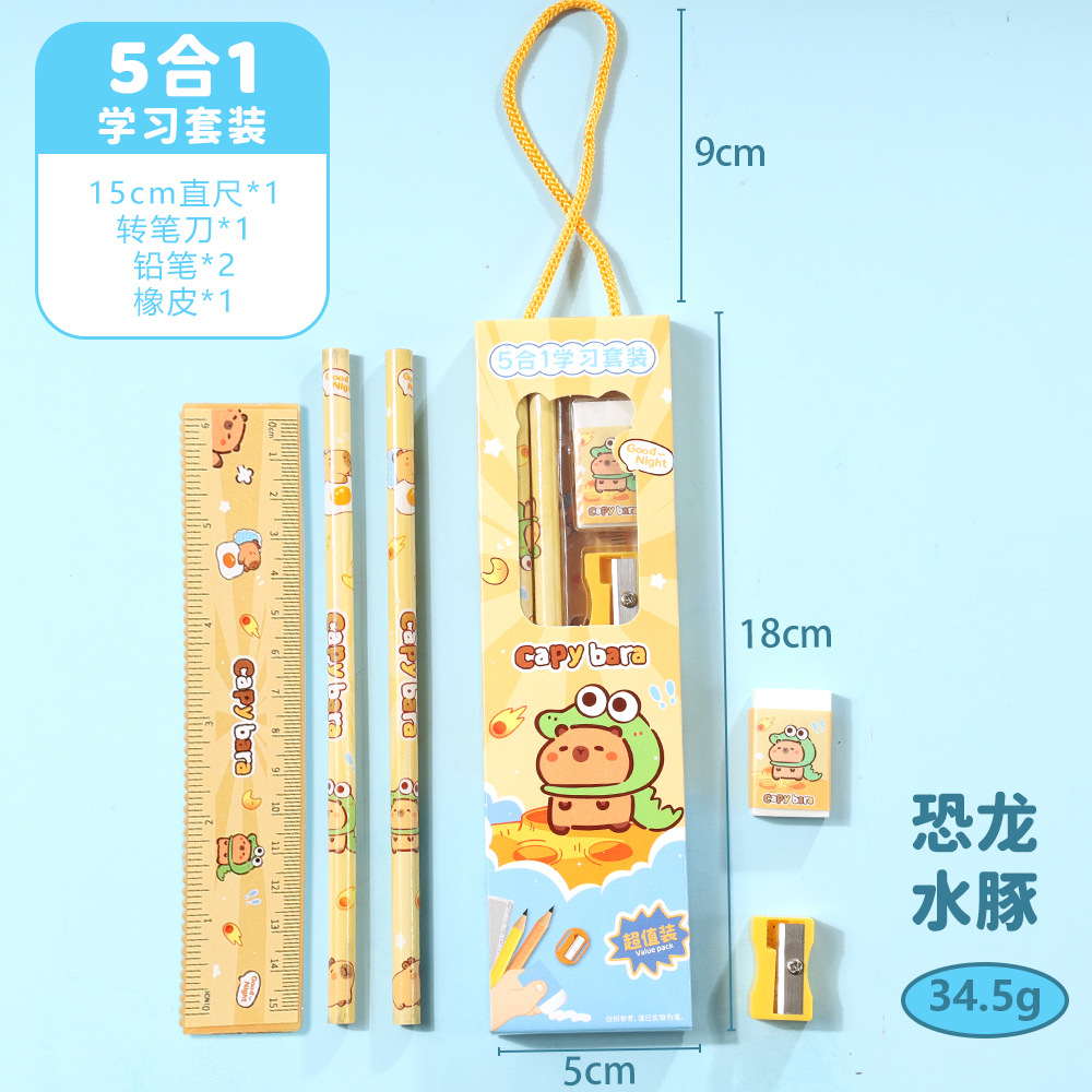 Kapibala 5-in-one 연필 문구 세트 어린이 5피스 상품 눈금자 지우개 세트 선물 상자 도매스토어 가기