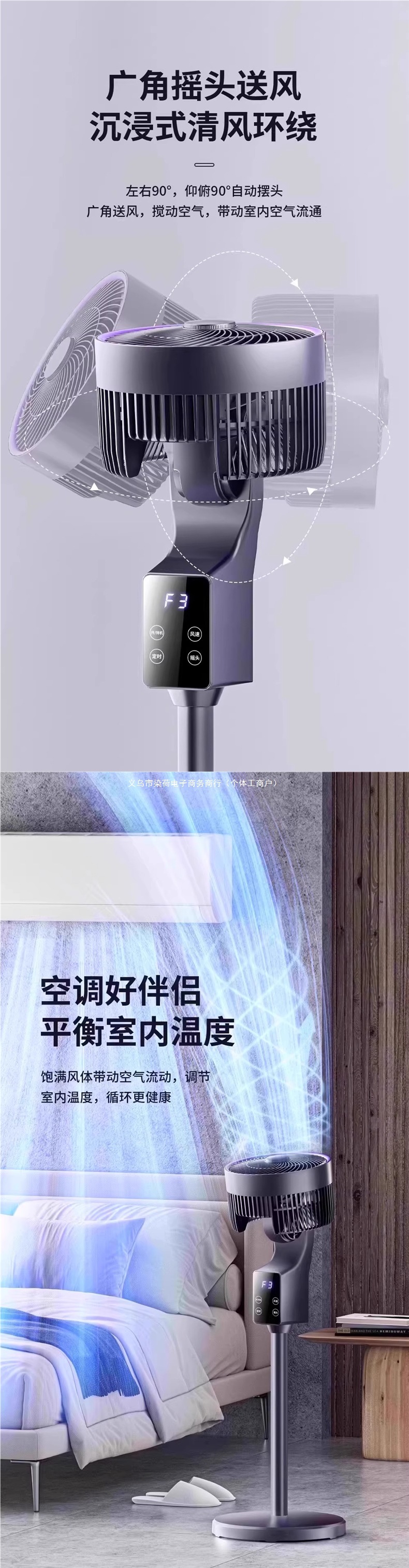 • [퍼플 그레이 럭셔리 리모콘 버전] 3D 좌우 흔들림 50회 에어컨 냉풍 200㎡1초에 26도 냉각되는 넓은 면적의 냉각℃집 전체를 3초만에 식힐 수 있습니다.