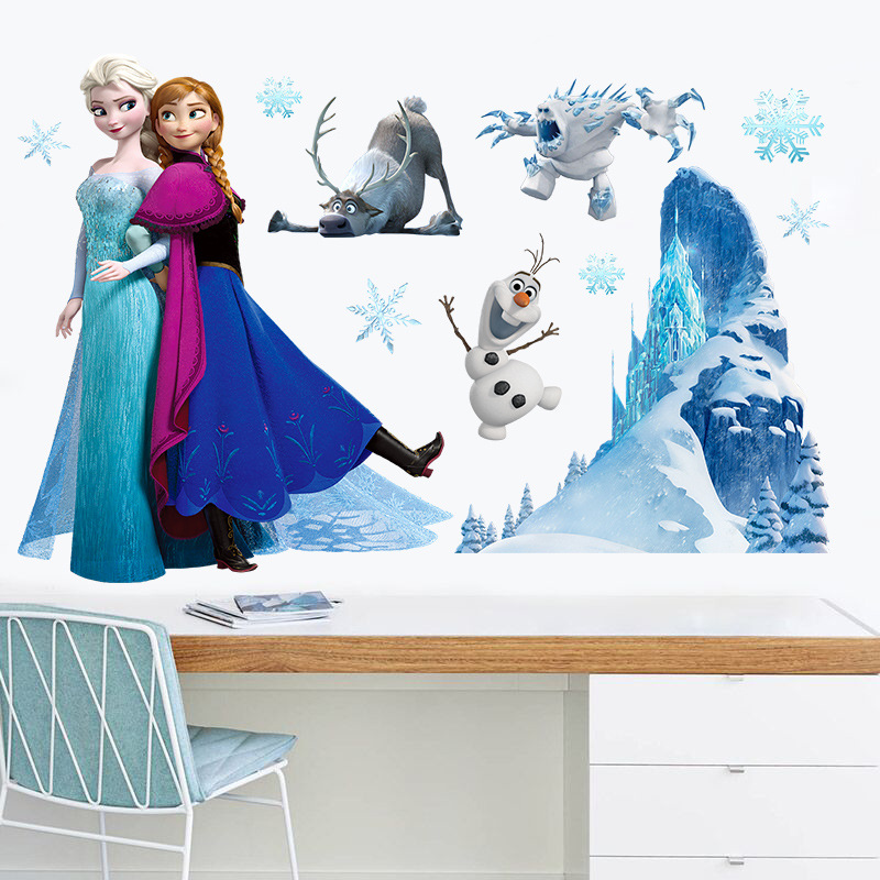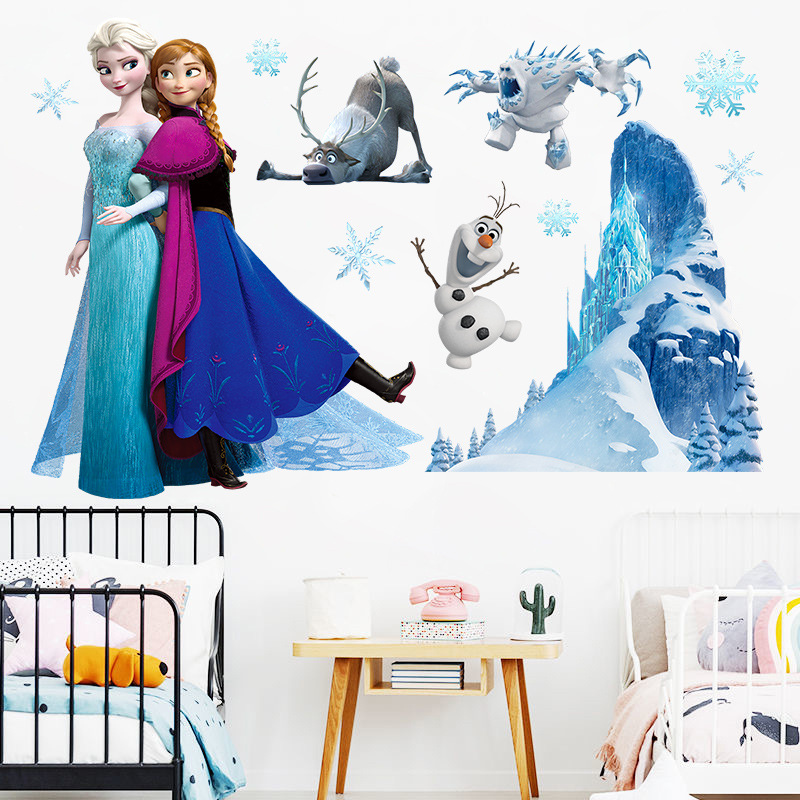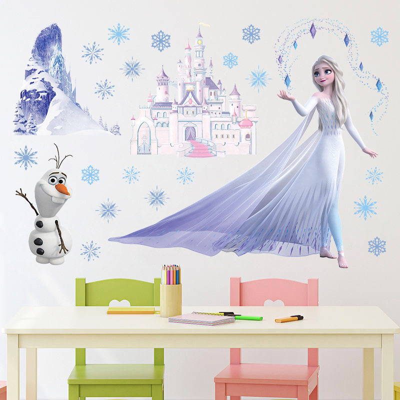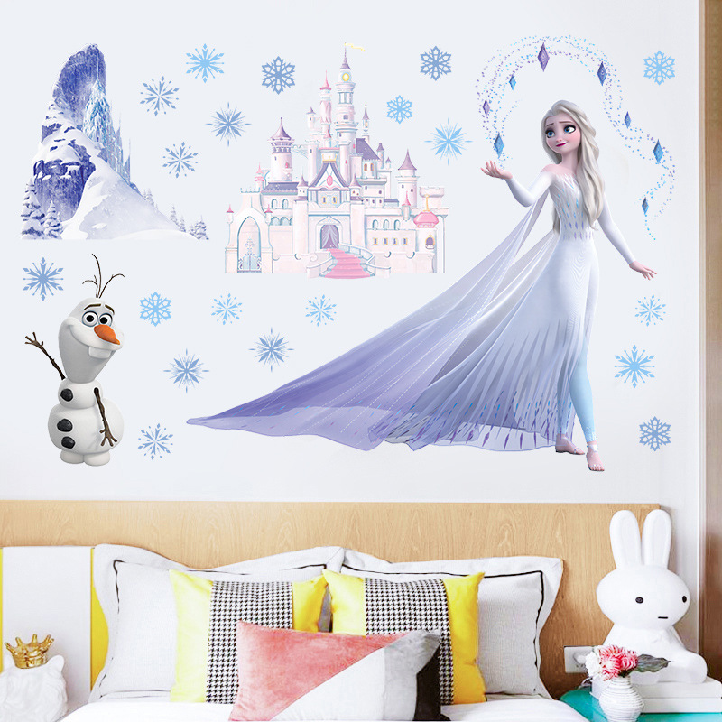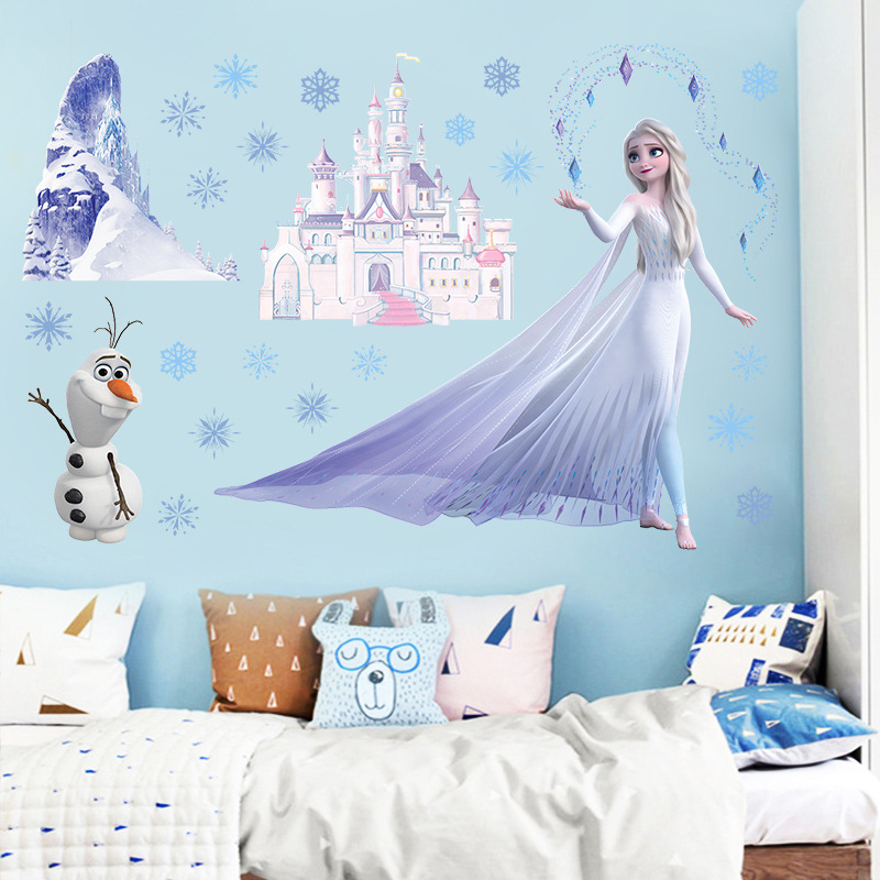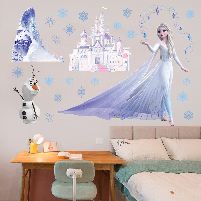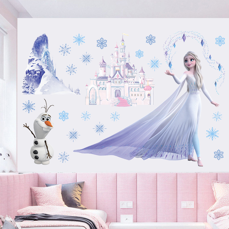 국경 간 대외 무역 겨울왕국 공주 벽 스티커 성 눈송이 벽 문 및 창 침실 머리맡 스티커 자체 접착 배송스토어 가기