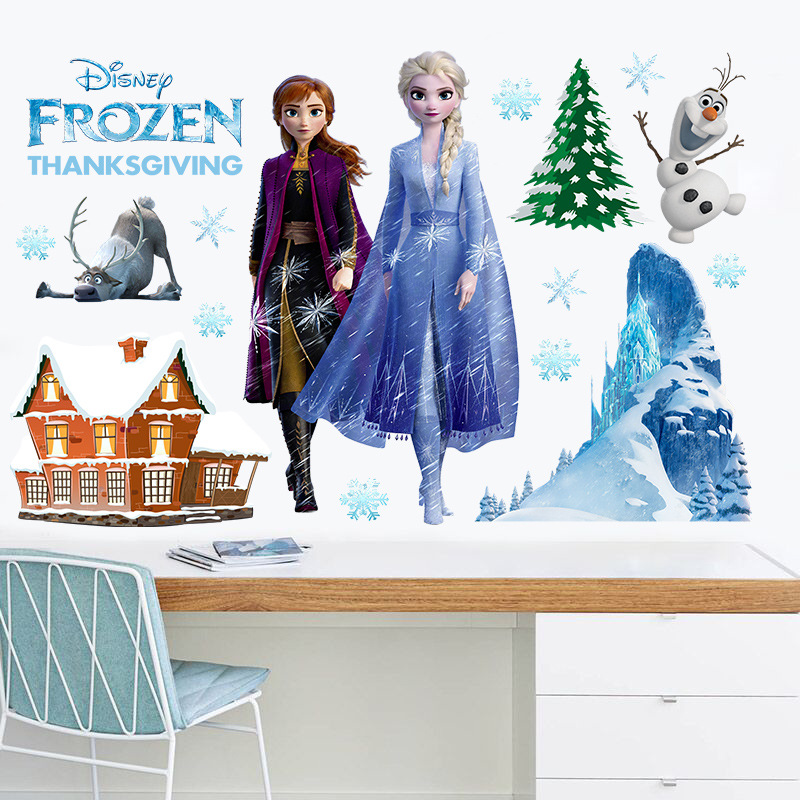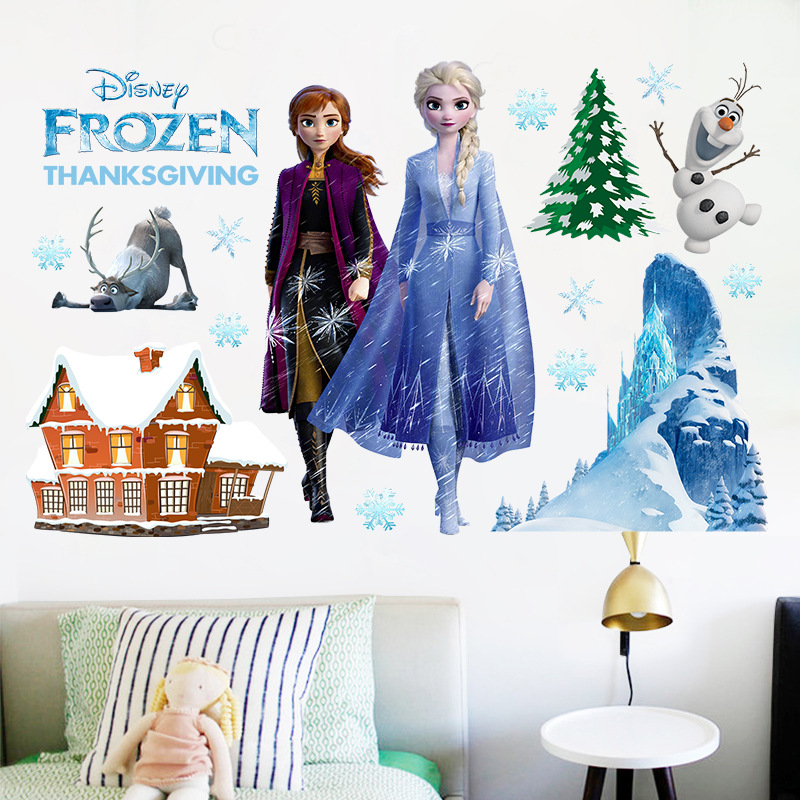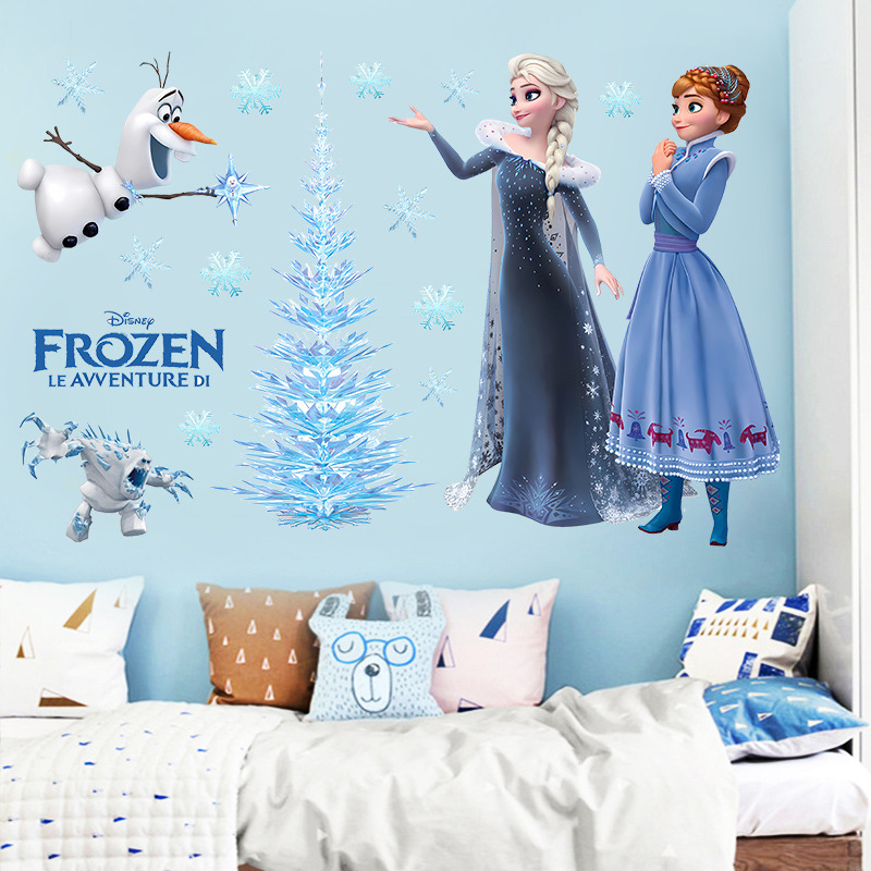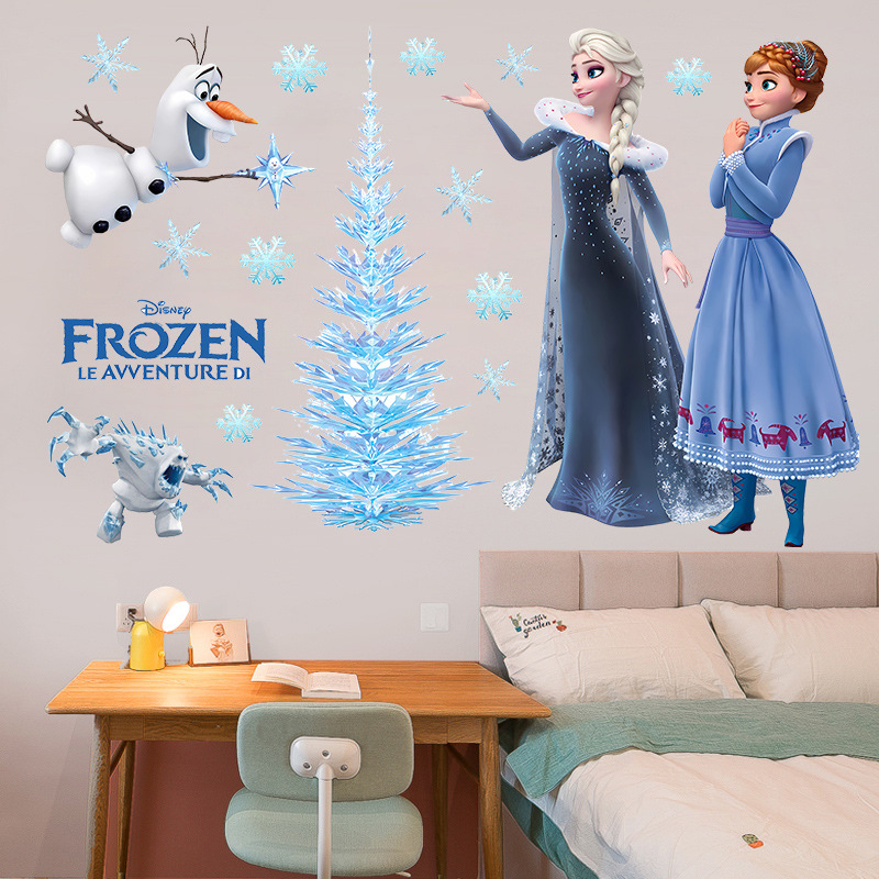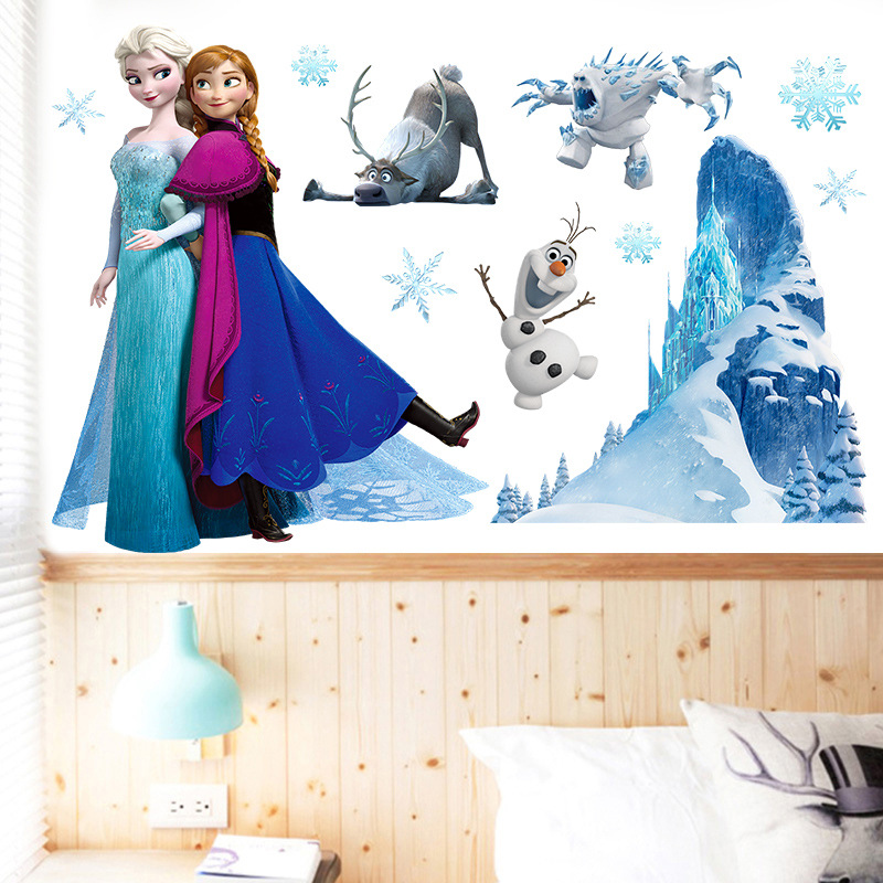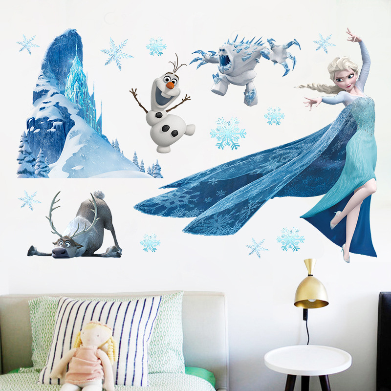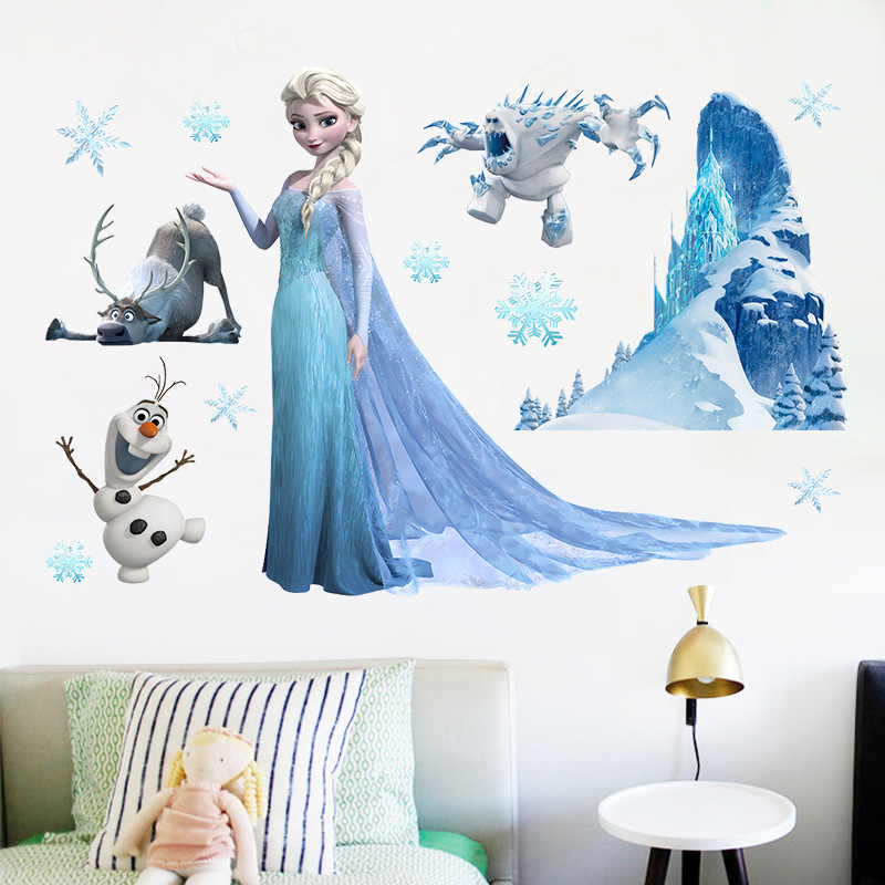 국경 간 대외 무역 겨울왕국 공주 벽 스티커 성 눈송이 벽 문 및 창 침실 머리맡 스티커 자체 접착 배송스토어 가기