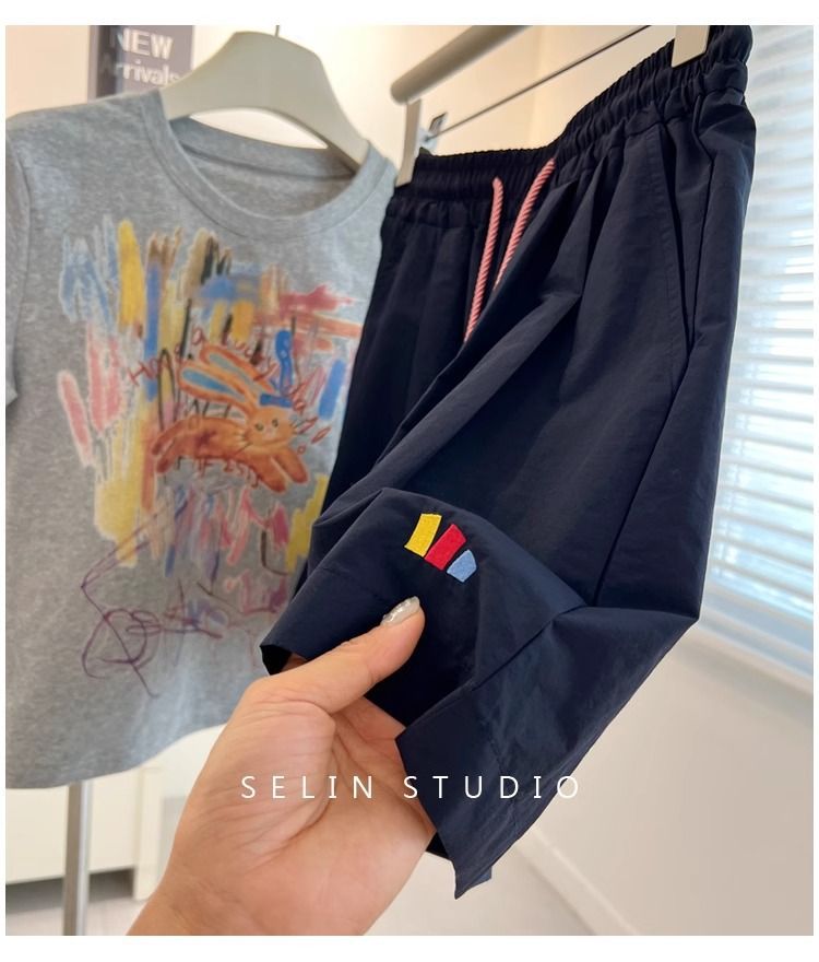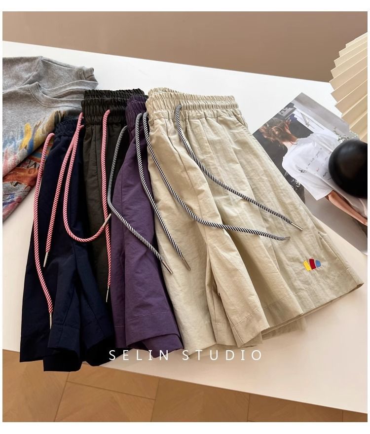 Fat mm 특대 사이즈 120kg 한국 스타일 루즈 캐주얼 신축성있는 허리 반바지 여성 여름 스타일 와이드 레그 팬츠 트렌드스토어 가기