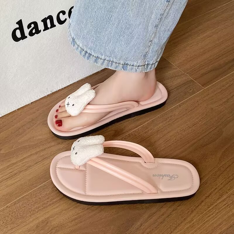 2025 새로운 여성스러운 인터넷 연예인 토끼 플립 플롭 여름 만화 귀여운 겉옷 미끄럼 방지 해변 신발 도매