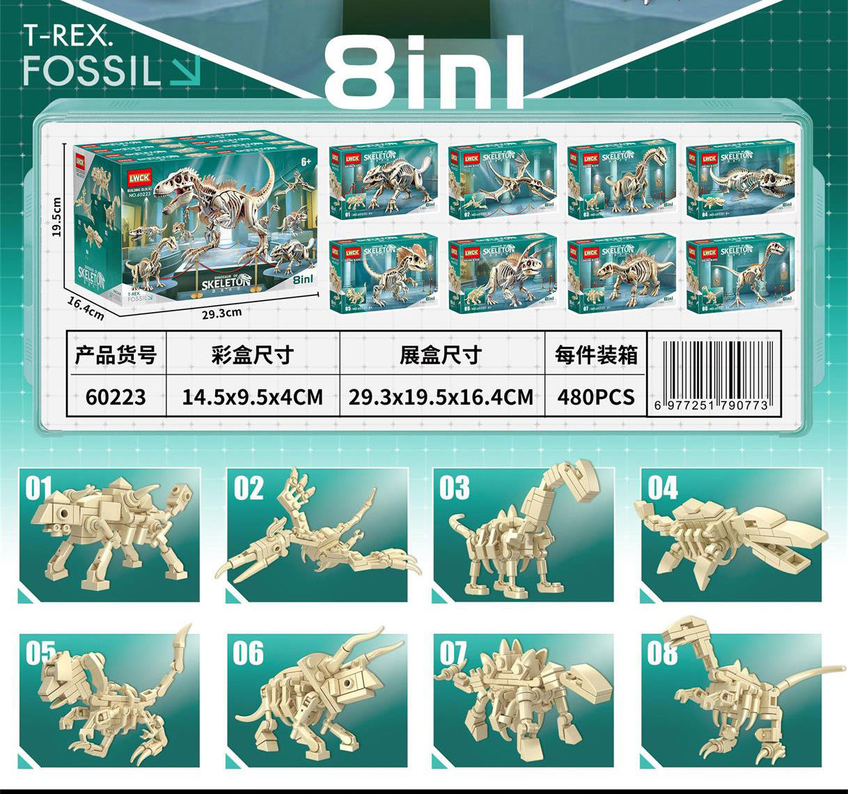 공룡 해골 빌딩 블록 조립 Mosasaurus Tyrannosaurus Rex 모델 어린이 장난감 문구점 선물 도매 60223스토어 가기