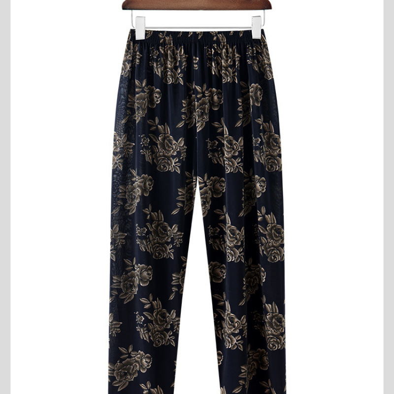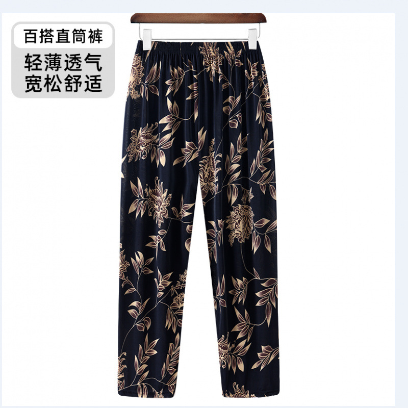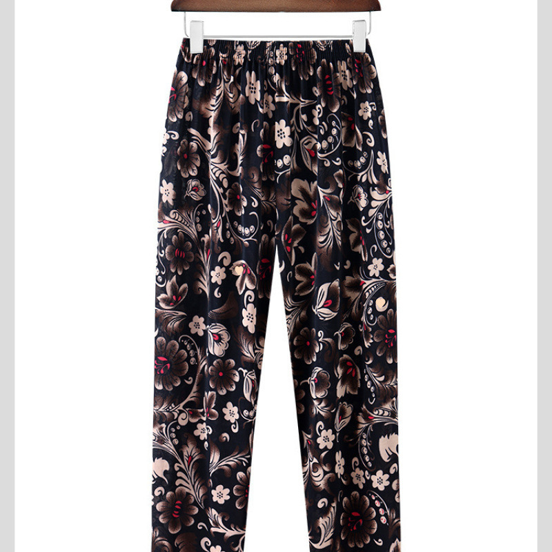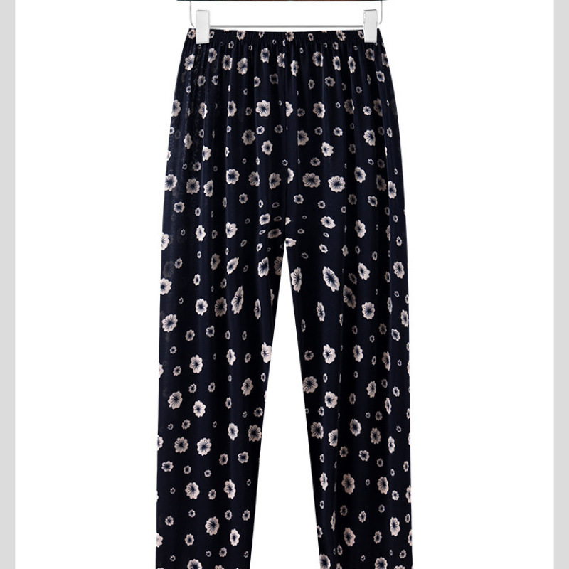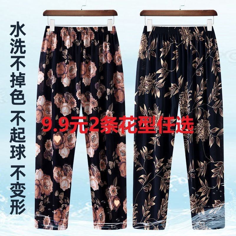 할머니바지, 노인용 꽃바지, 여름신상, 중노년 엄마바지, 아우터용 9부 아이스실크 여성바지