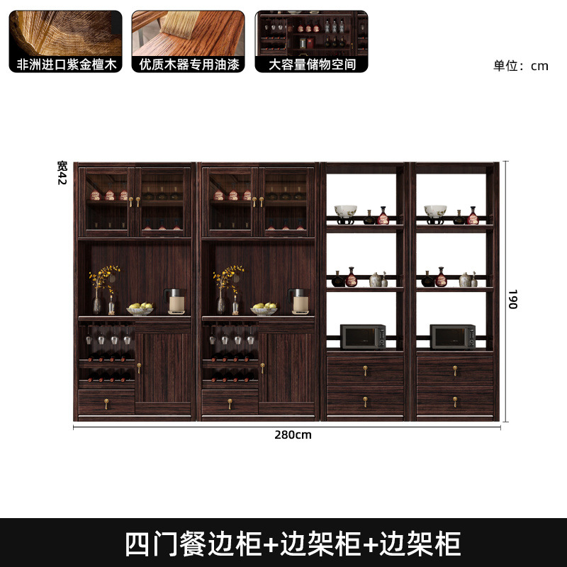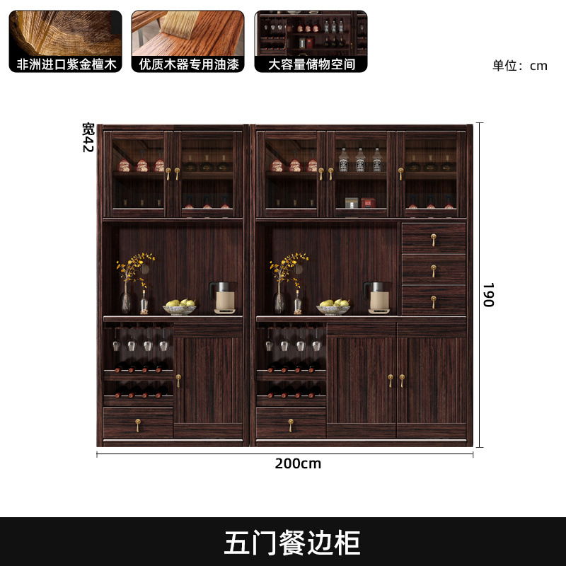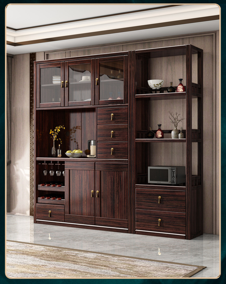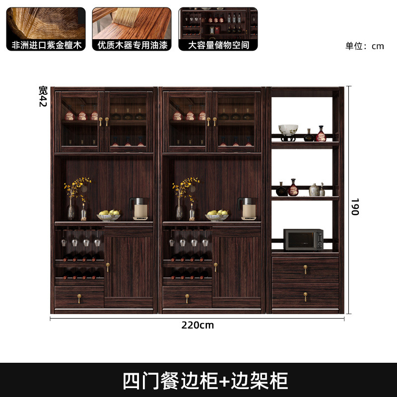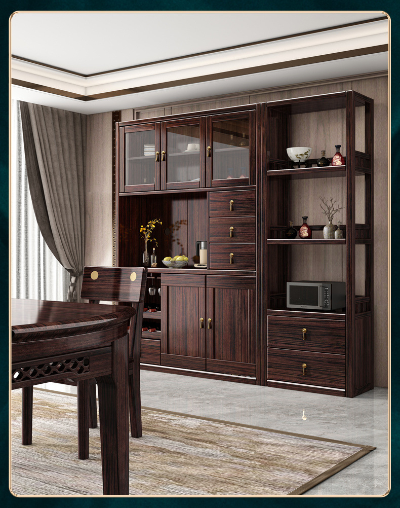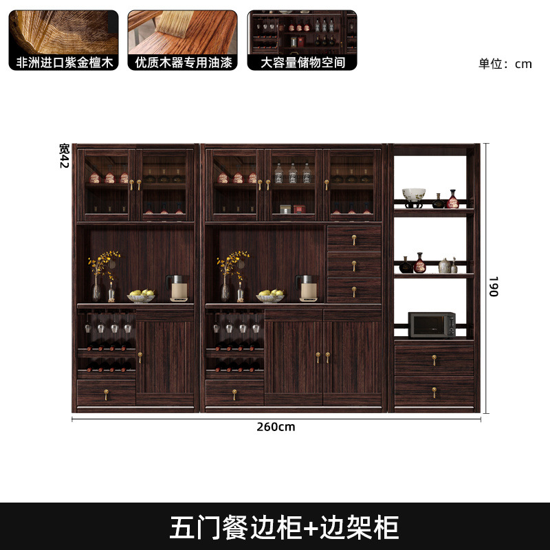 새로운 중국 스타일의 단단한 나무 찬장, 고급스러운 단단한 나무 와인 캐비닛, 보라색 금 백단 식당 캐비닛, 대형 수납 캐비닛의 전체 세트스토어 가기