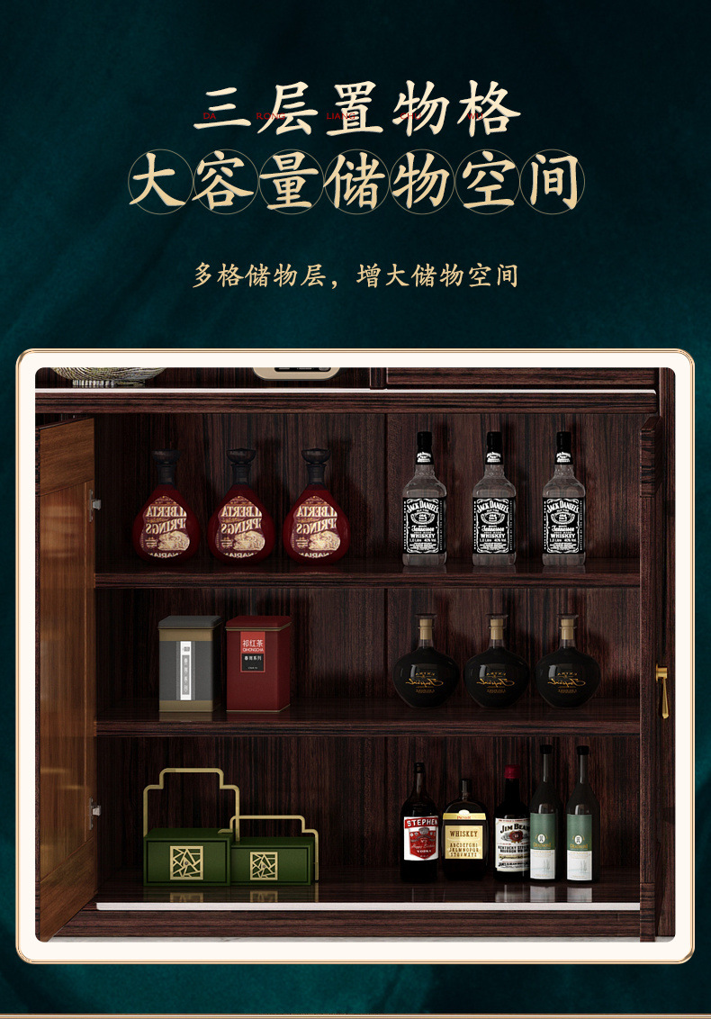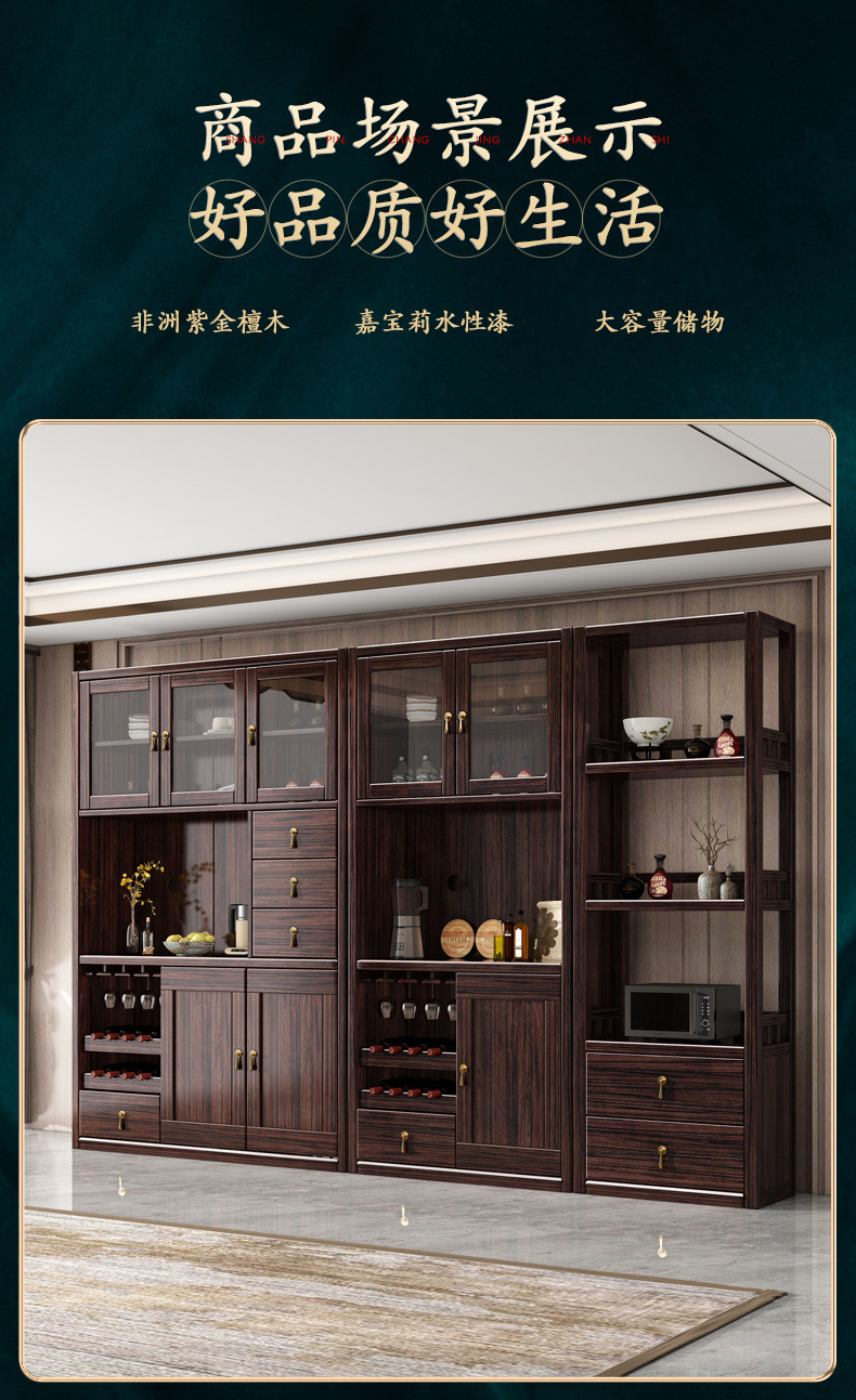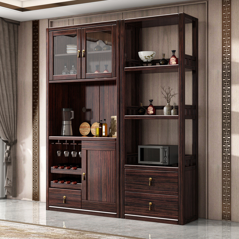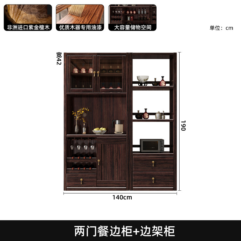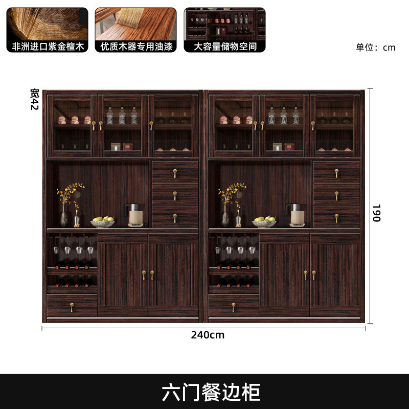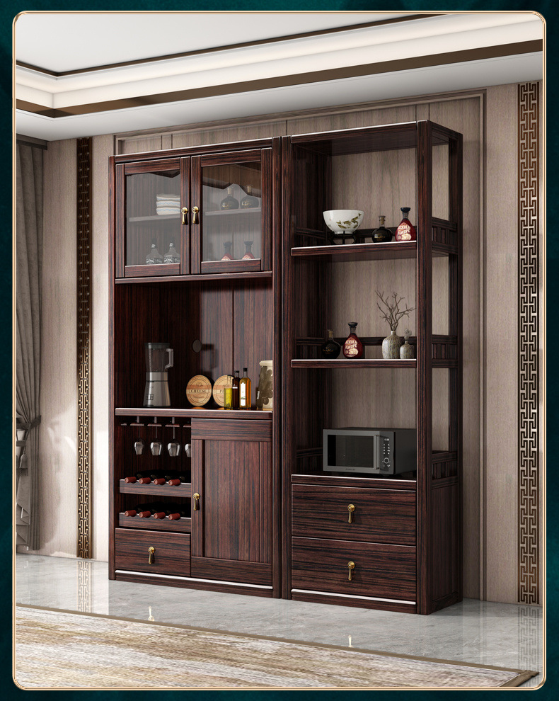 새로운 중국 스타일의 단단한 나무 찬장, 고급스러운 단단한 나무 와인 캐비닛, 보라색 금 백단 식당 캐비닛, 대형 수납 캐비닛의 전체 세트스토어 가기