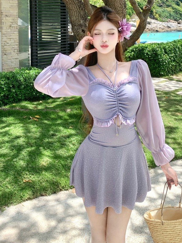 살이 살짝 뚱뚱한 여성을 위한 수영복, 고급스럽고 아름답고 섹시한 원피스 보수적인 보라색 투피스 여성 수영복스토어 가기