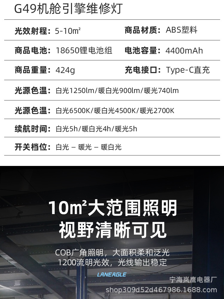 자동차 수리 조명 후드 엔진 수리 조명 수축 브래킷 충전 작업 조명 방수 및 내유성 자동차 수리 조명스토어 가기