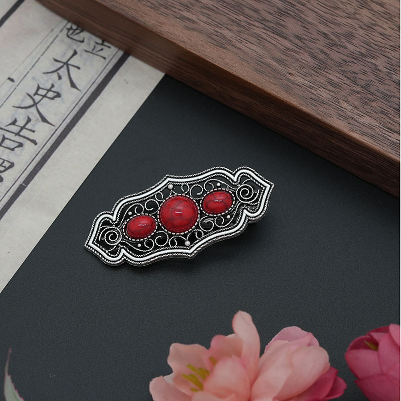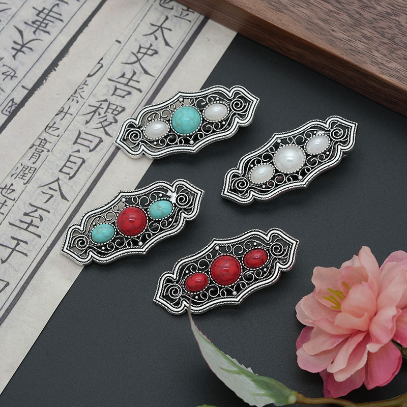 합금 몽골 요소 민족 스타일 헤어 액세서리 복고풍 청록색 원래 머리핀 머리핀 모조 실버 트림 클립