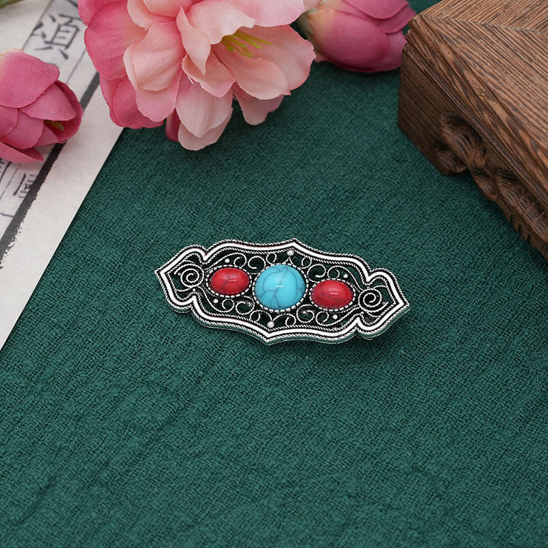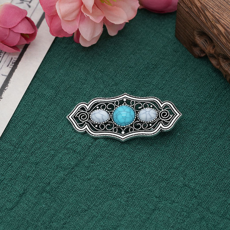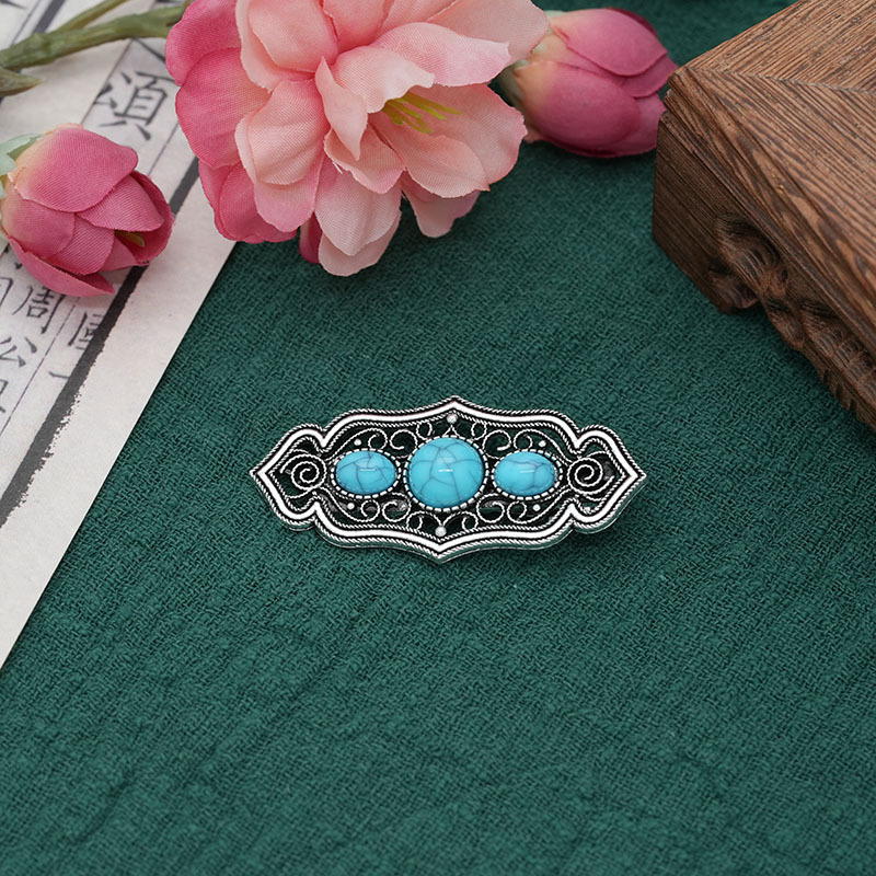 합금 몽골 요소 민족 스타일 헤어 액세서리 복고풍 청록색 원래 머리핀 머리핀 모조 실버 트림 클립스토어 가기