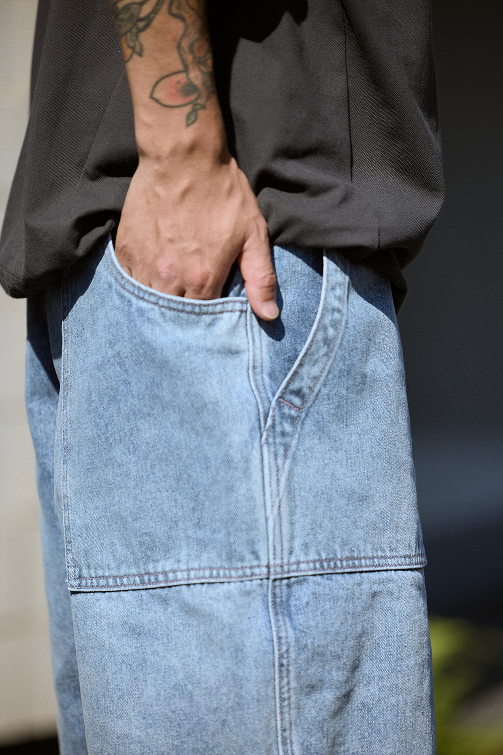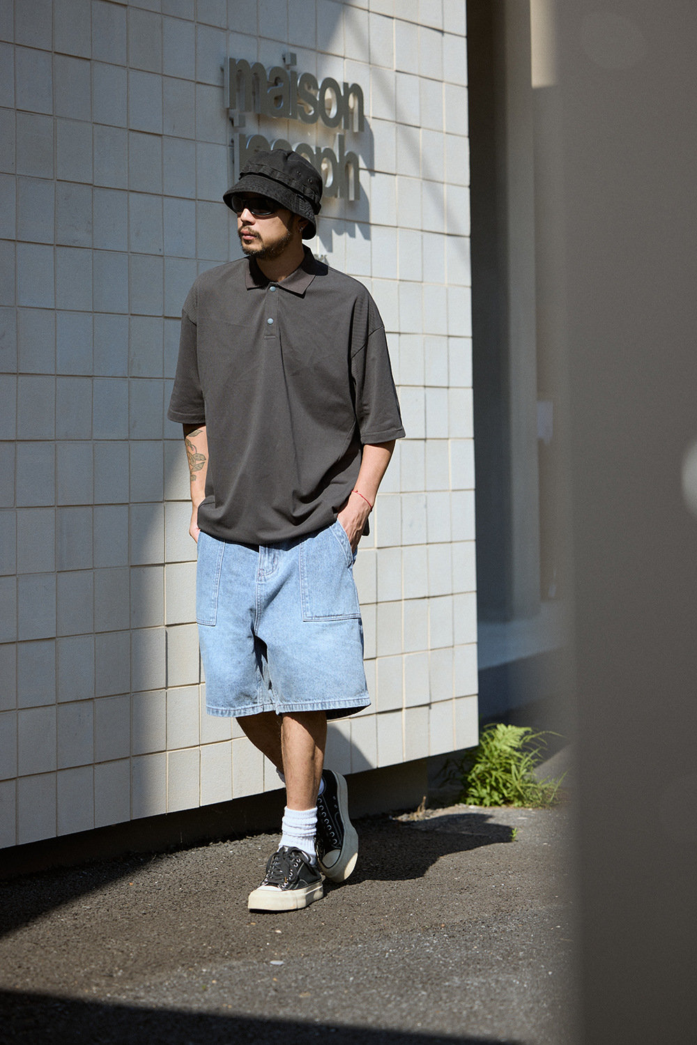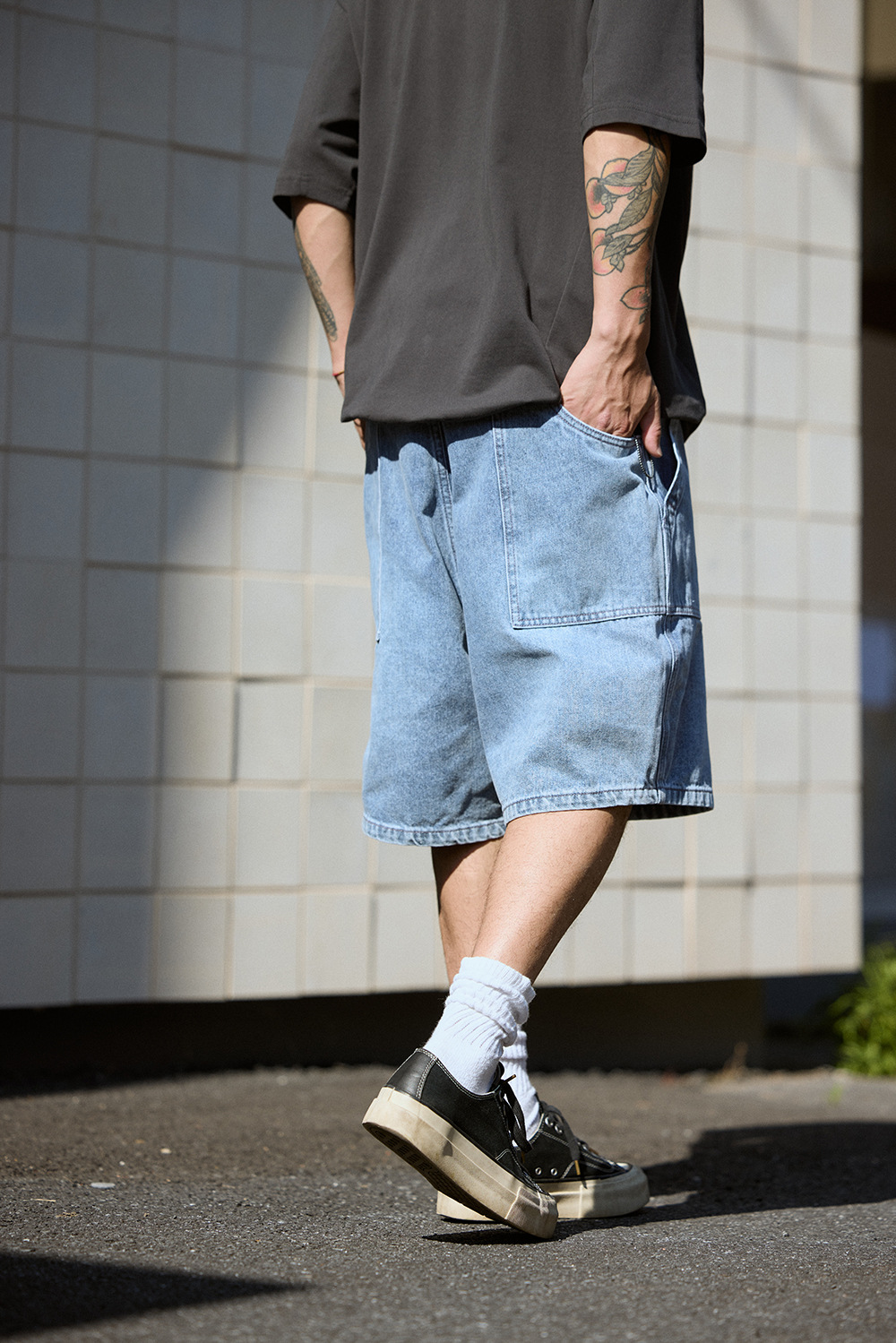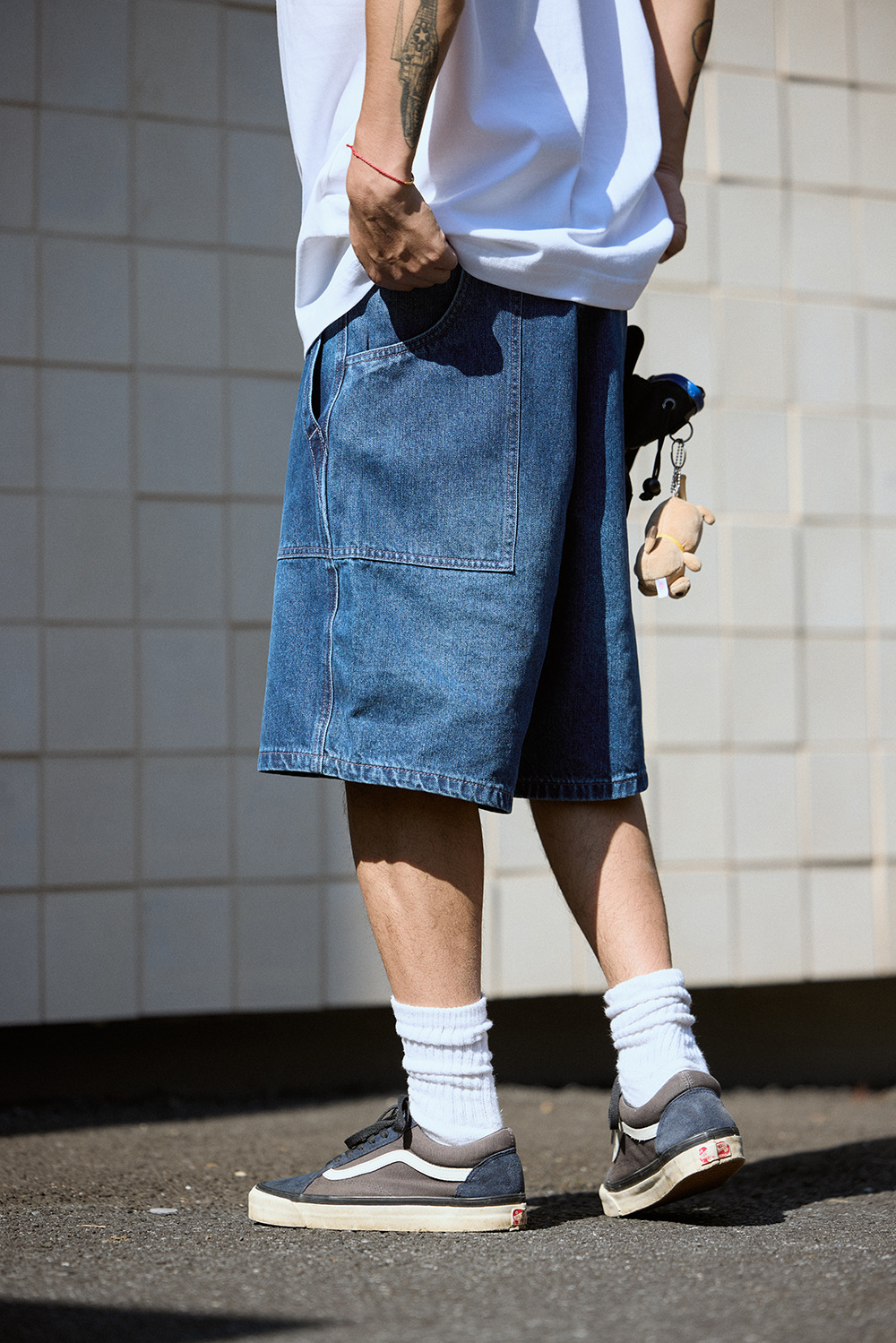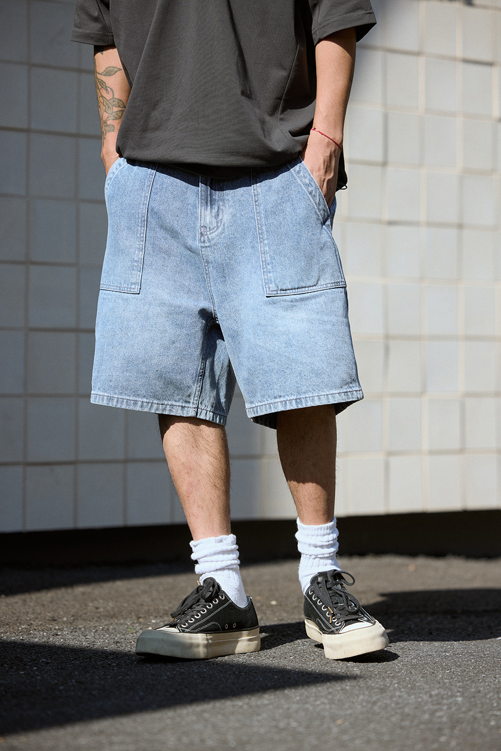 TRS 남성복丨25SS 일본 레트로 워싱 및 디스트레스드 핸드 마 카고 포켓 남성용 6점 데님 반바지스토어 가기