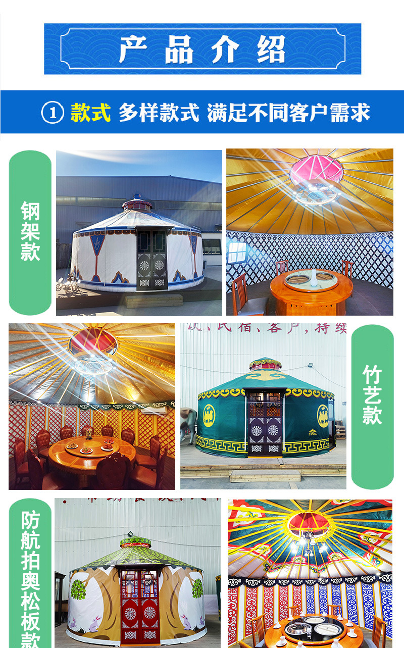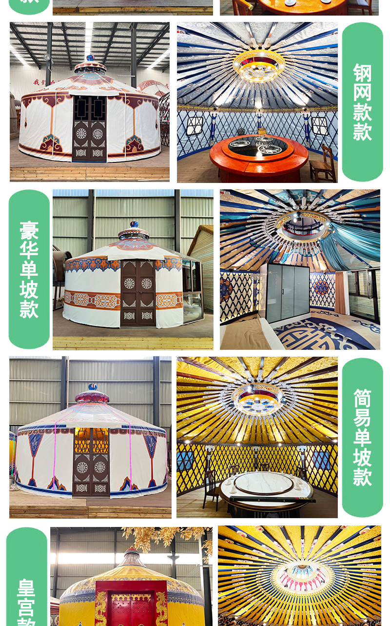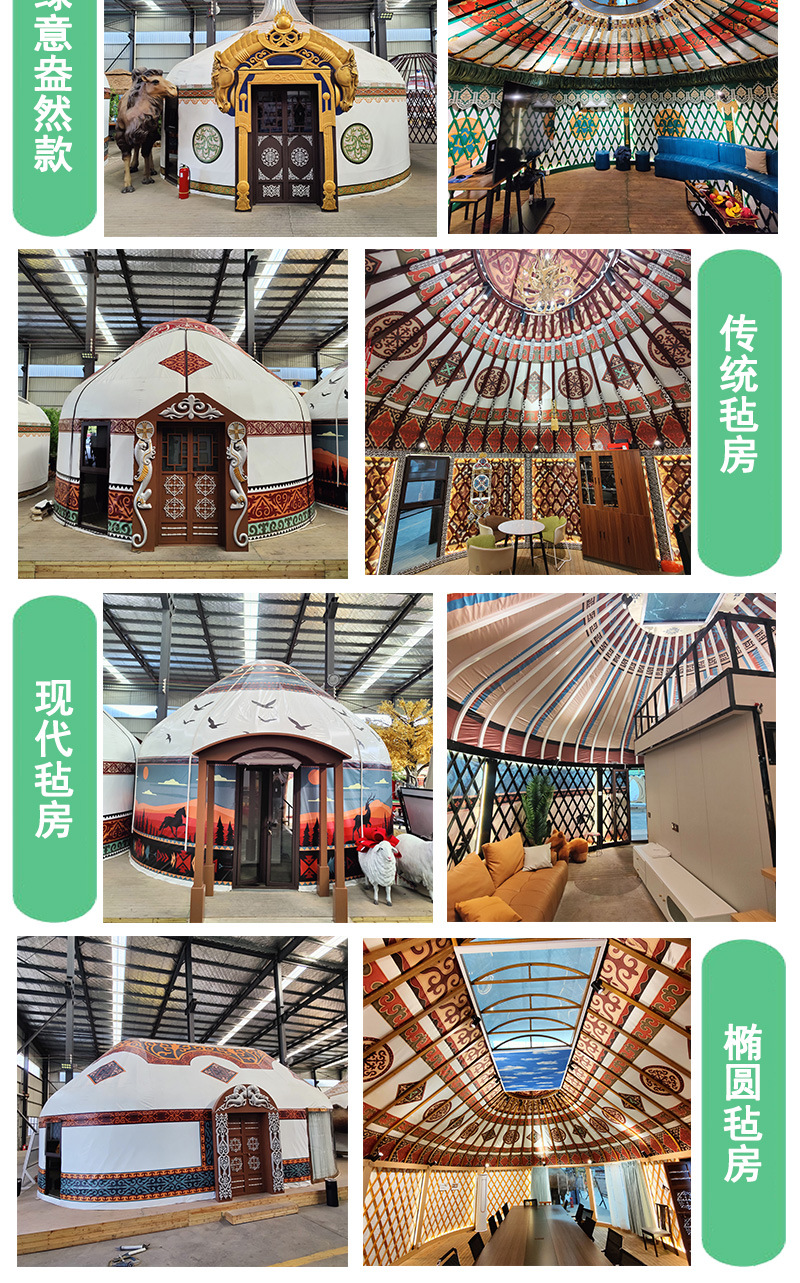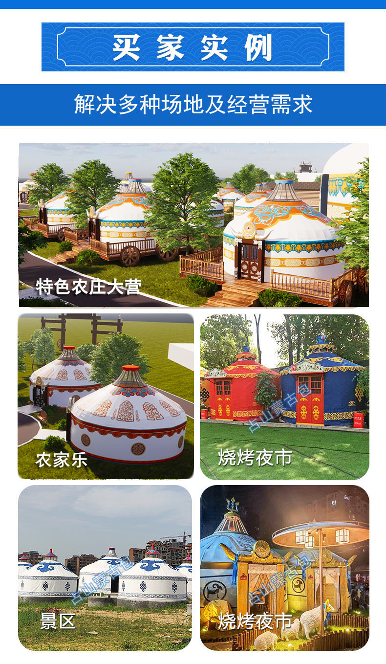 새로운 대형 몽골리안 돔 텐트 야외 농가 케이터링 방풍 및 단열 바닥 냄비 바베큐 야시장 명소 호텔