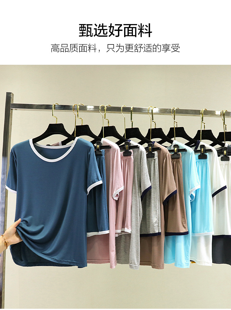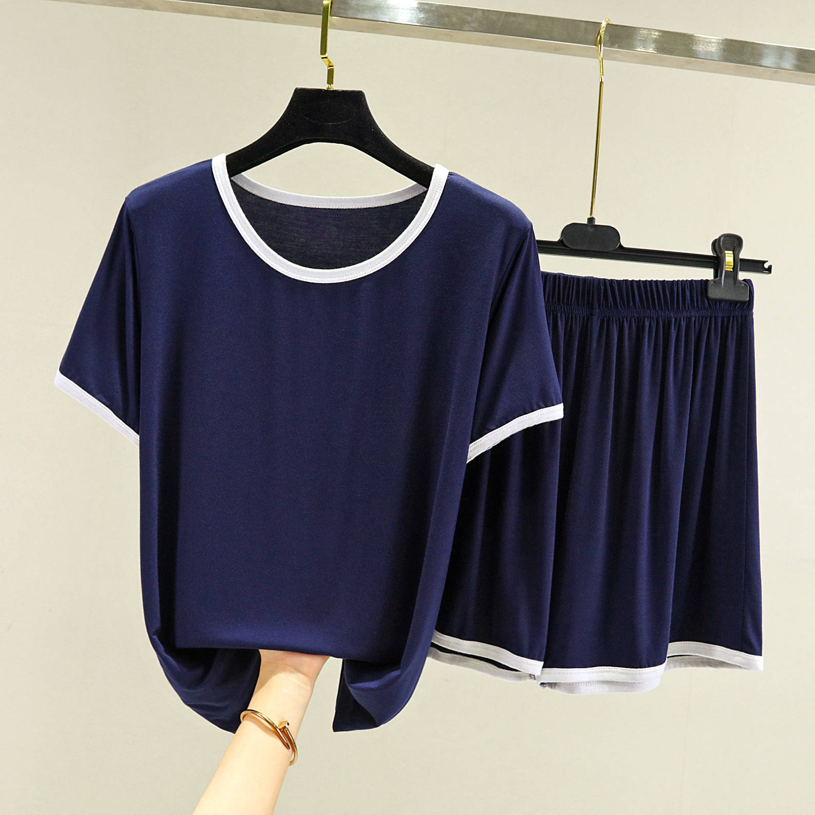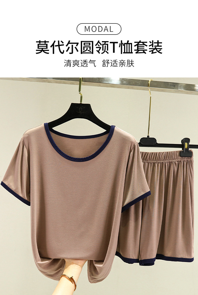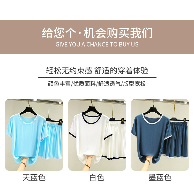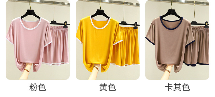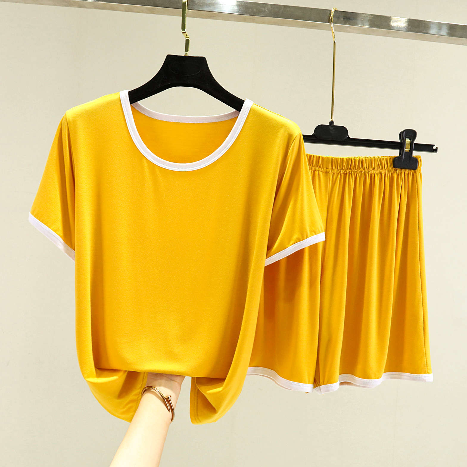 2025 여름 모달 잠옷 세트 여성용 얇은 홈 루즈 반팔 티셔츠 플러스 사이즈 탑 반바지 투피스 세트스토어 가기
