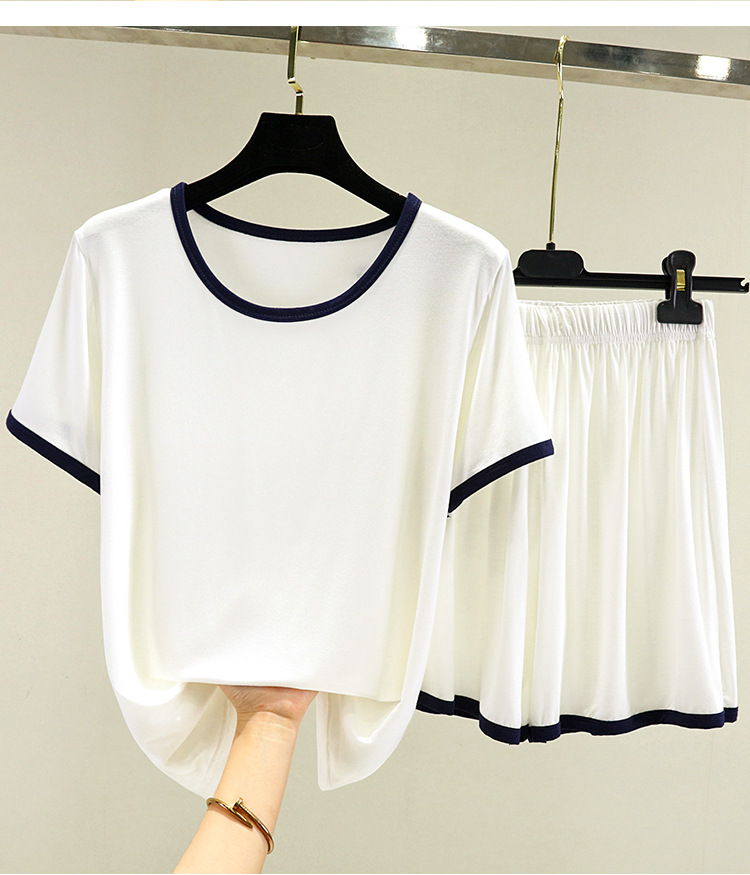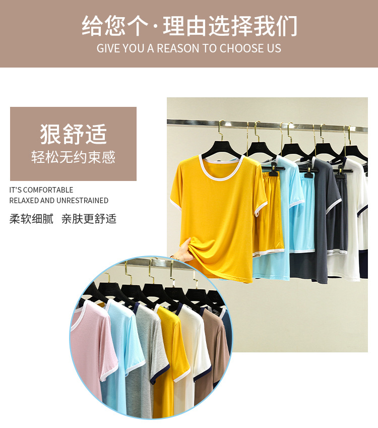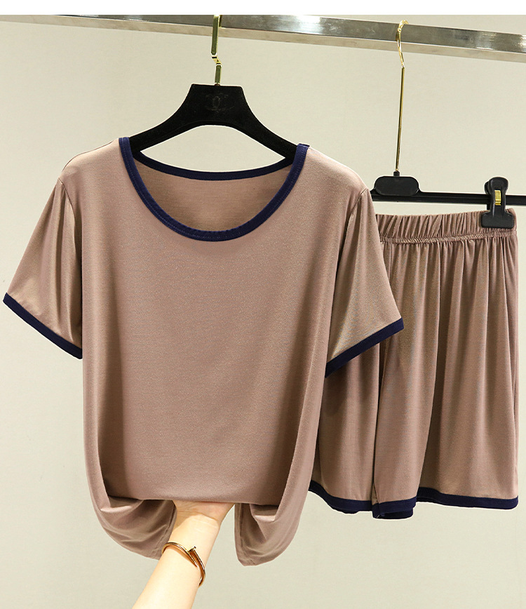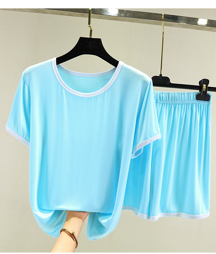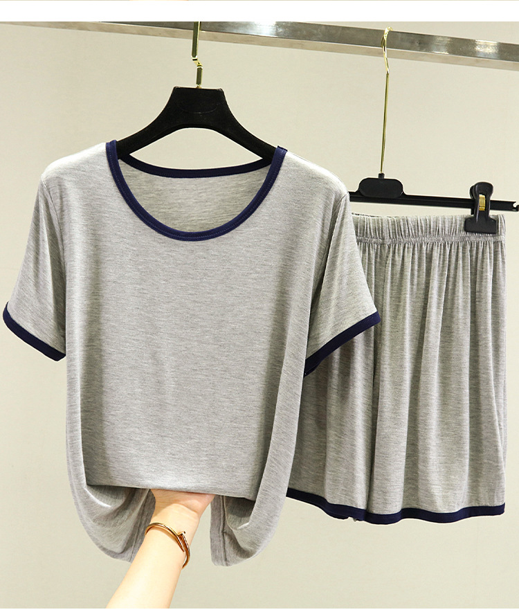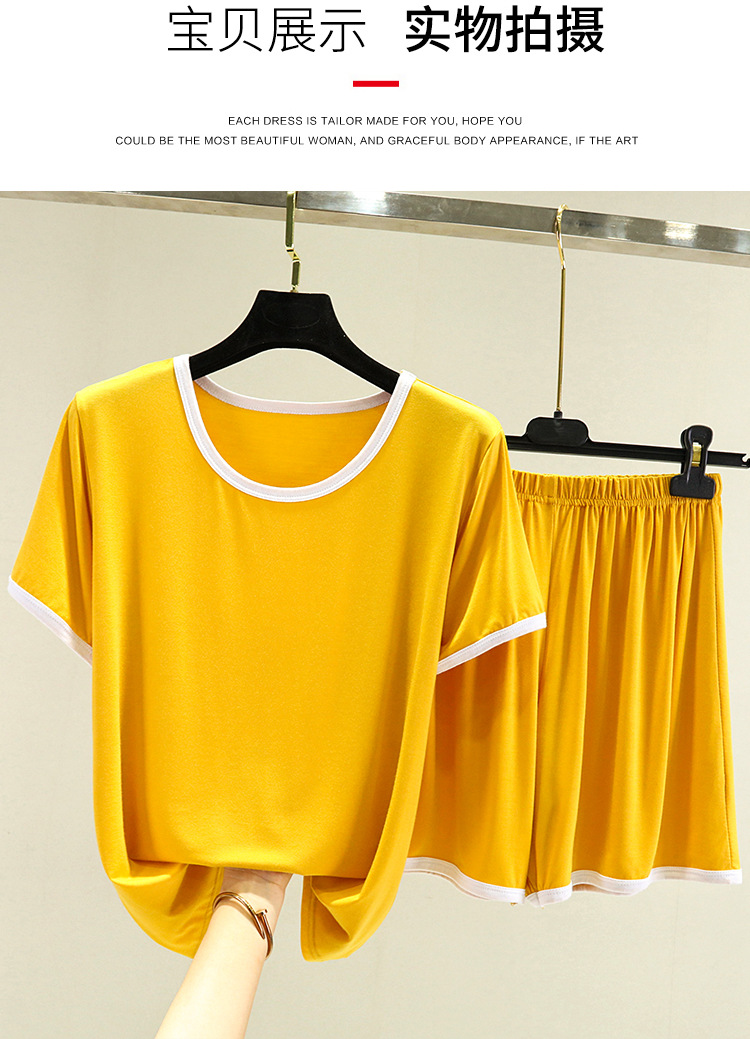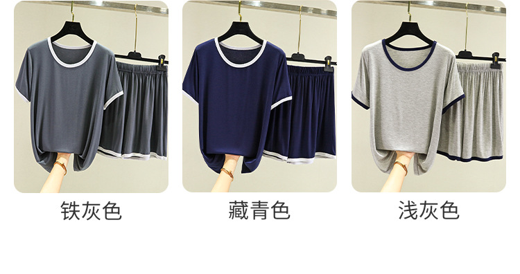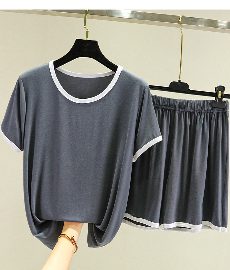 2025 여름 모달 잠옷 세트 여성용 얇은 홈 루즈 반팔 티셔츠 플러스 사이즈 탑 반바지 투피스 세트스토어 가기