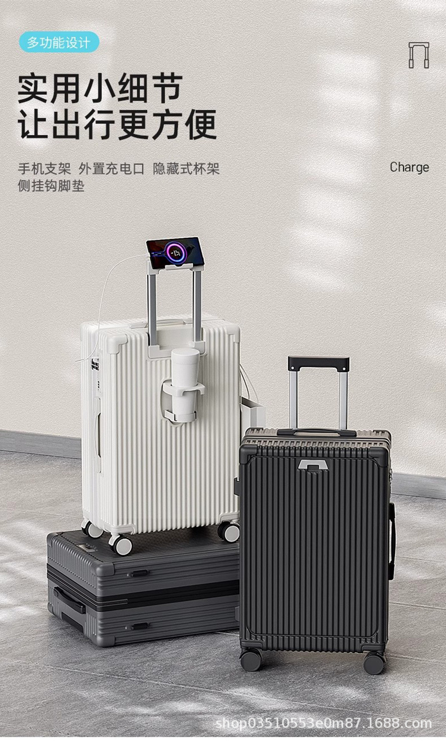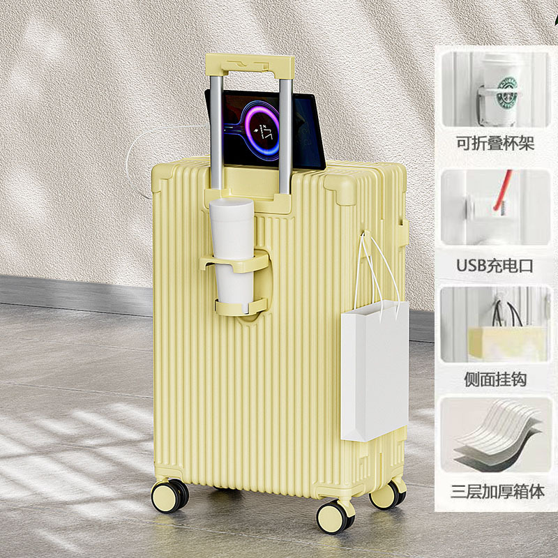 학생 가방 USB 인터페이스 워터 컵 홀더 암호 상자 내구성 자동 범용 휠 트롤리 가방 20inch