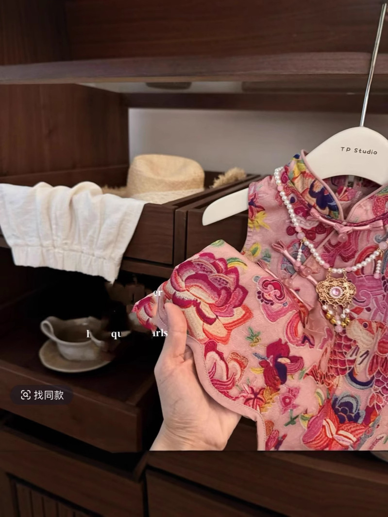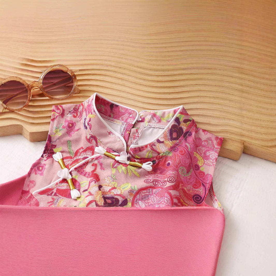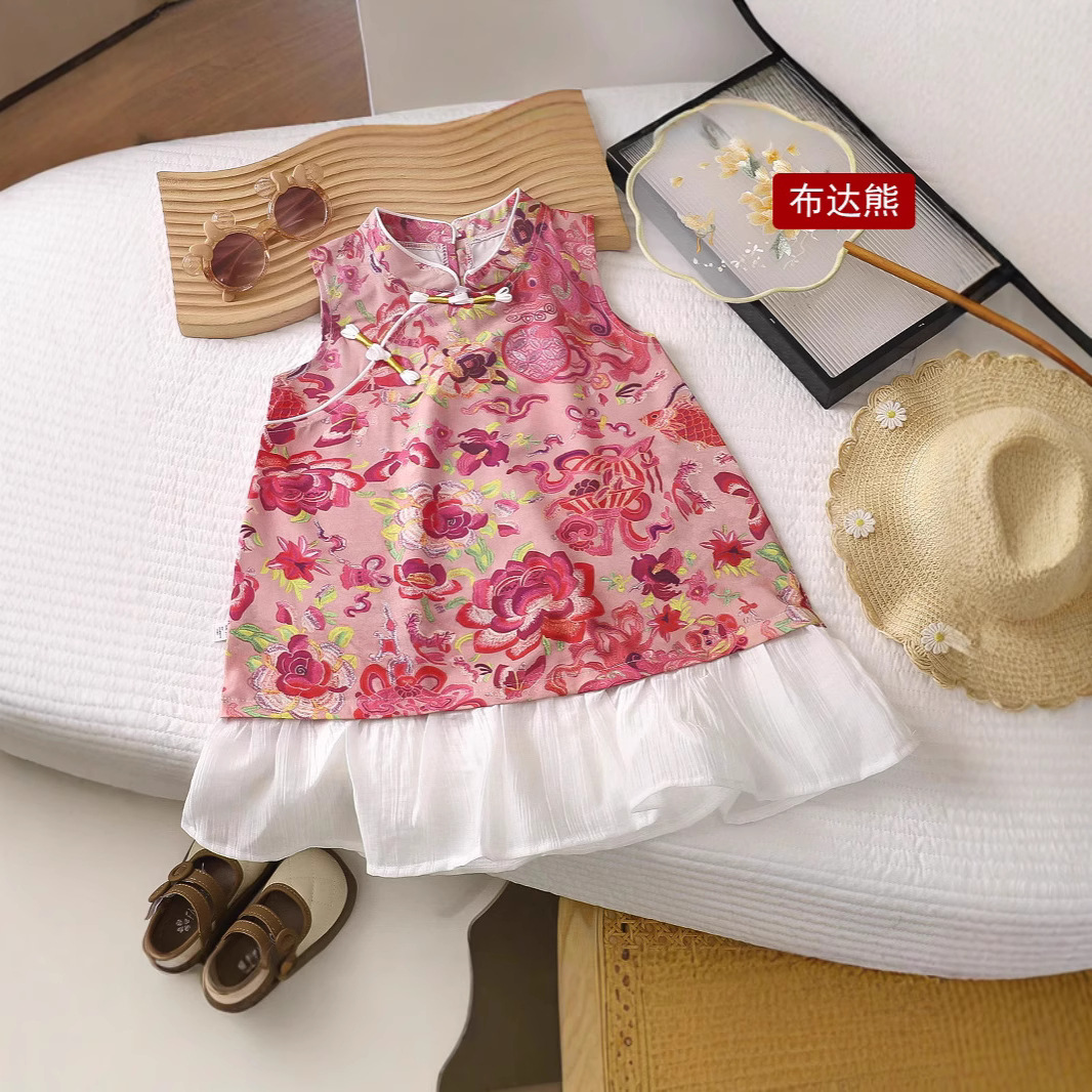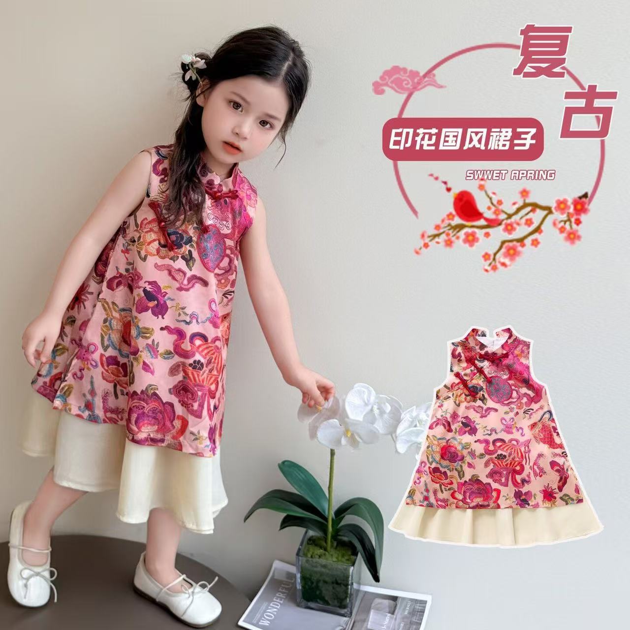 여자 중국 스타일 정장 여름 2025 새로운 슈퍼 멋진 아동복 새로운 중국 스타일 아기 소녀 여름 옷 Hanfu 민소매