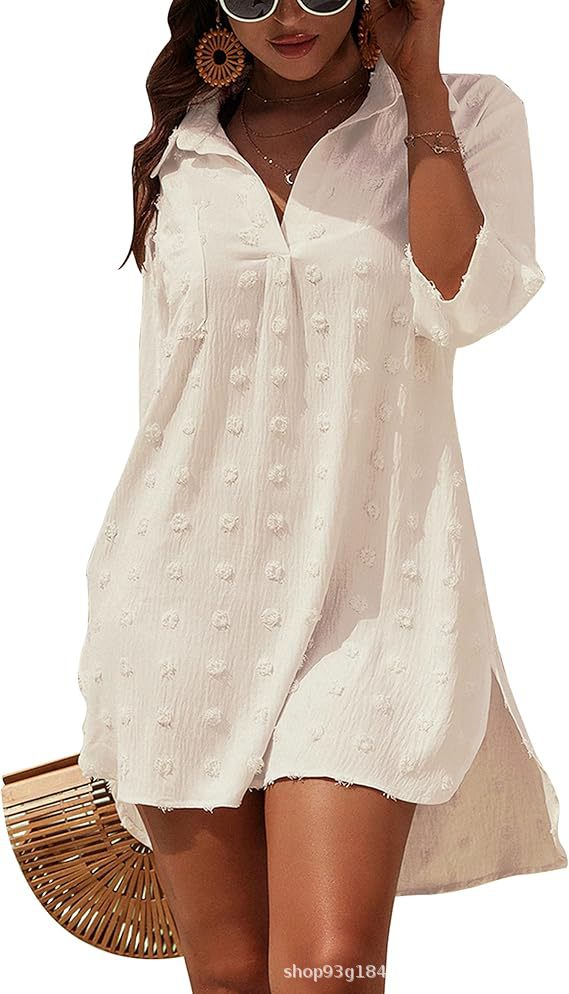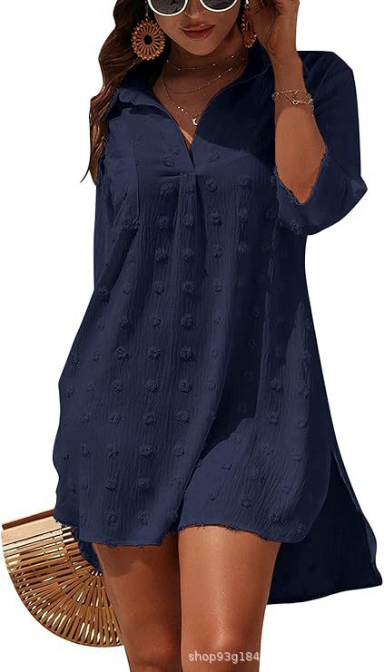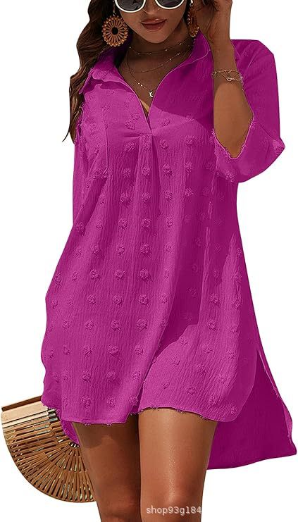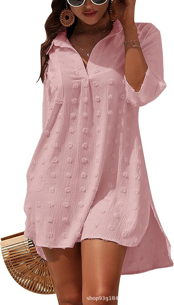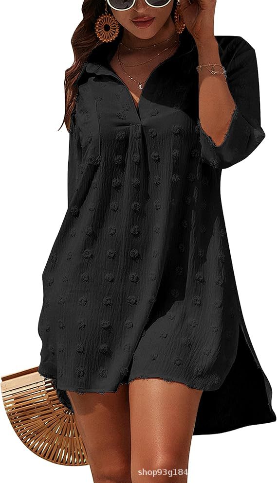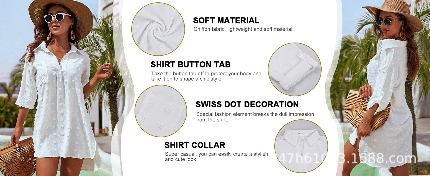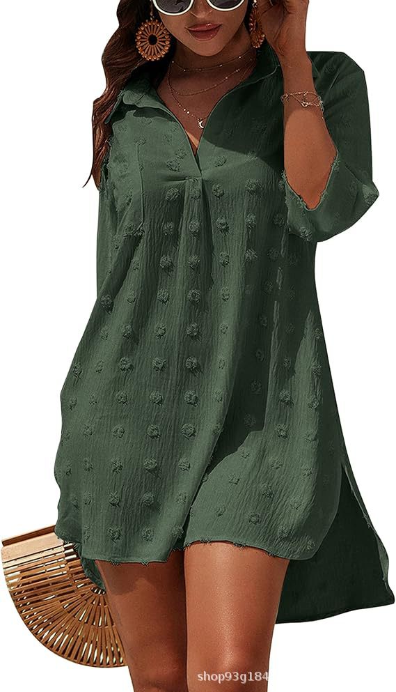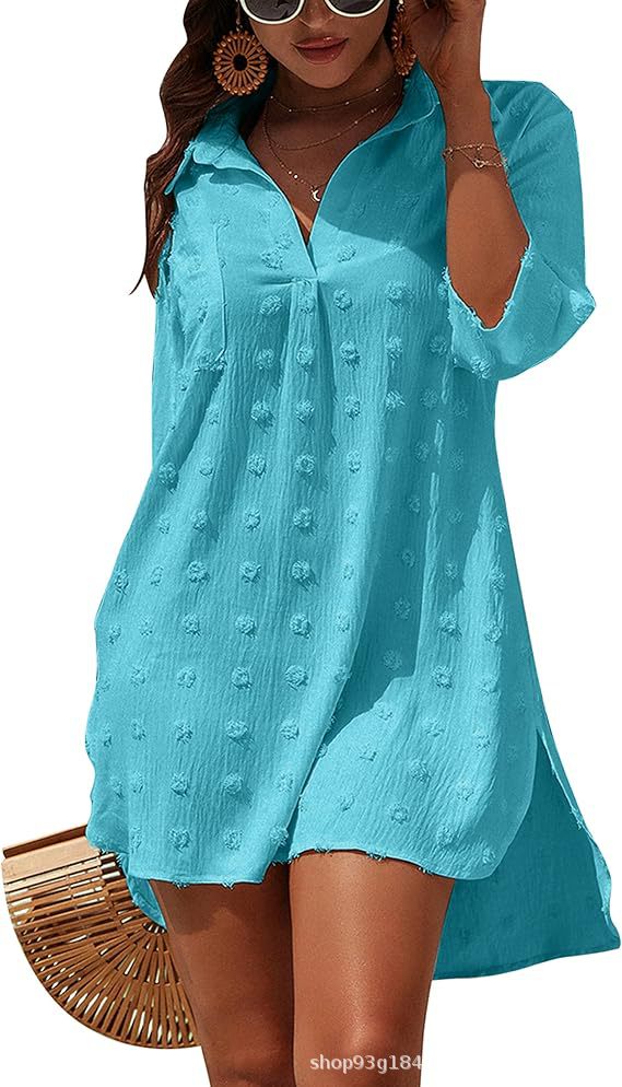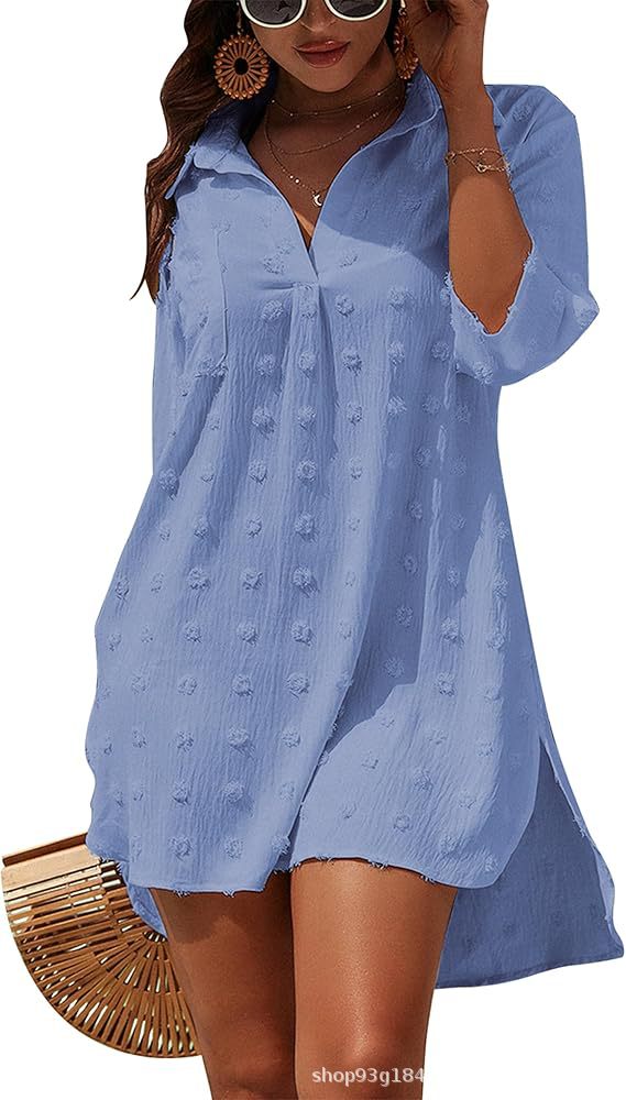 Amazon Cross Border 여성용 수영복 커버 탑 쉬폰 커버 업 비키니 수영복 비치 드레스 셔츠