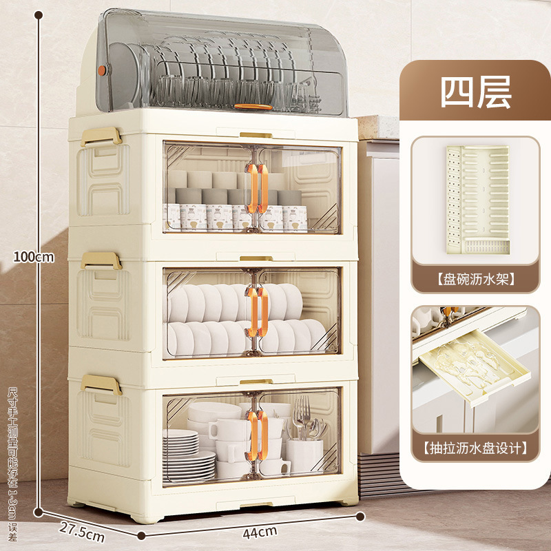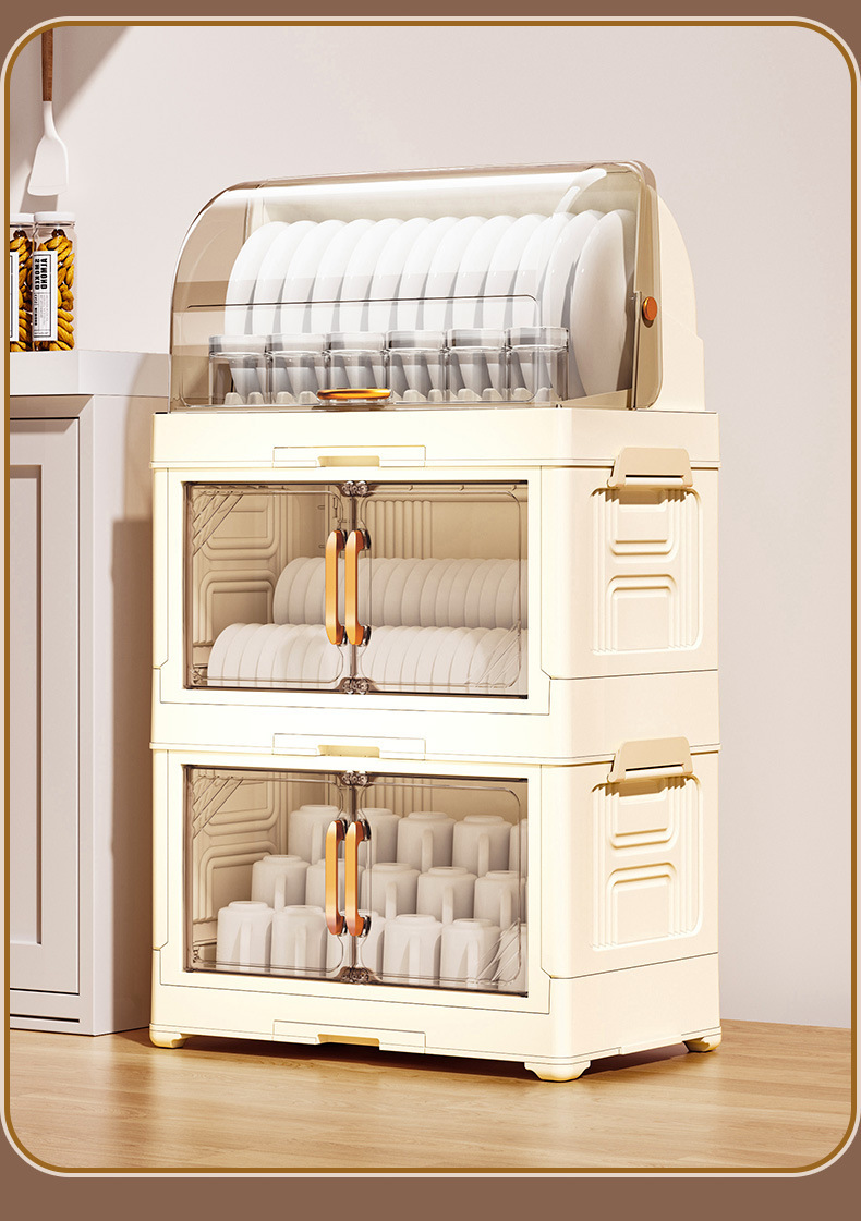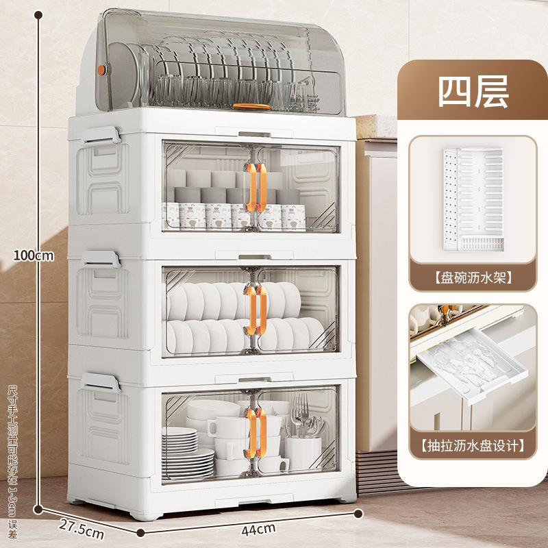 국경 간 다층 주방 배수 캐비닛 플립 커버 접이식 방진 접시 및 젓가락 보관함 주방 식기 보관함스토어 가기