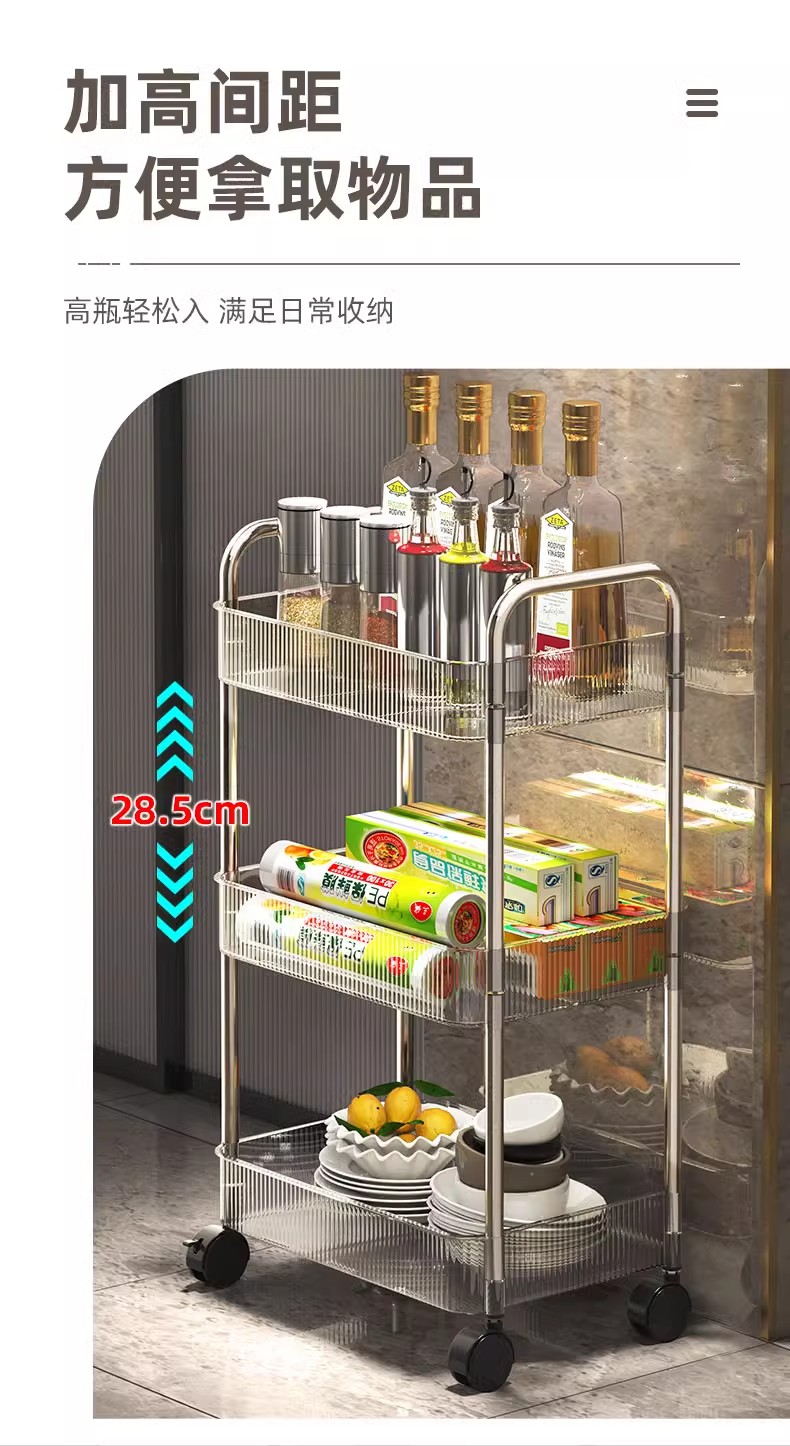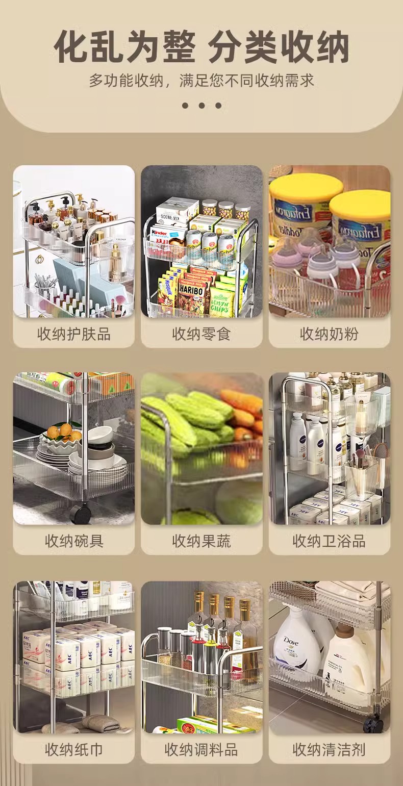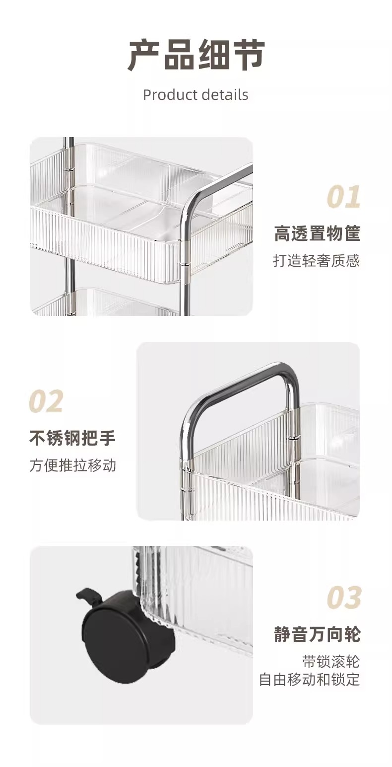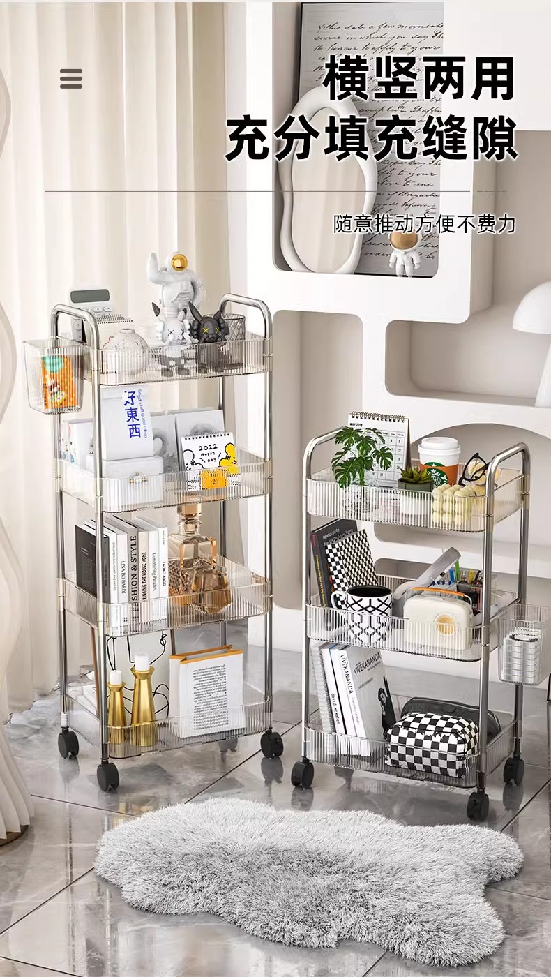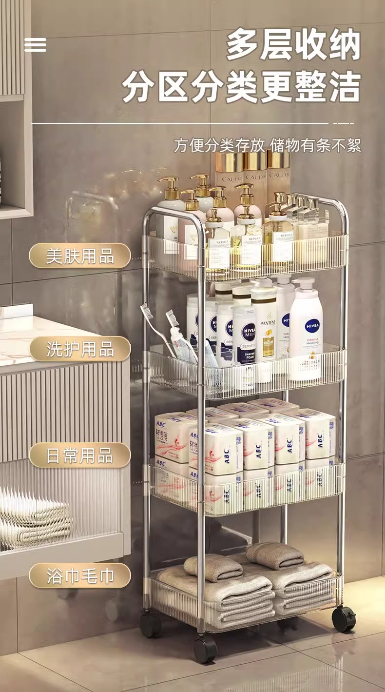 아크릴 스낵 트롤리 보관함 바닥 스탠딩 모바일 욕실 화장실 보관함 다층 화장품 캐비닛스토어 가기