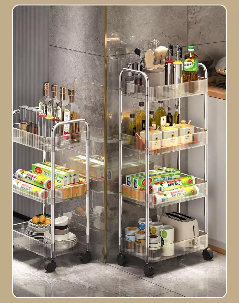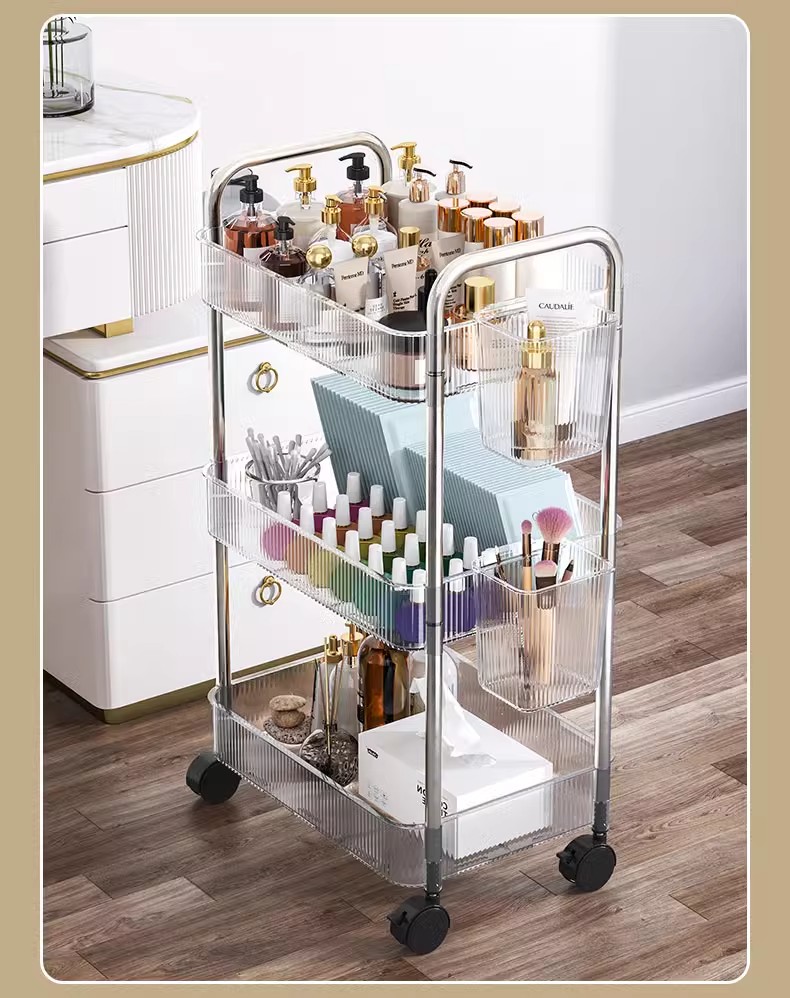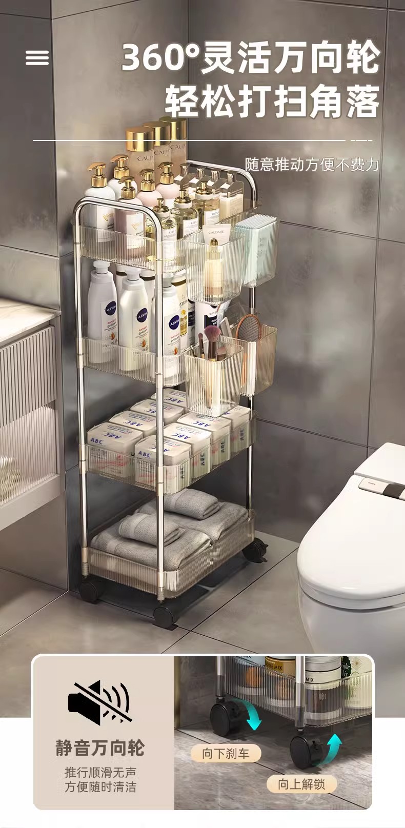 아크릴 스낵 트롤리 보관함 바닥 스탠딩 모바일 욕실 화장실 보관함 다층 화장품 캐비닛