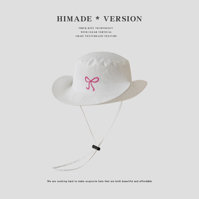 여성용 핑크 보우 속건성 어부 모자, 큰 챙, 여름 자외선 차단, 서양 카우보이 모자, 야외 등산 모자