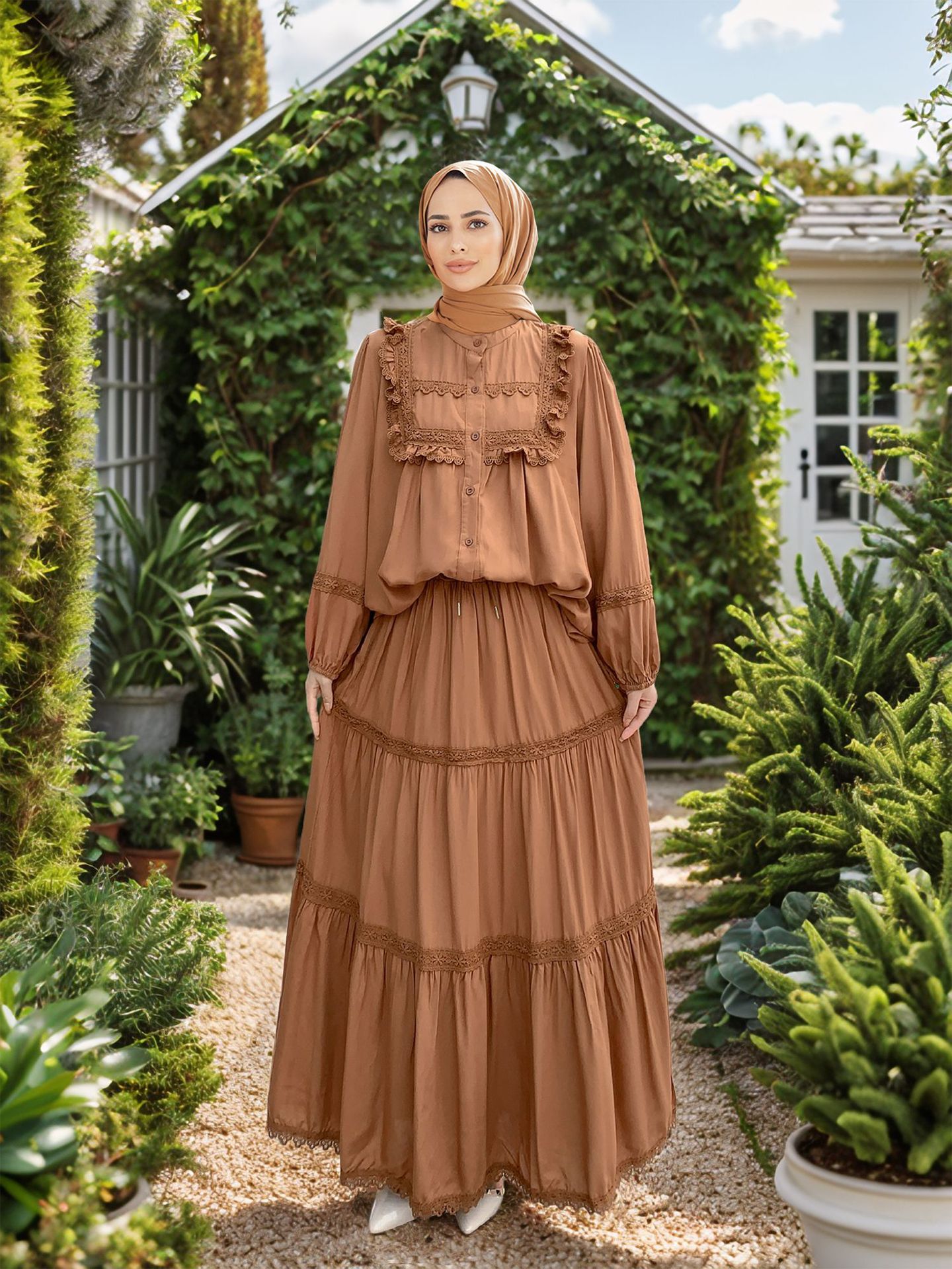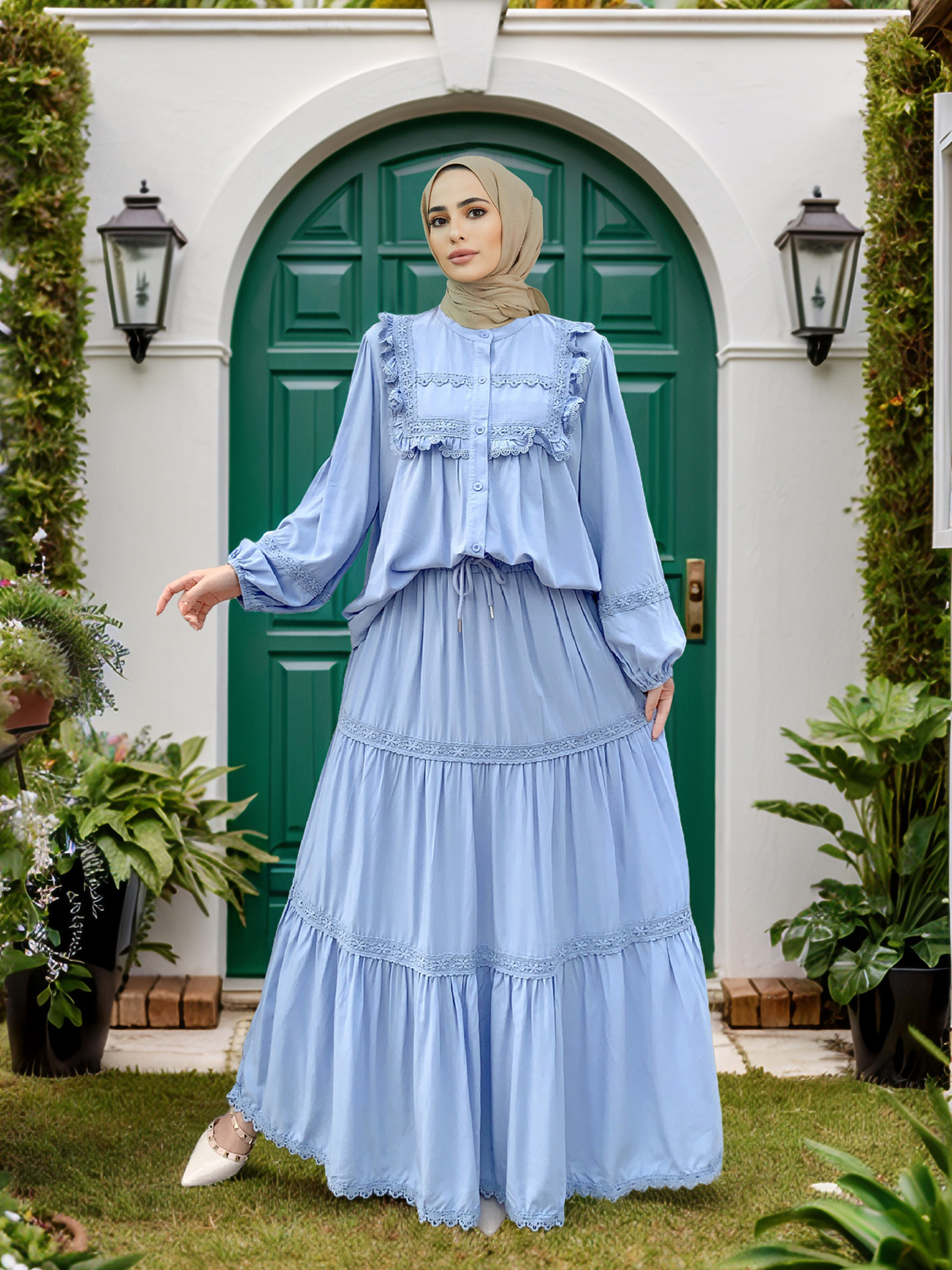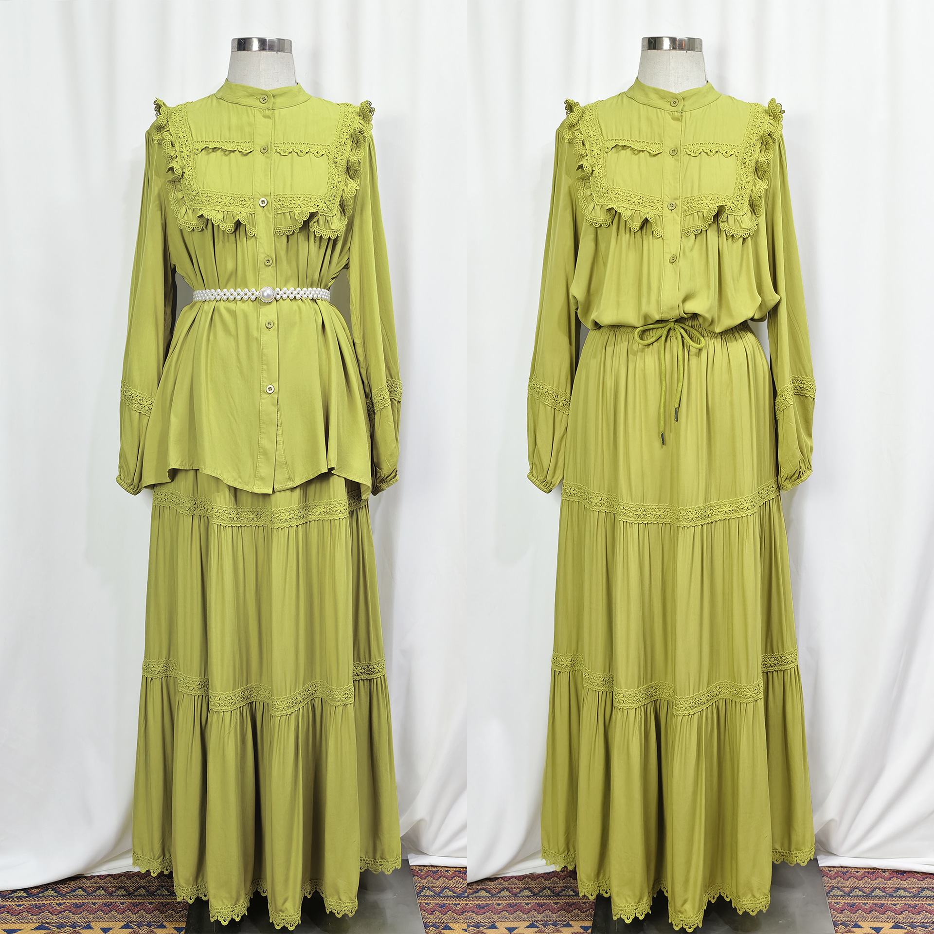 M322를 한국어로 번역하세요 # 중동 무슬림 여성 레이스 스플라이스 스탠드 칼라 탑 + 롱 스커트 스커트 슈트스토어 가기