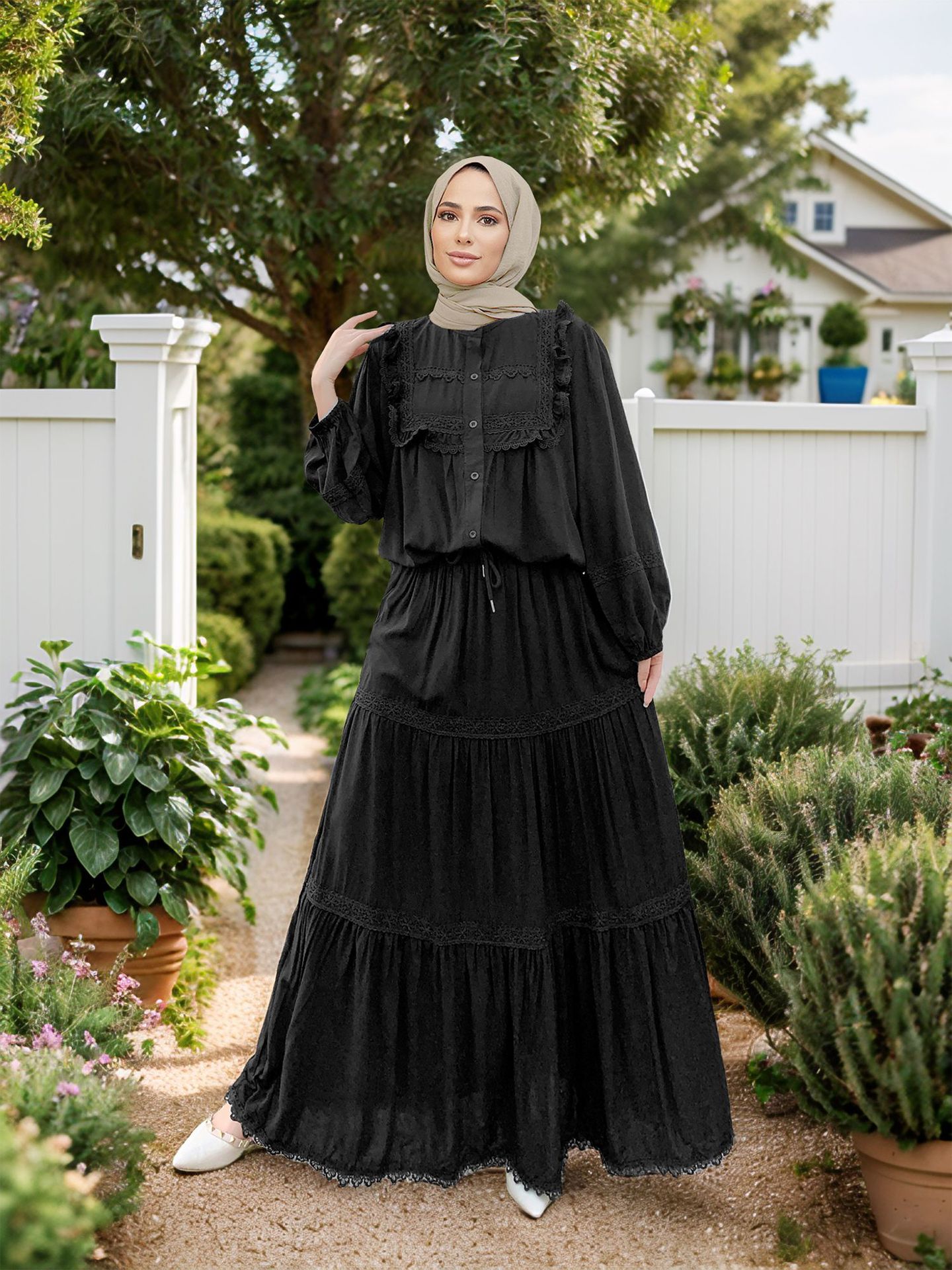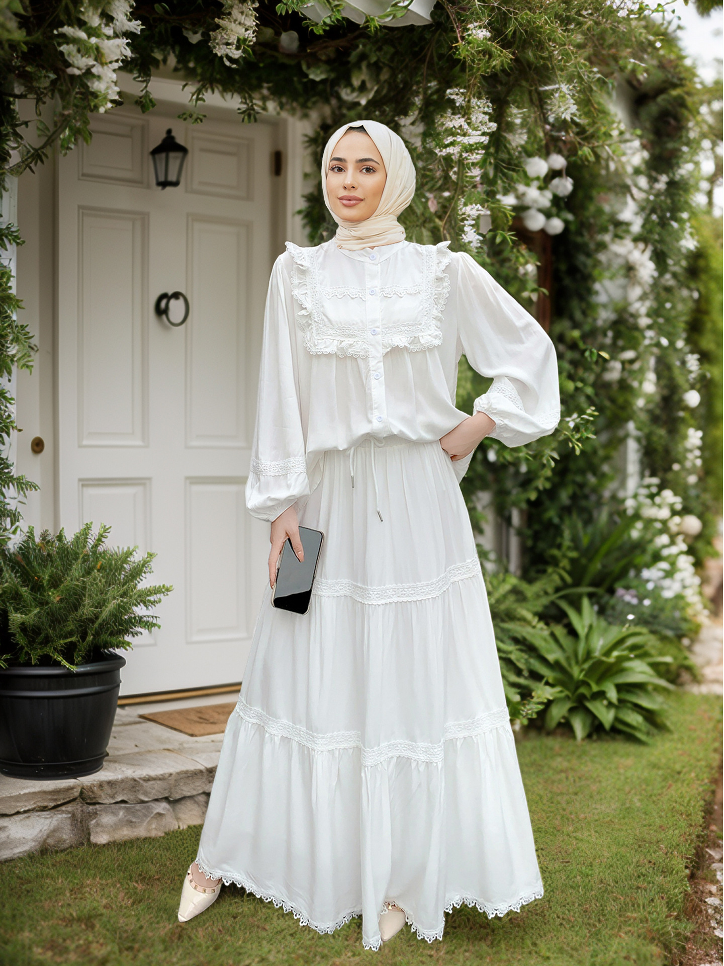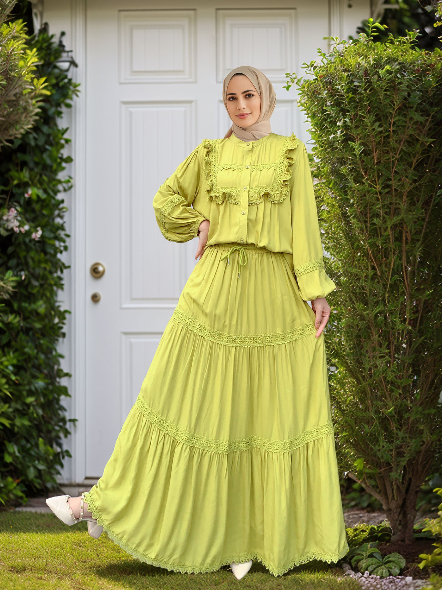 M322를 한국어로 번역하세요 # 중동 무슬림 여성 레이스 스플라이스 스탠드 칼라 탑 + 롱 스커트 스커트 슈트스토어 가기