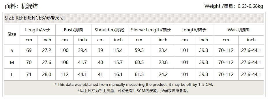半身裙为均码,腰围为松紧腰,可拉伸。