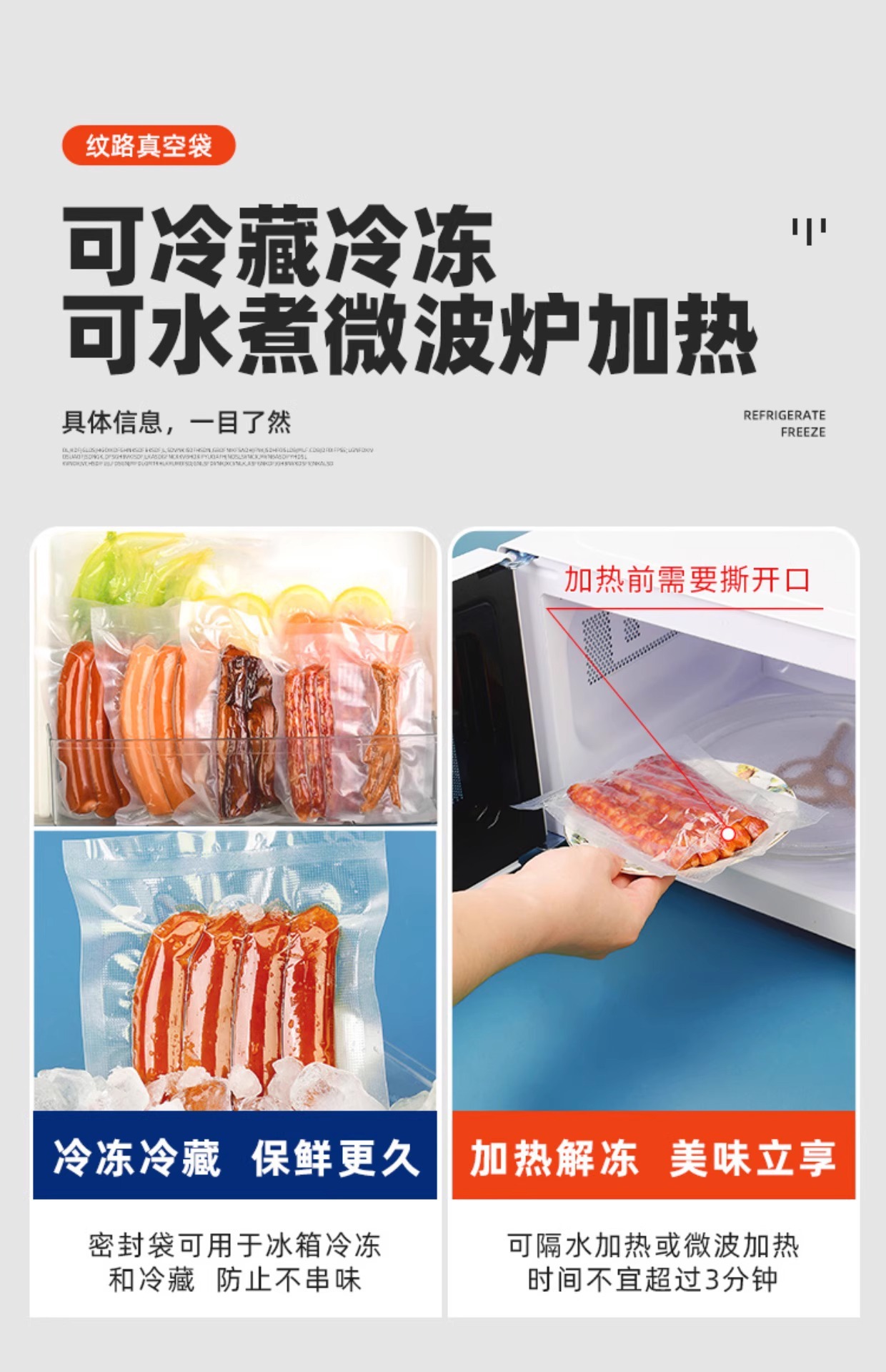 메쉬 질감 진공 가방 식품 포장 두꺼운 롤 공기 밀봉 플라스틱 밀봉 가방 신선 유지 압축 가정용 주방