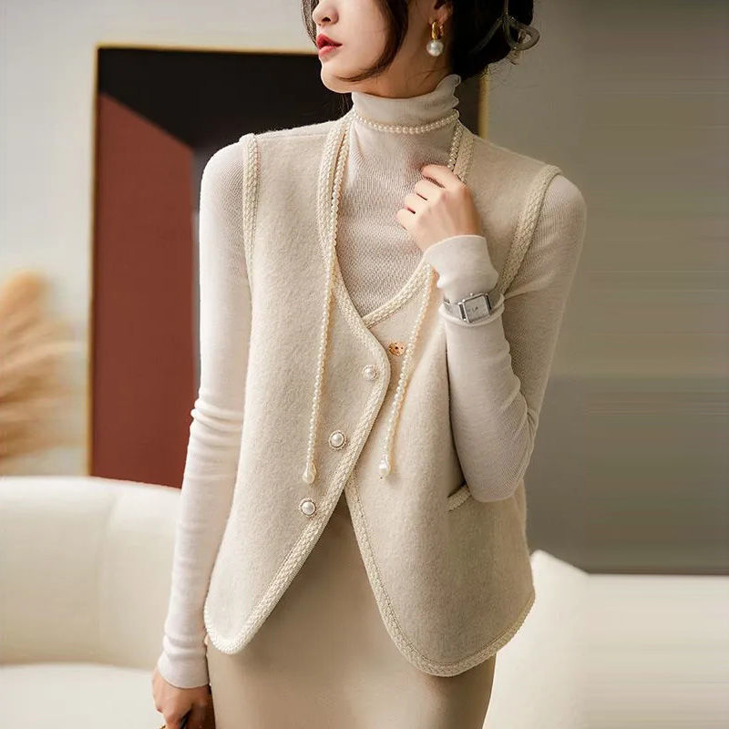 2025 가을 겨울 신상품, 우아하고 패셔너블한 샤넬 스타일 모직 조끼, 여성용 민소매 조끼, 다용도 가디건 상의