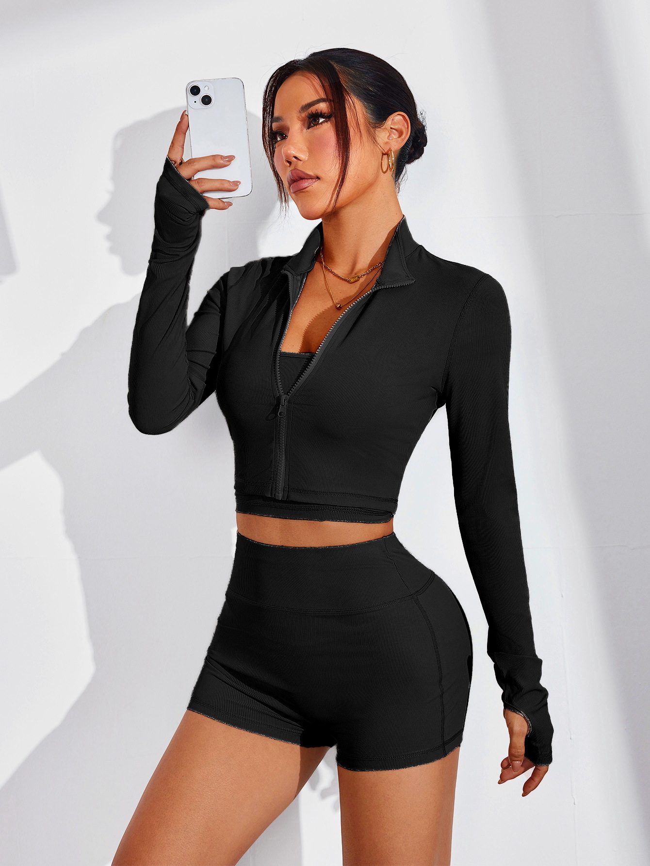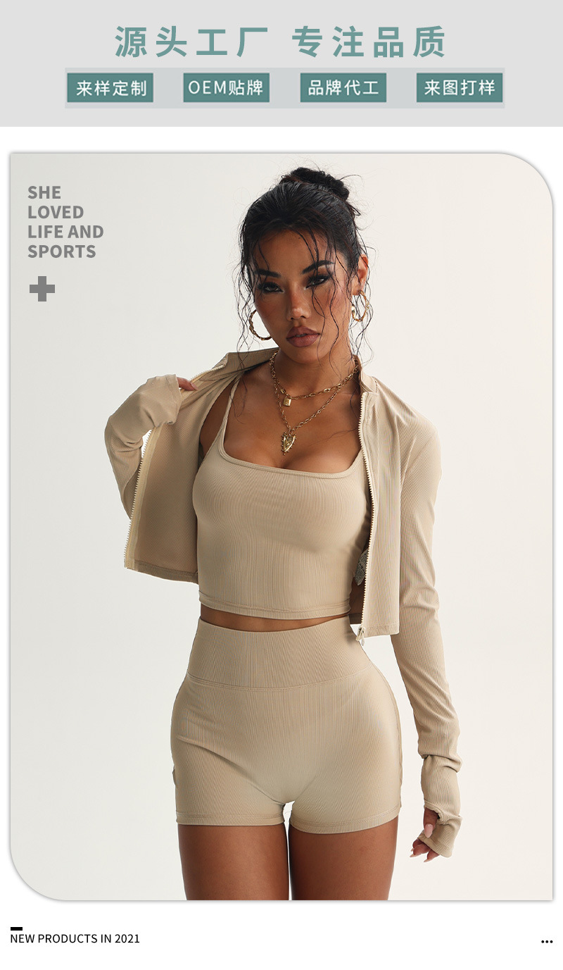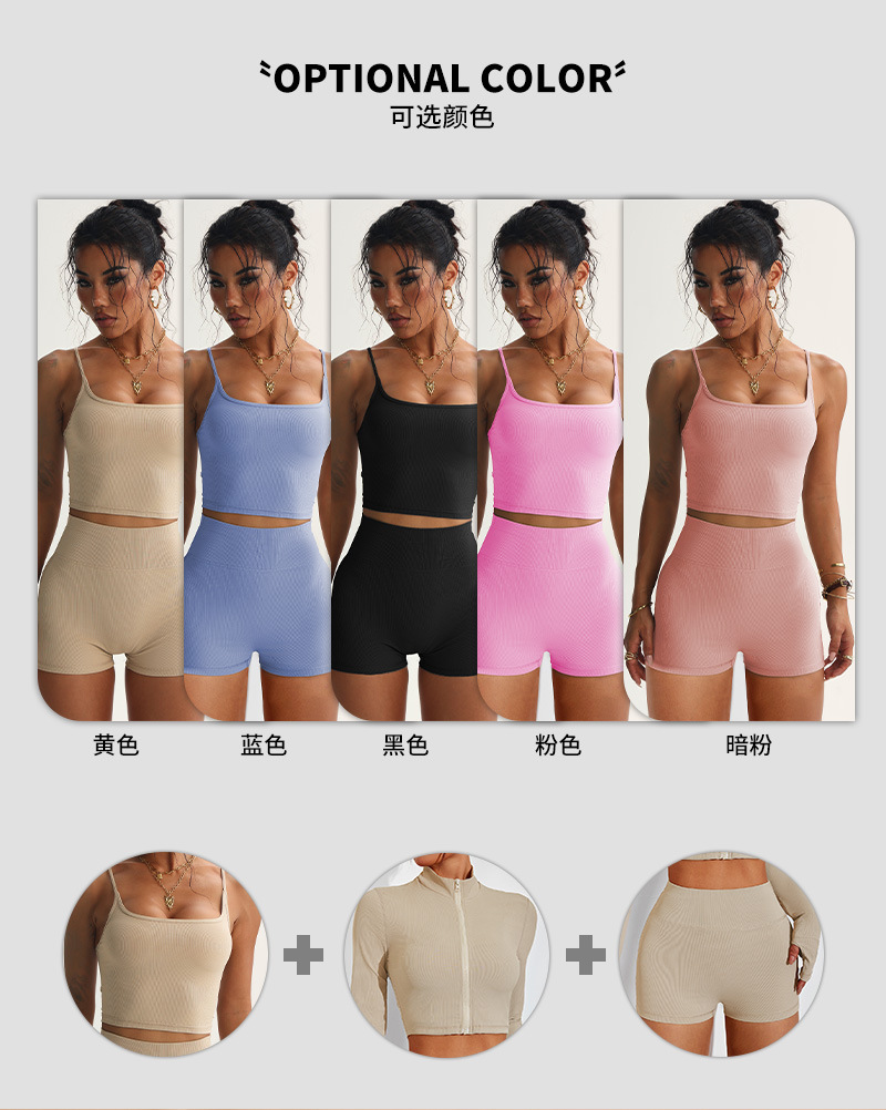 여성용 크로스보더 조끼 반바지 세트, 하이웨이스트 스포츠 요가 피트니스 속건 통기성 요가복 3종 세트 제조업체스토어 가기