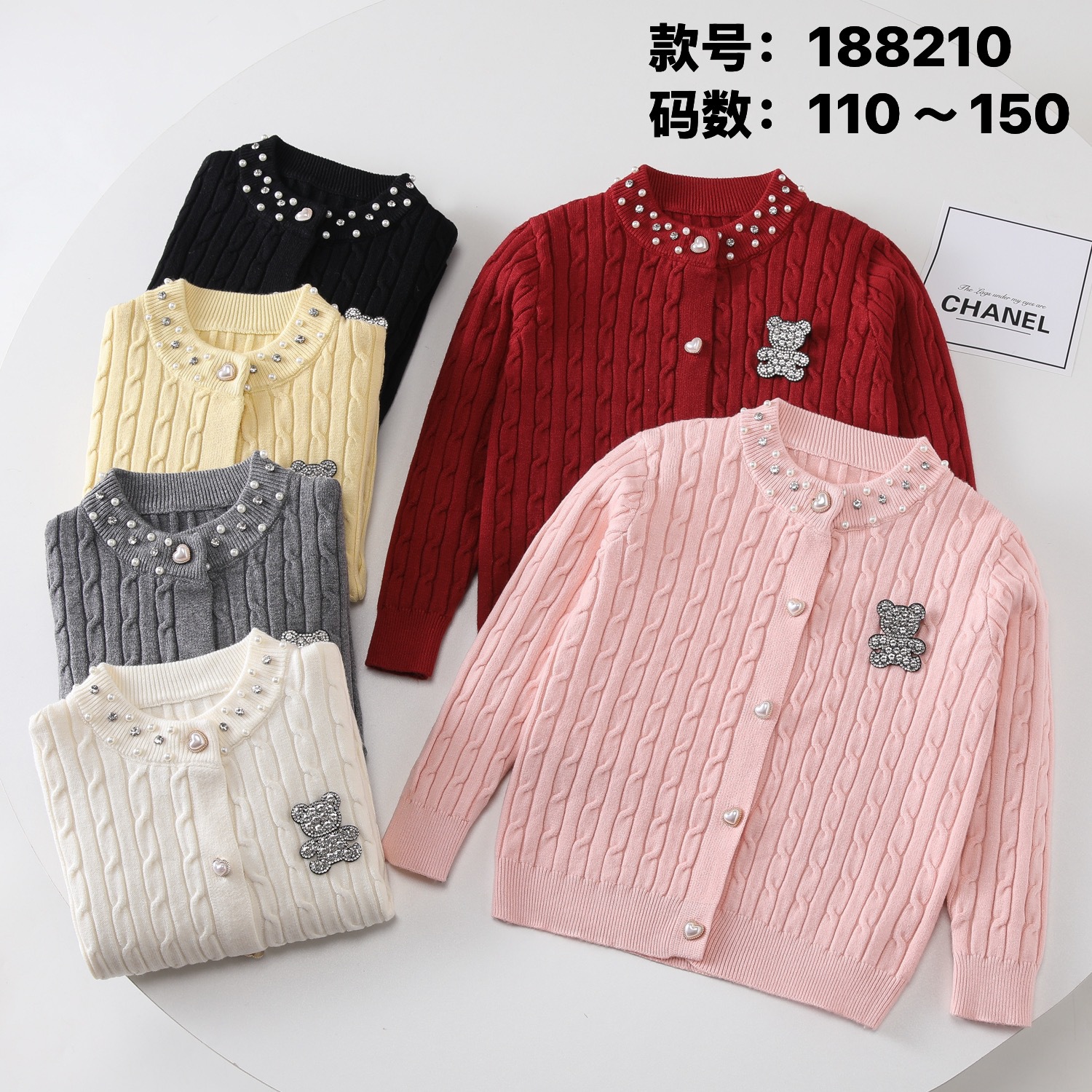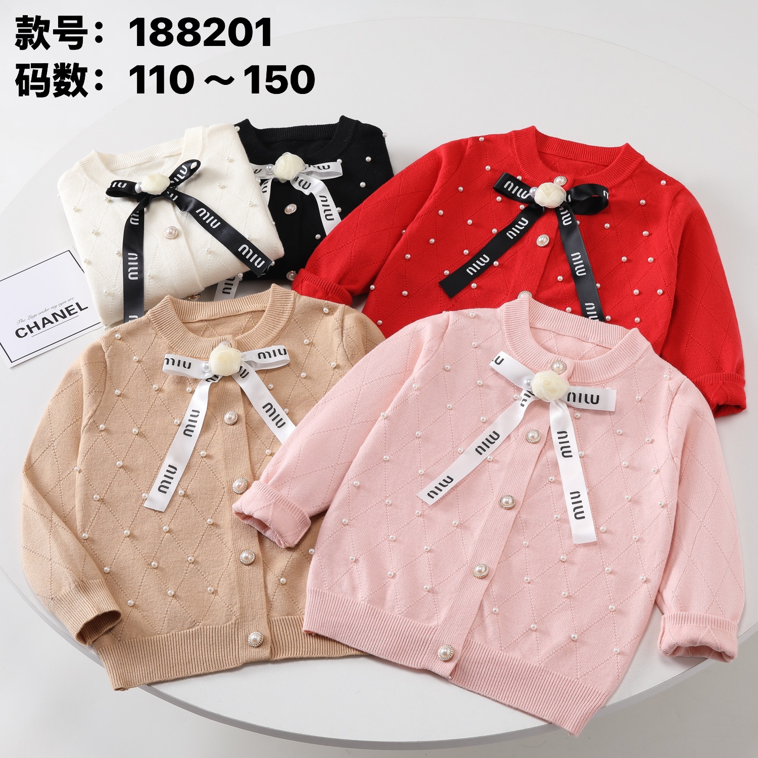 여아 니트 가디건, 패셔너블한 2025 가을 신상 코어 스펀 원사 라운드 넥 비즈 보우 베이비 니트 탑스토어 가기