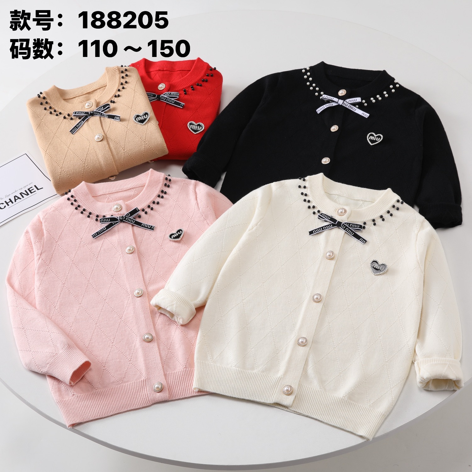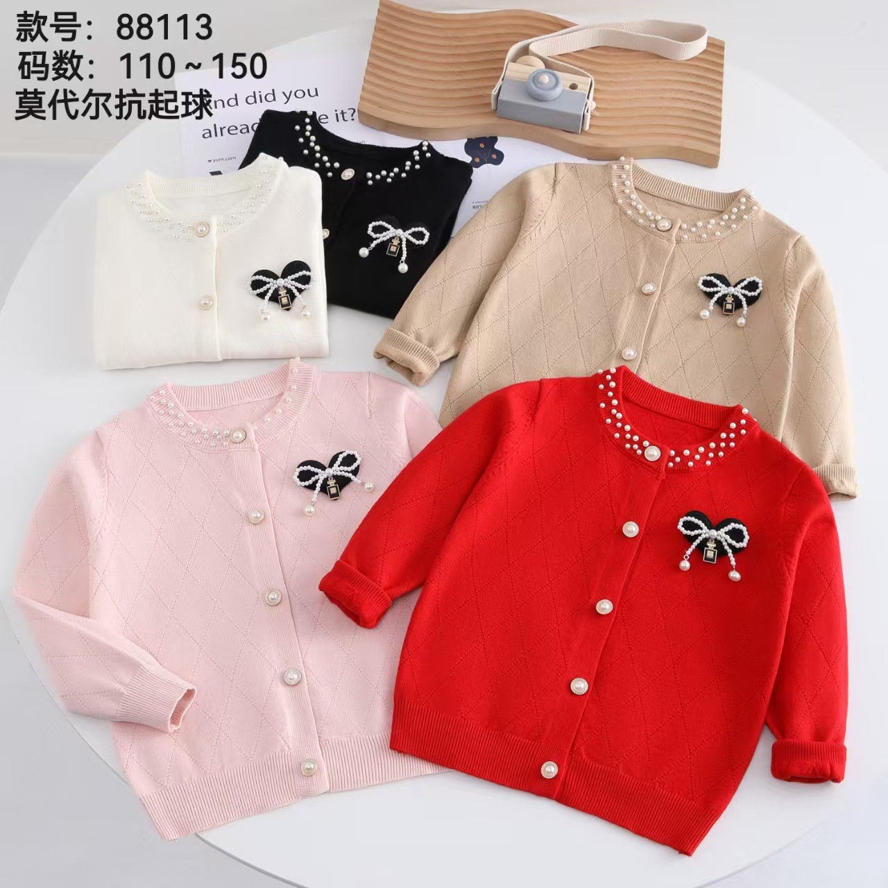 여아 니트 가디건, 패셔너블한 2025 가을 신상 코어 스펀 원사 라운드 넥 비즈 보우 베이비 니트 탑