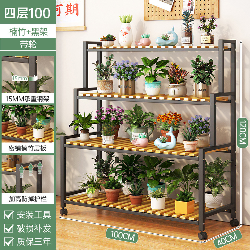 • [철제 프레임 대나무 4겹] 검정색 폭 100CM(범용 바퀴 4개 포함)