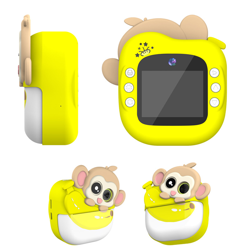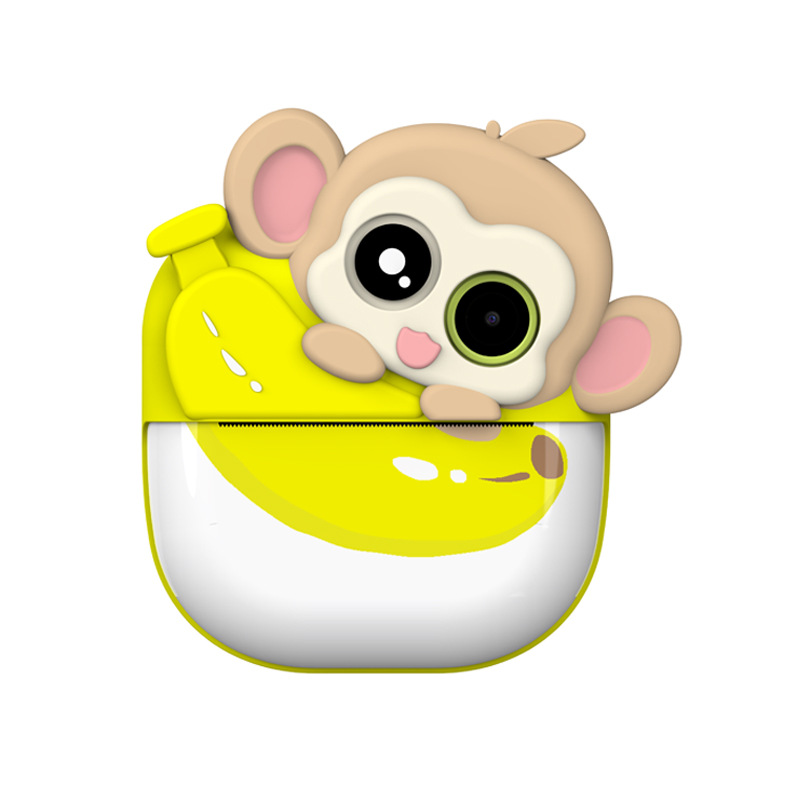 Tiktok 인기 어린이 카메라 폴라로이드 바나나 원숭이 폴라로이드 만화 귀여운 열 카메라 잉크 없음