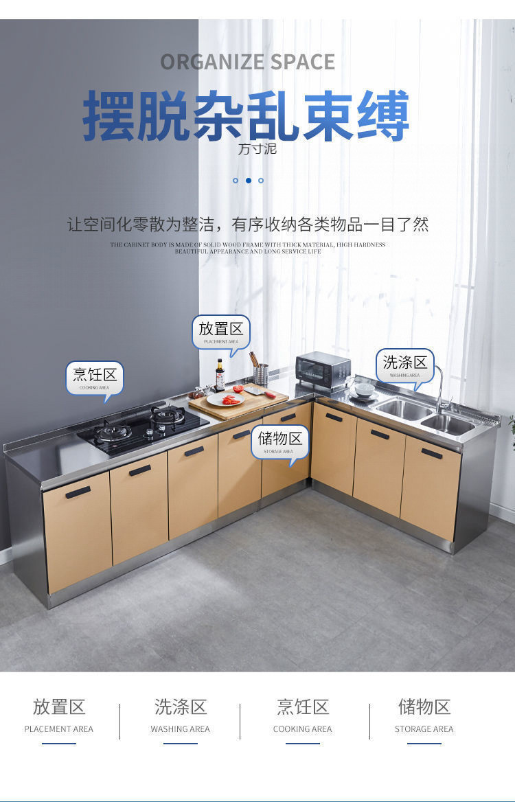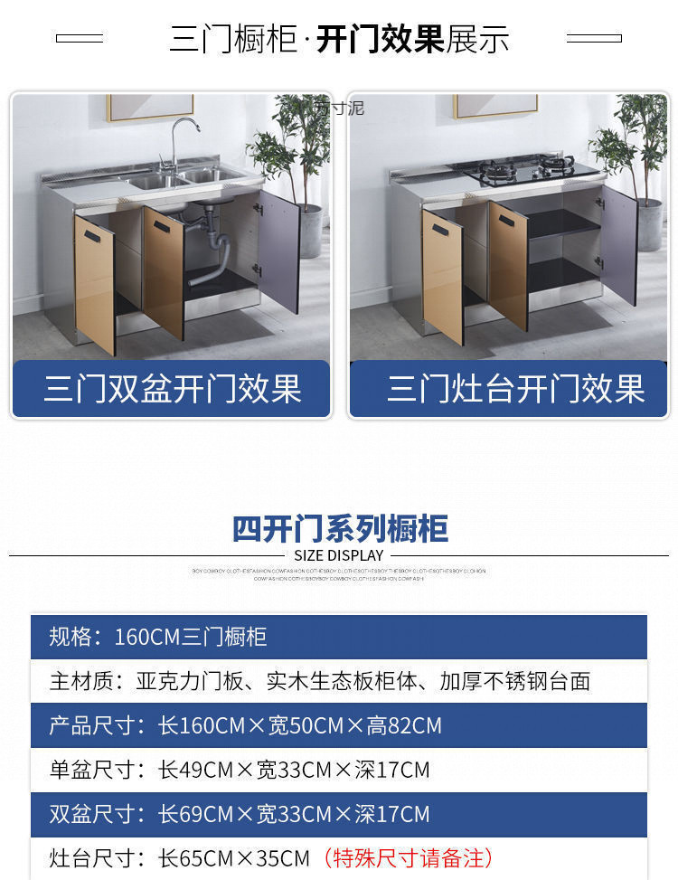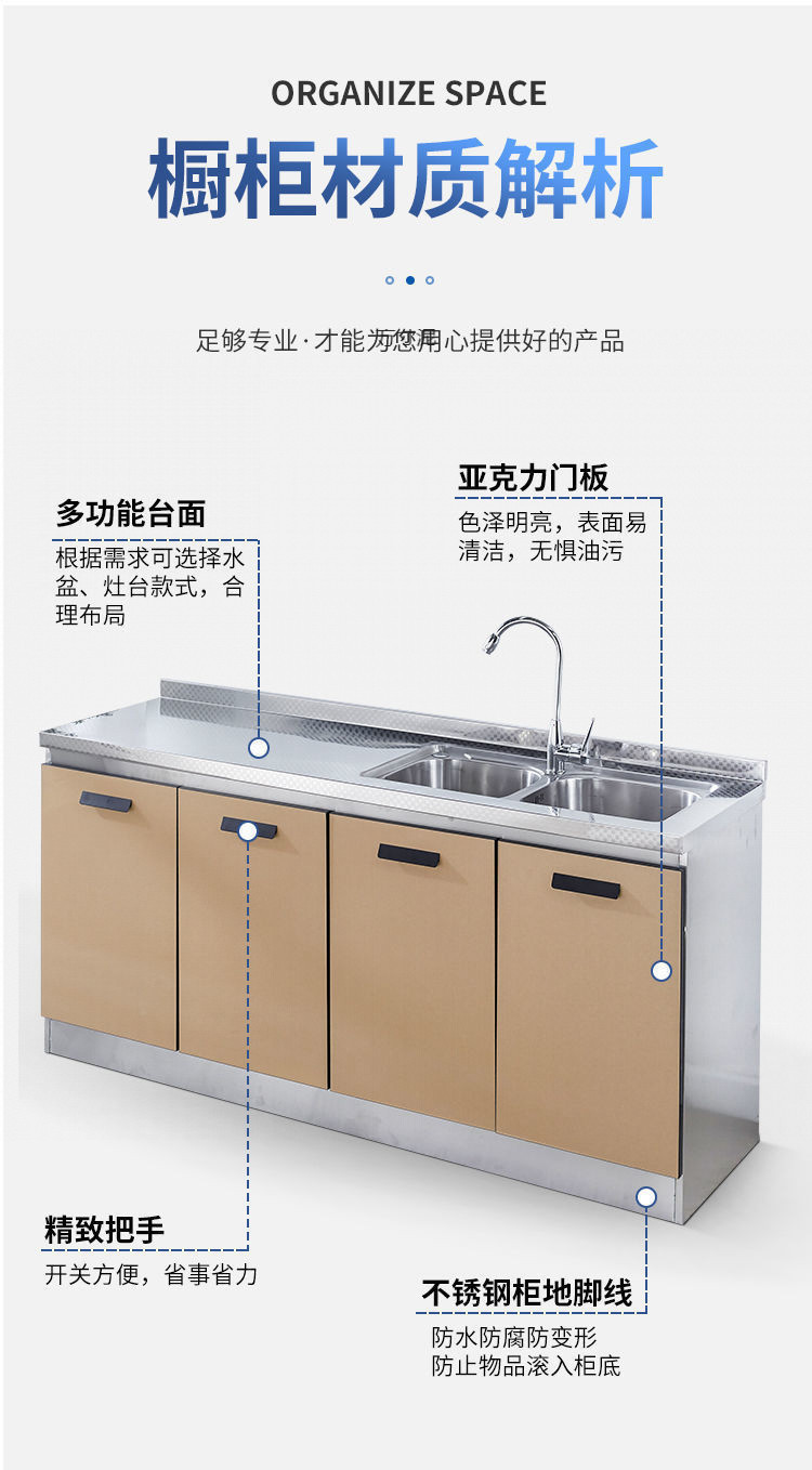 스테인레스 스틸 캐비닛 주방 캐비닛 간단한 조립 경제적 인 임대 통합 캐비닛 보관 캐비닛 찬장 스토브 캐비닛스토어 가기